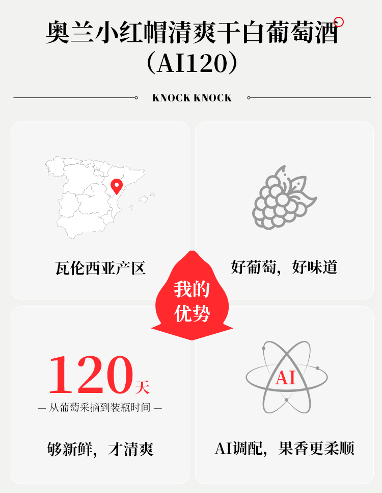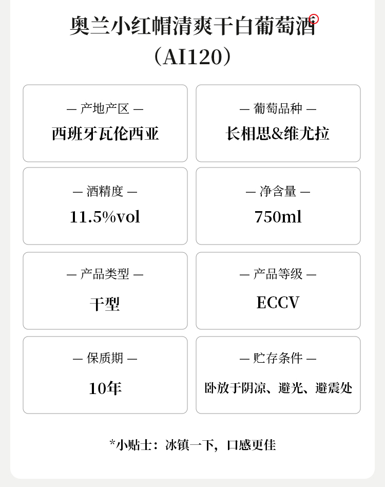 【新品】西班牙进口 奥兰小红帽清爽干白葡萄酒(AI120)11.5度750ml 白桃果香