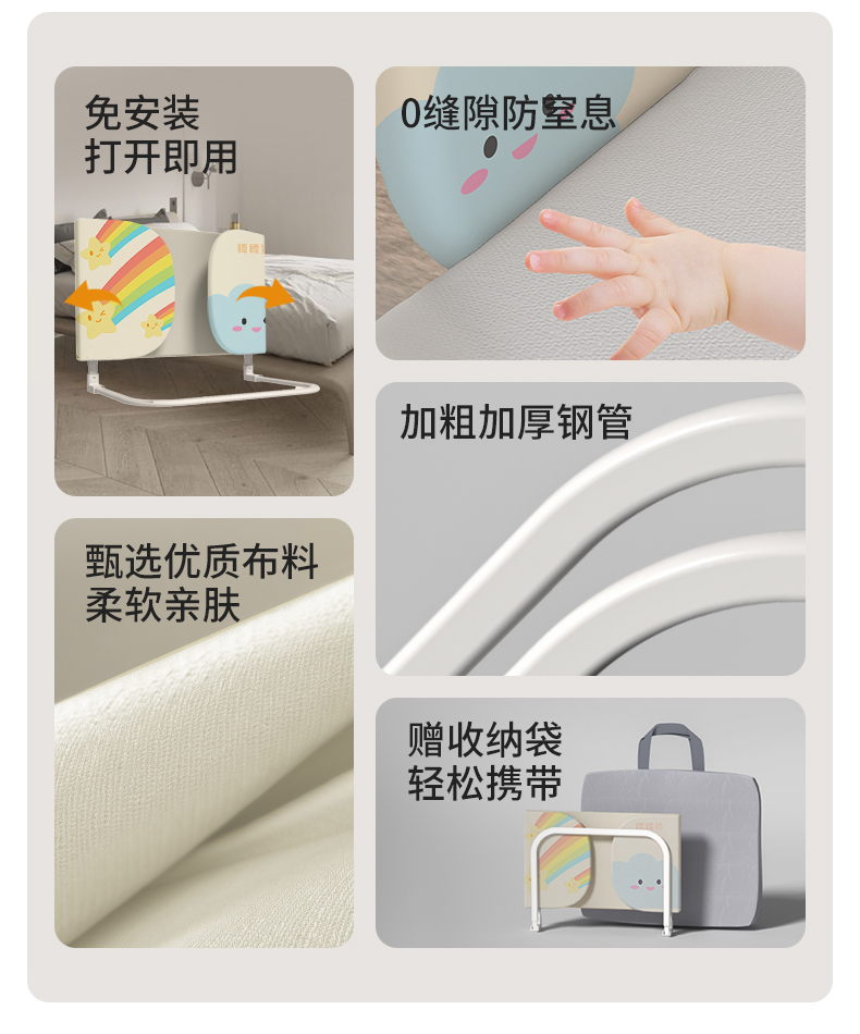棒棒猪便携旅游床围栏宝宝婴儿防摔防护栏床边