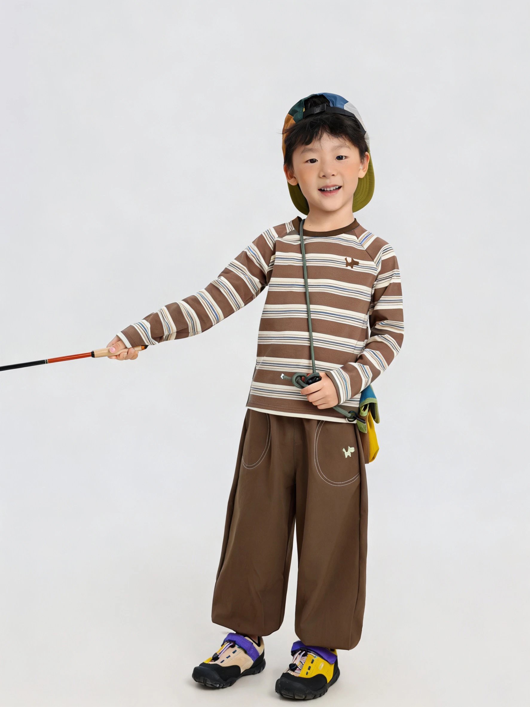 【儿童净版T恤+儿童条纹T恤 +儿童0压重长裤 】