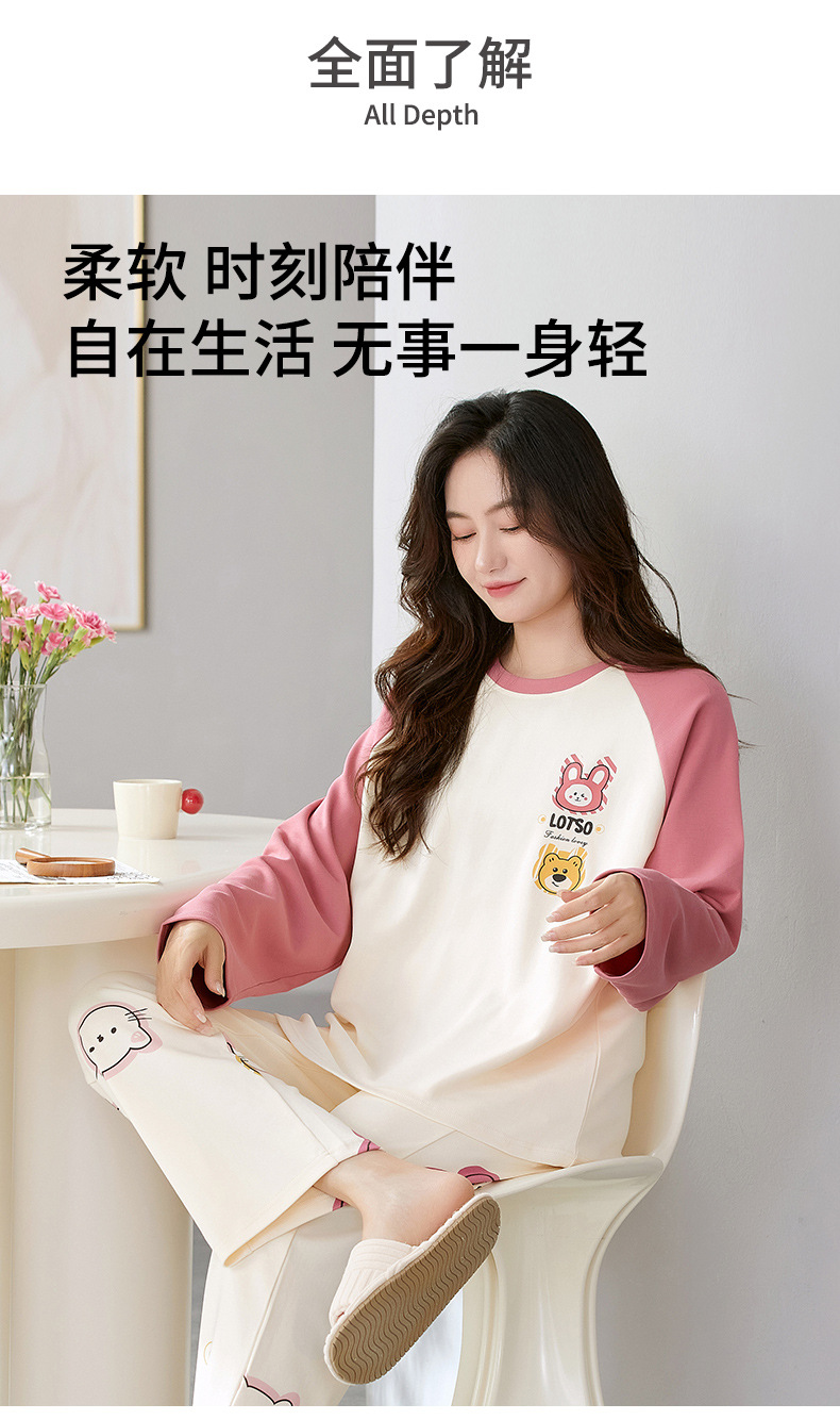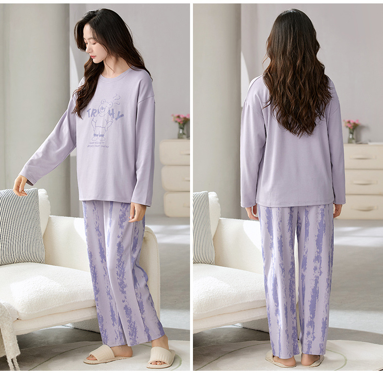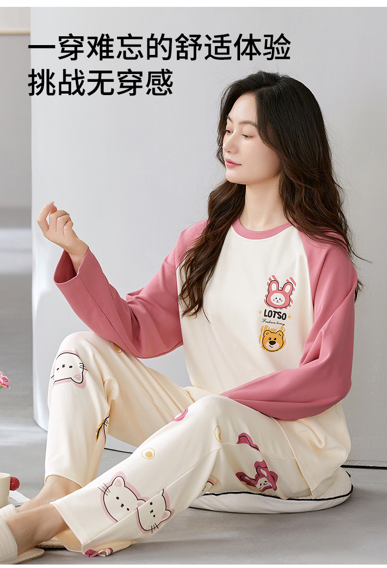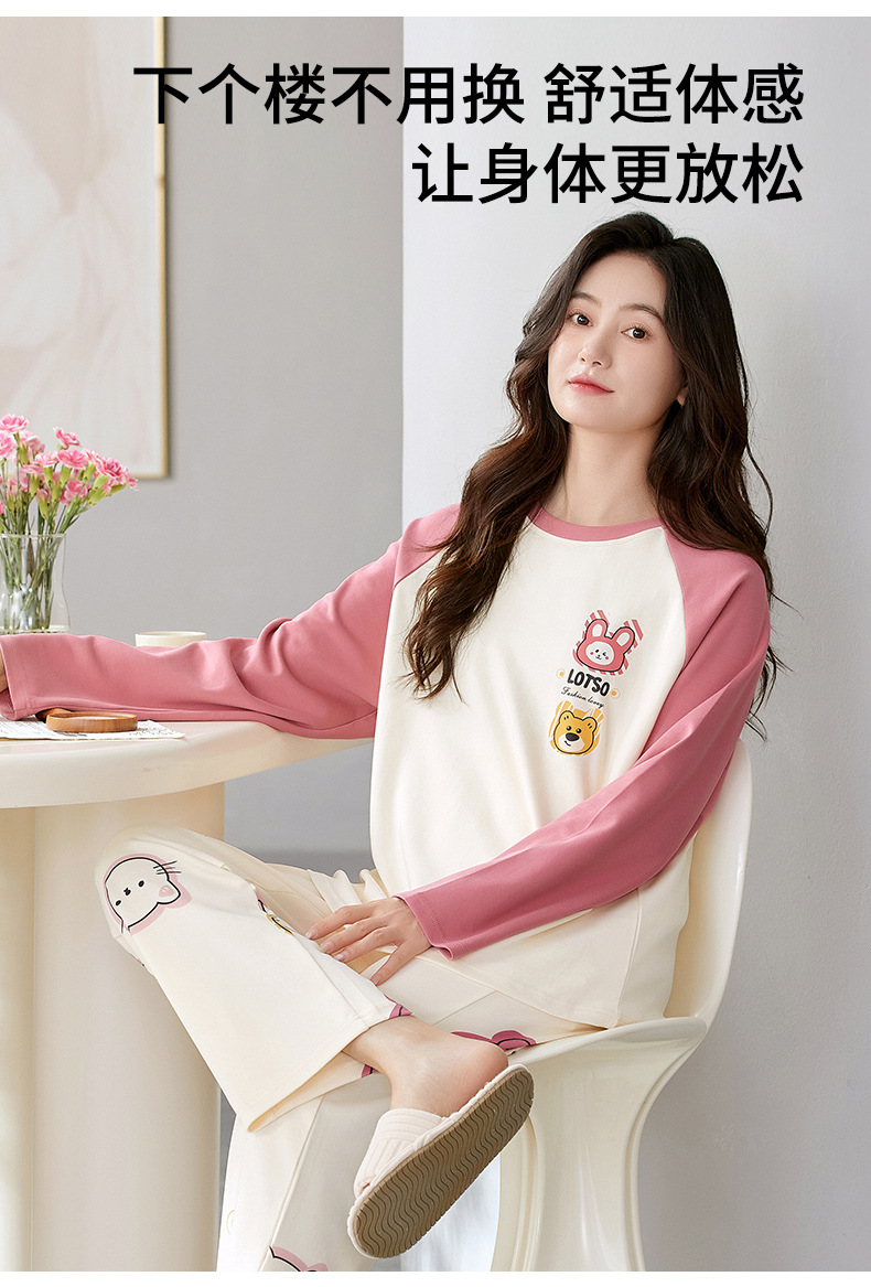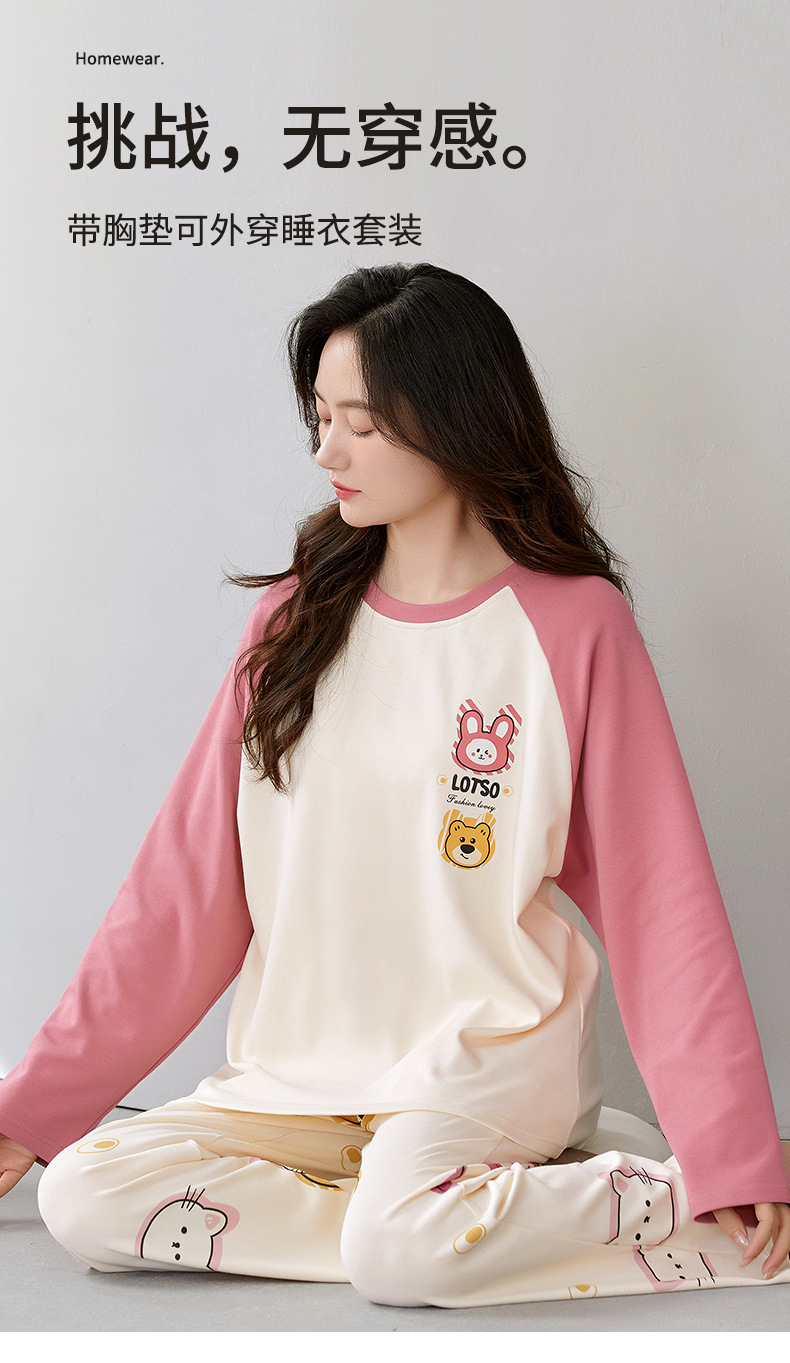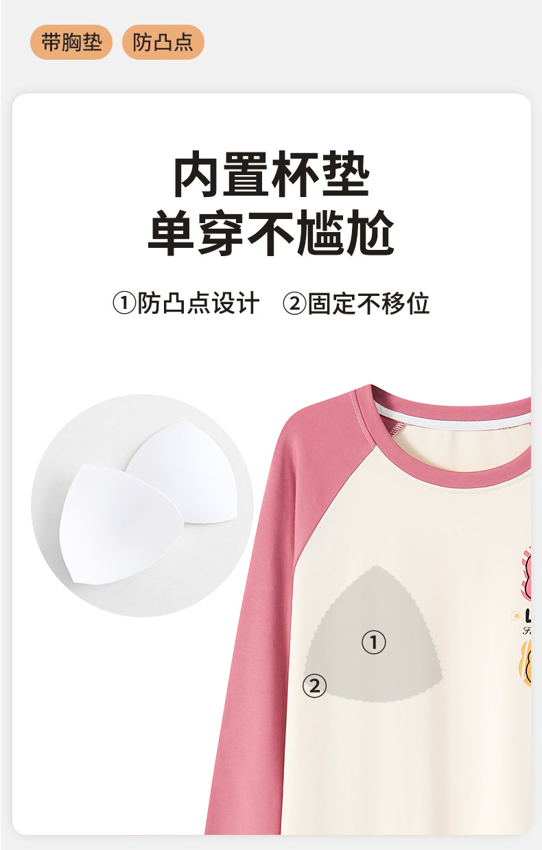 舒适无感家居服新款新品爆款长袖睡衣女秋季带胸垫薄款少女简约休闲冬天可外穿家居服
