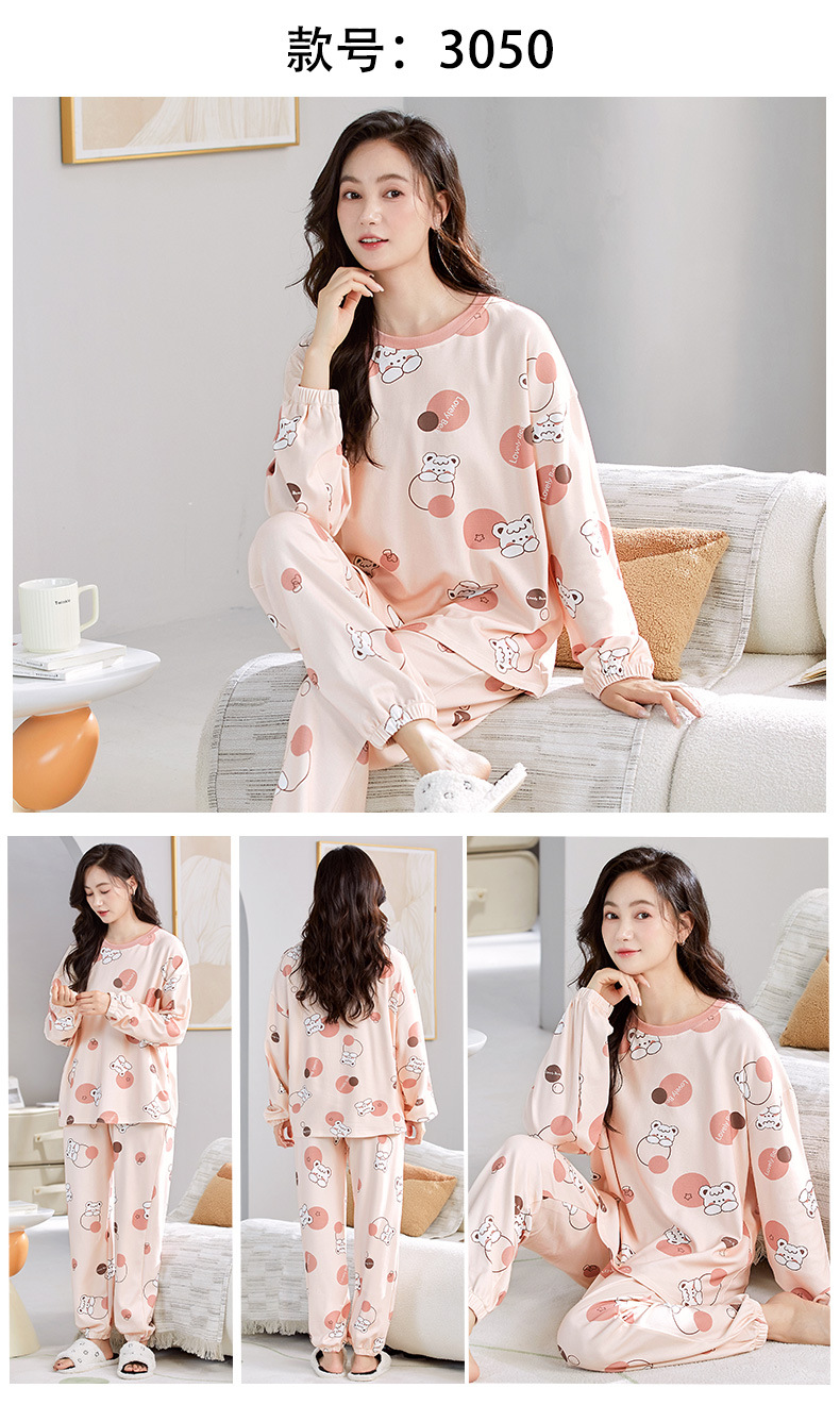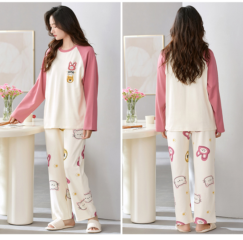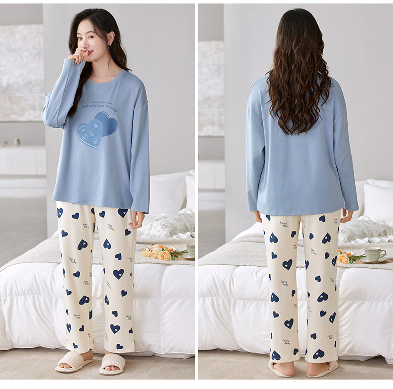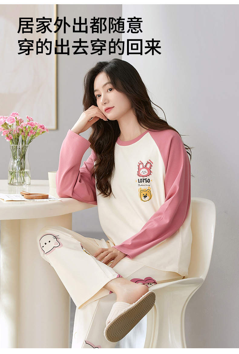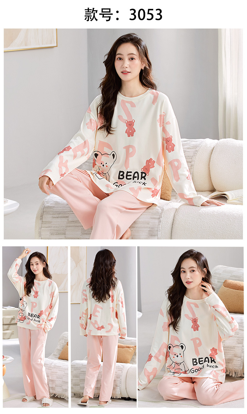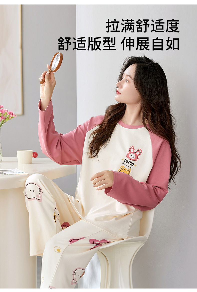 舒适无感家居服新款新品爆款长袖睡衣女秋季带胸垫薄款少女简约休闲冬天可外穿家居服