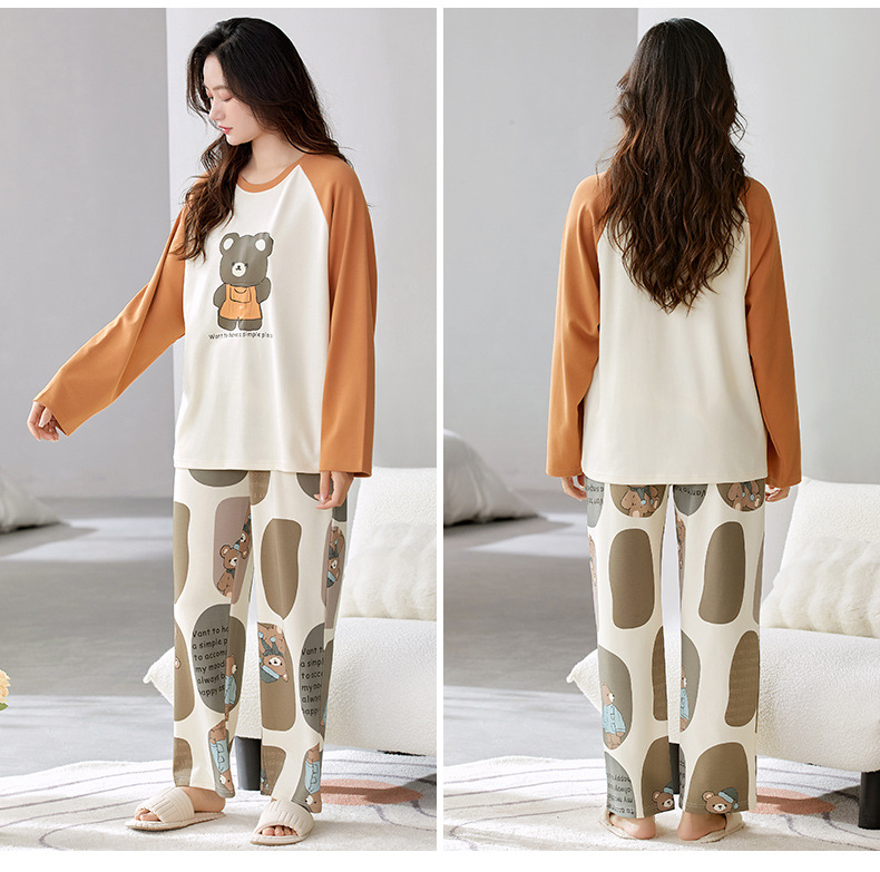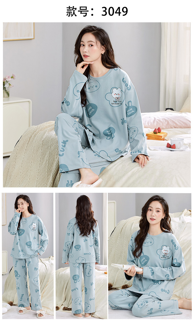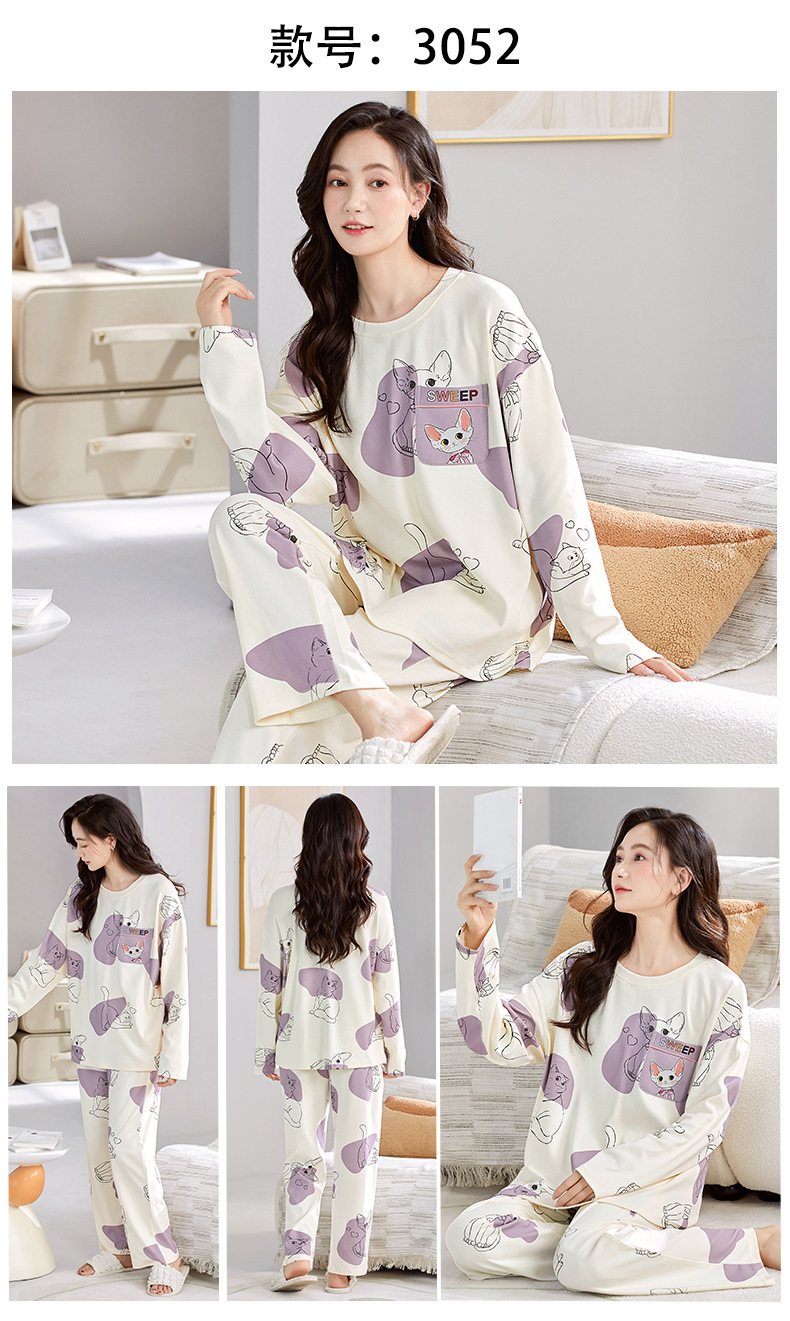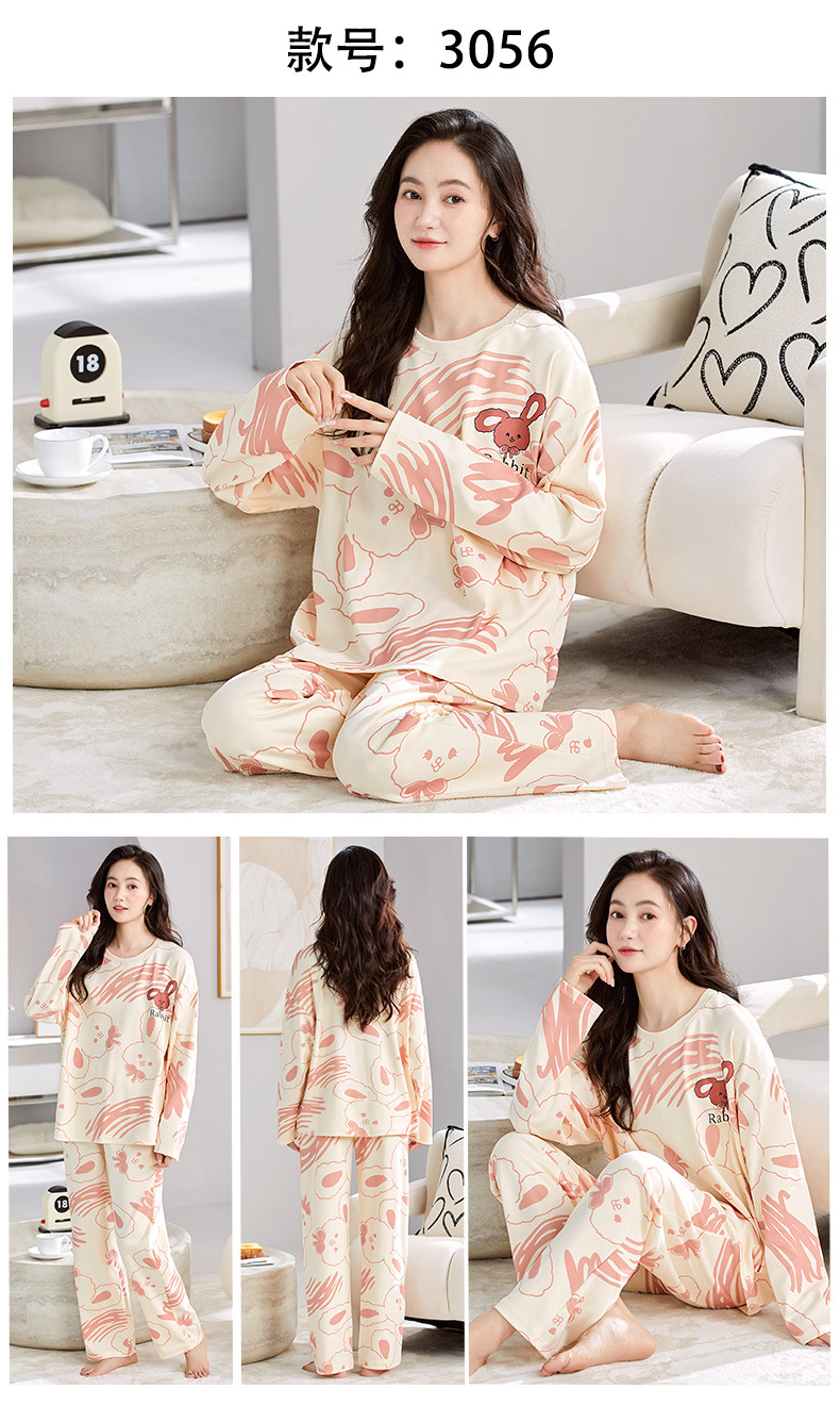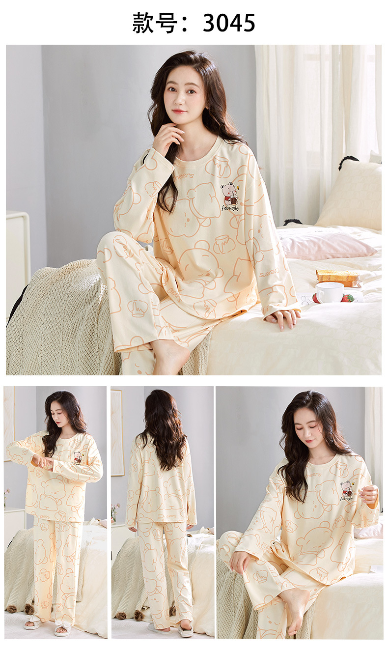 舒适无感家居服新款新品爆款长袖睡衣女秋季带胸垫薄款少女简约休闲冬天可外穿家居服