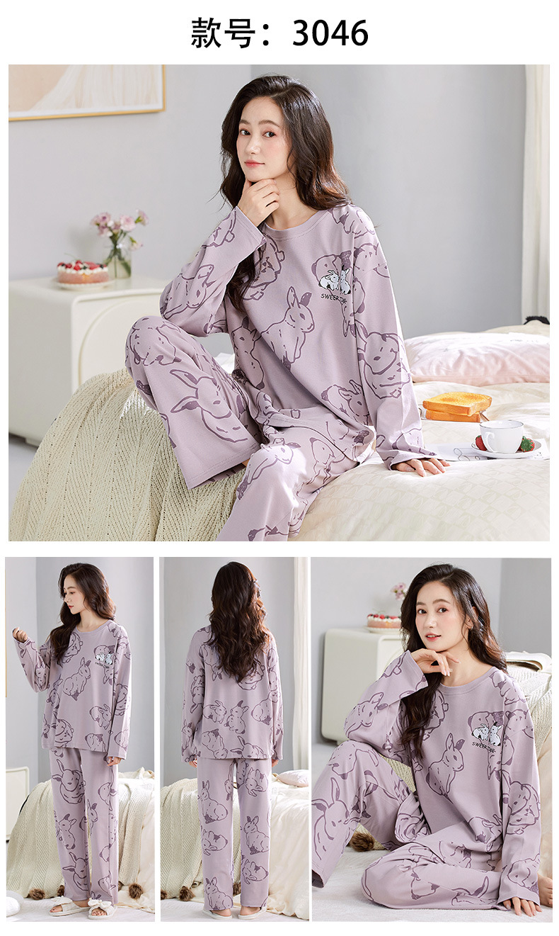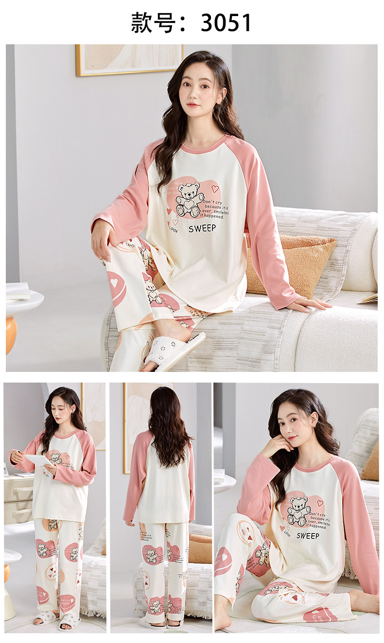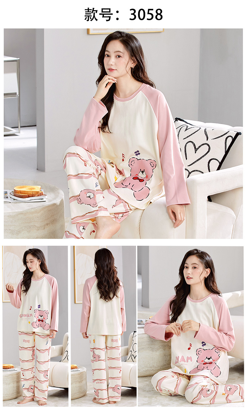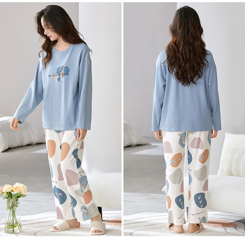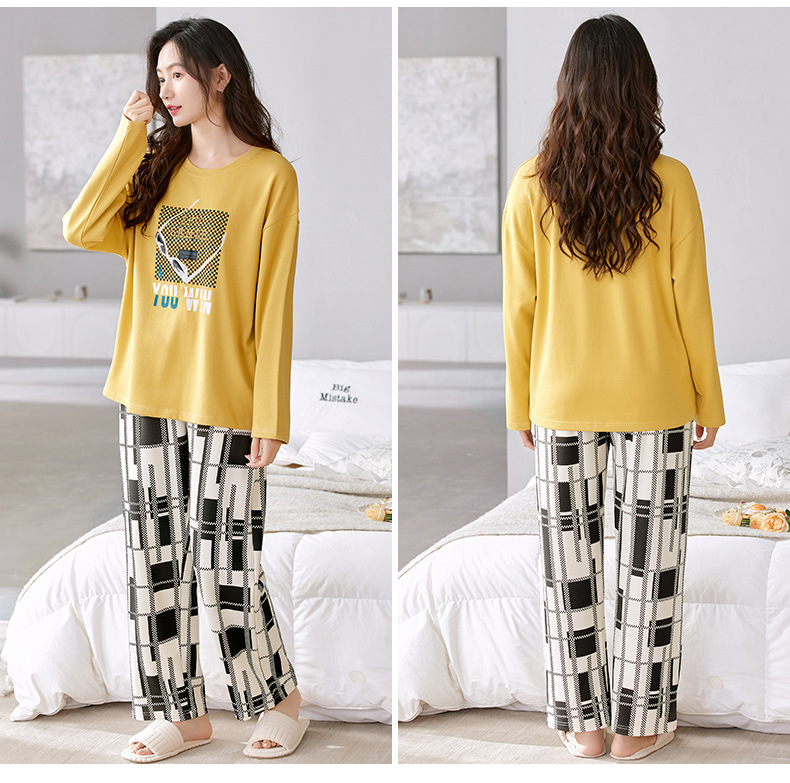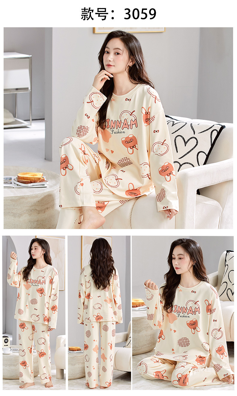 舒适无感家居服新款新品爆款长袖睡衣女秋季带胸垫薄款少女简约休闲冬天可外穿家居服