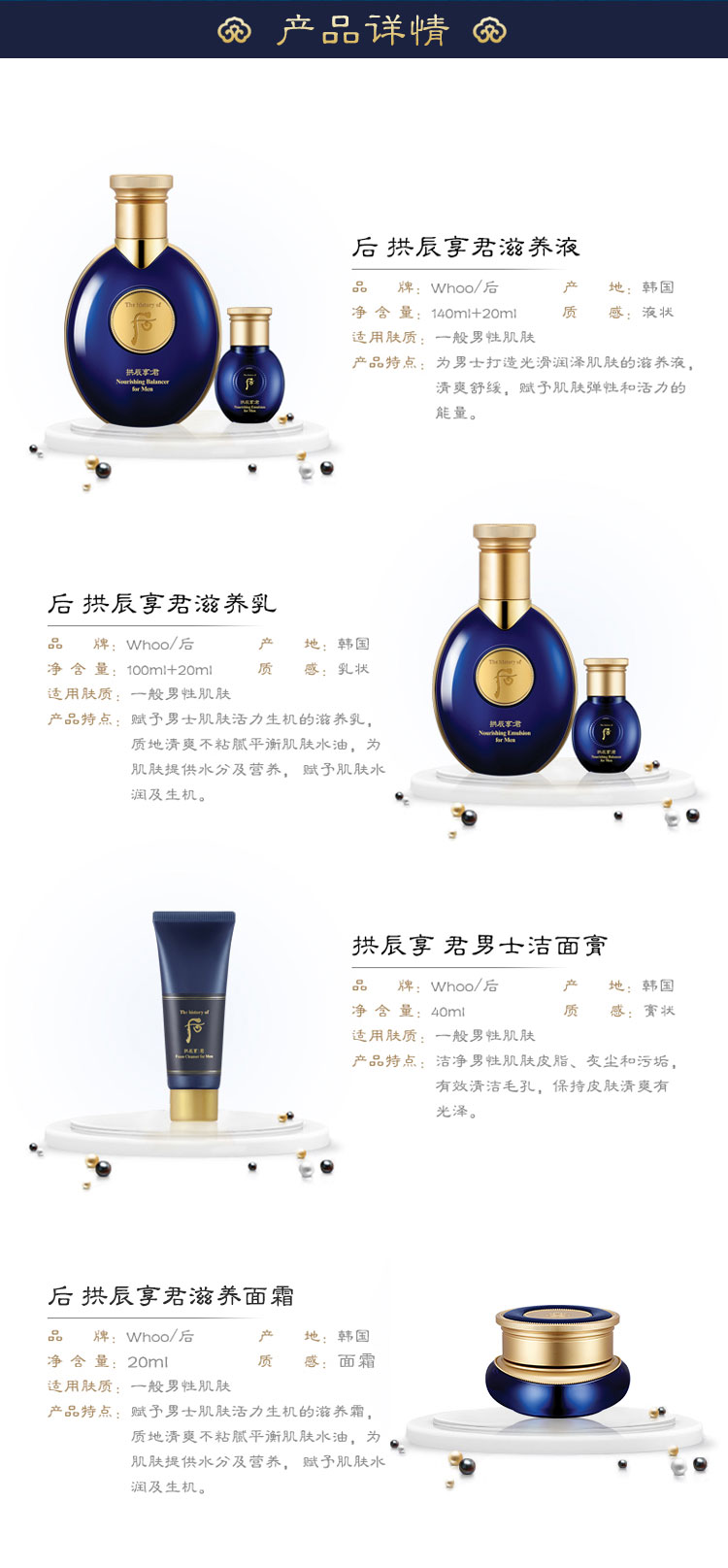 【韩国男士套盒】Whoo后 君男士修护水乳套盒 滋养液140ml 滋养乳100ml 送滋养液20ml 滋养乳20ml 洗面奶40ml
