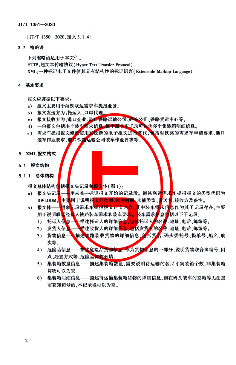| 海铁联运 需求车提报报文(JT/T 1351—2020) | ||