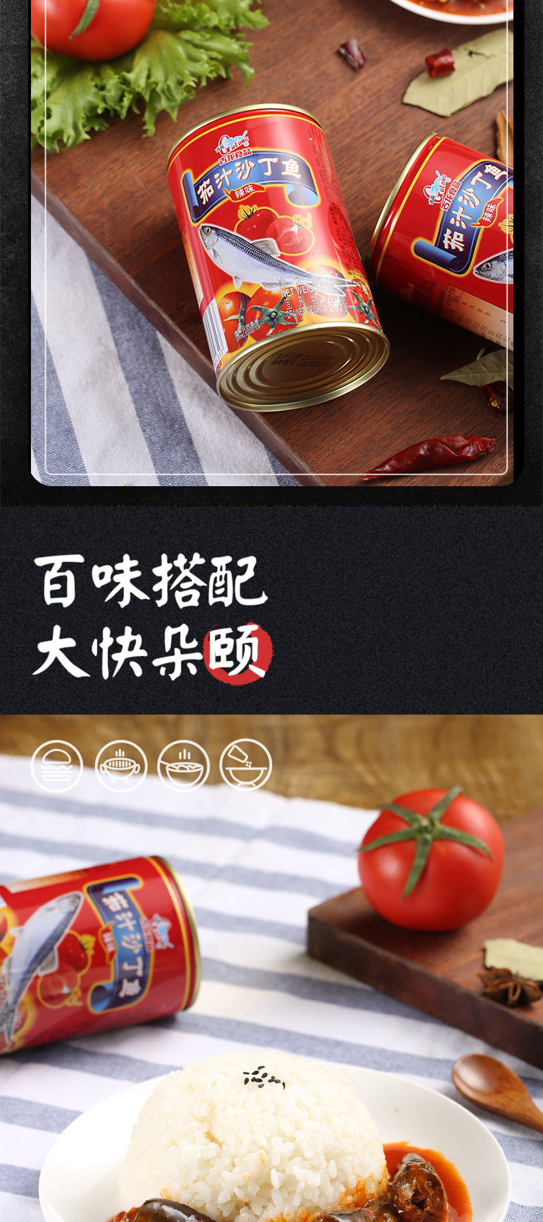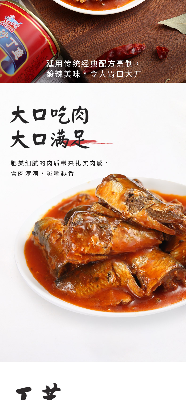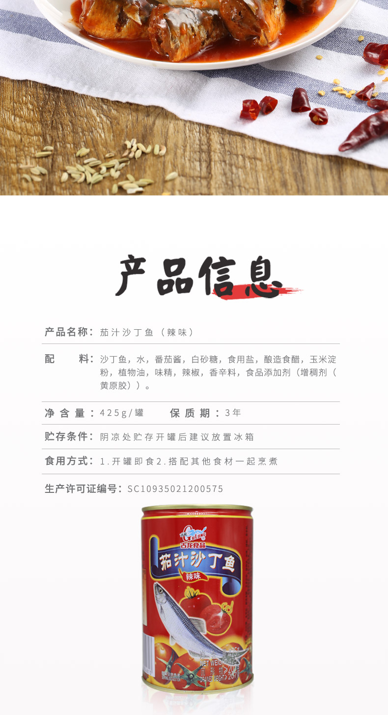 古龙食品茄汁沙丁鱼罐头特产小吃海鲜酸甜辣下饭酱海味即食425g*3
