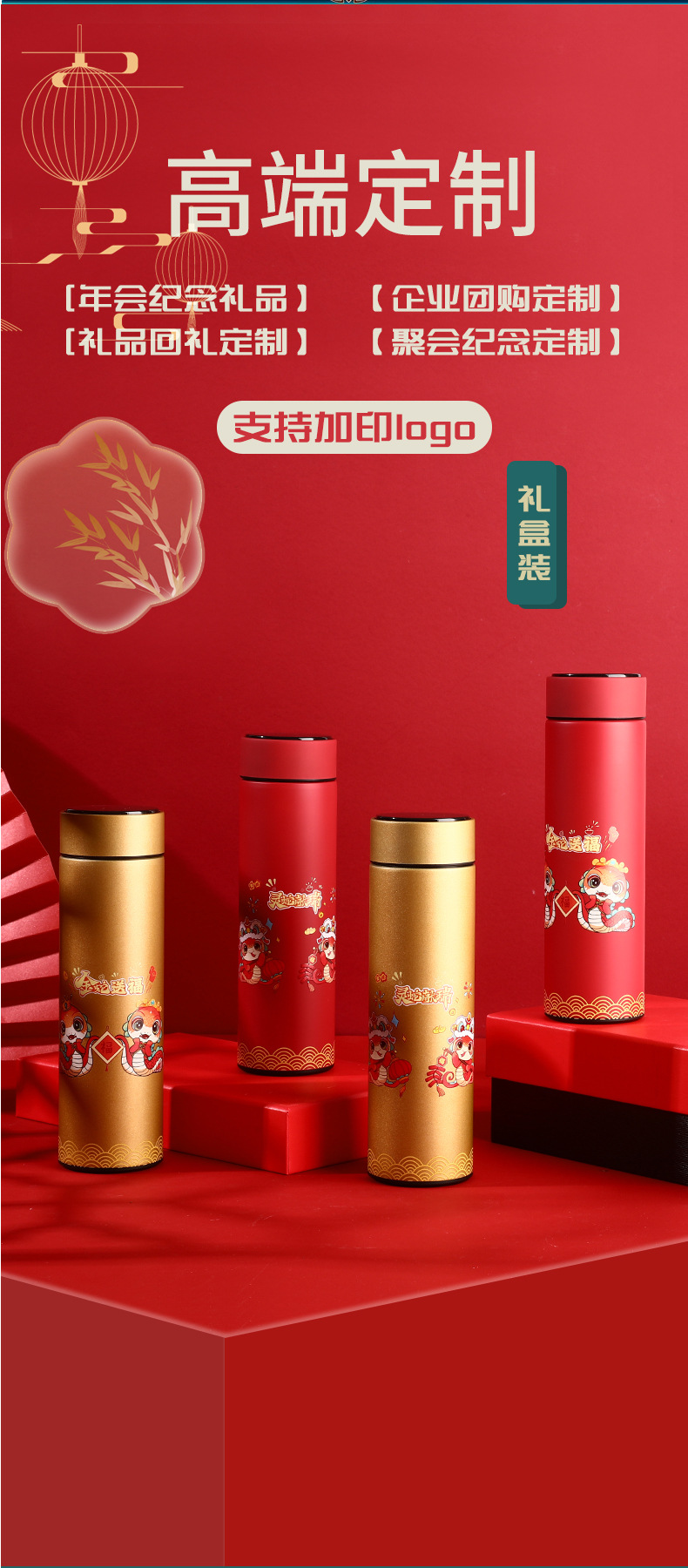 2025蛇年中国风国潮不锈钢保温杯 水杯新年节日活动礼品杯 公司礼品礼盒