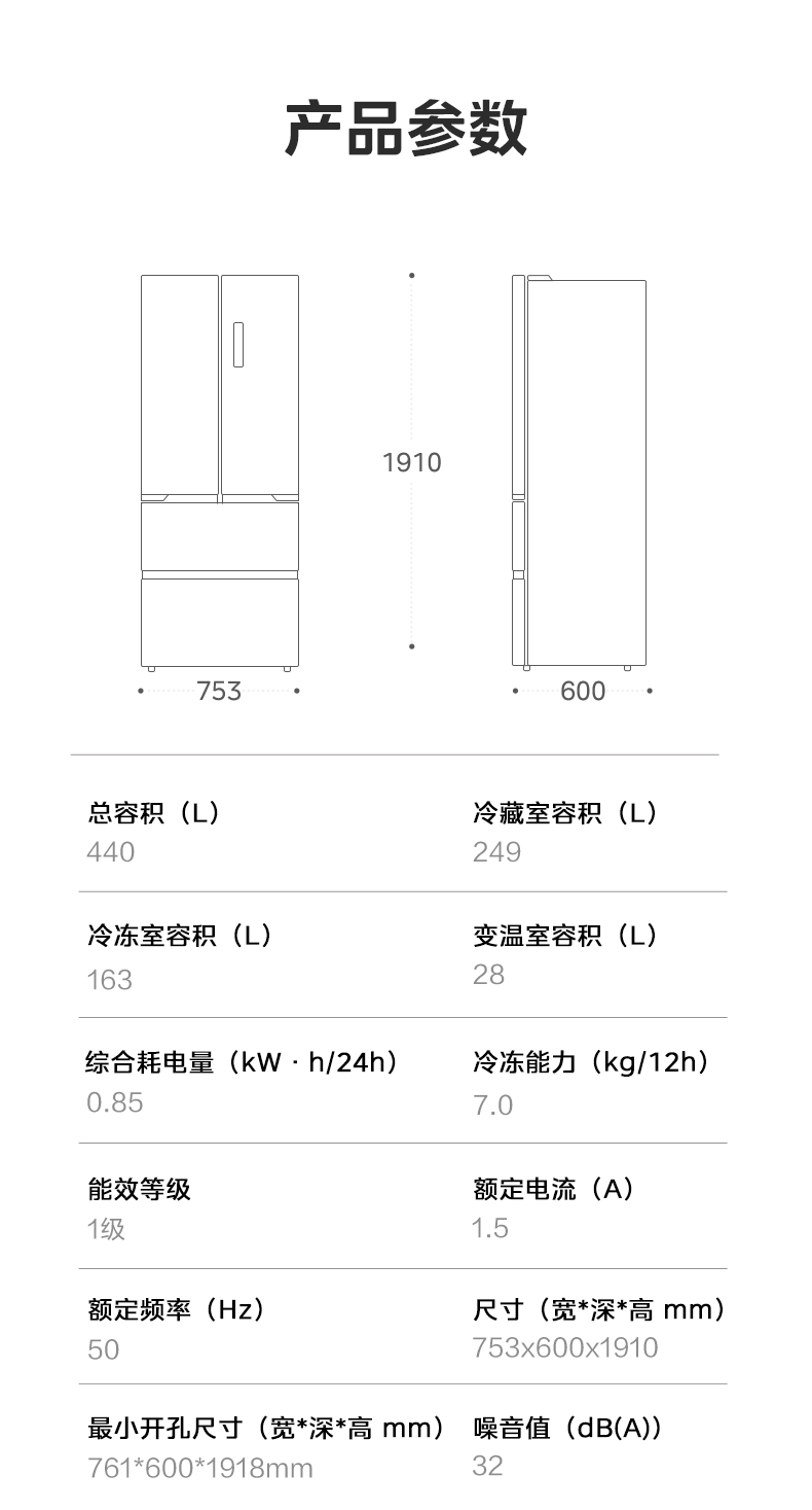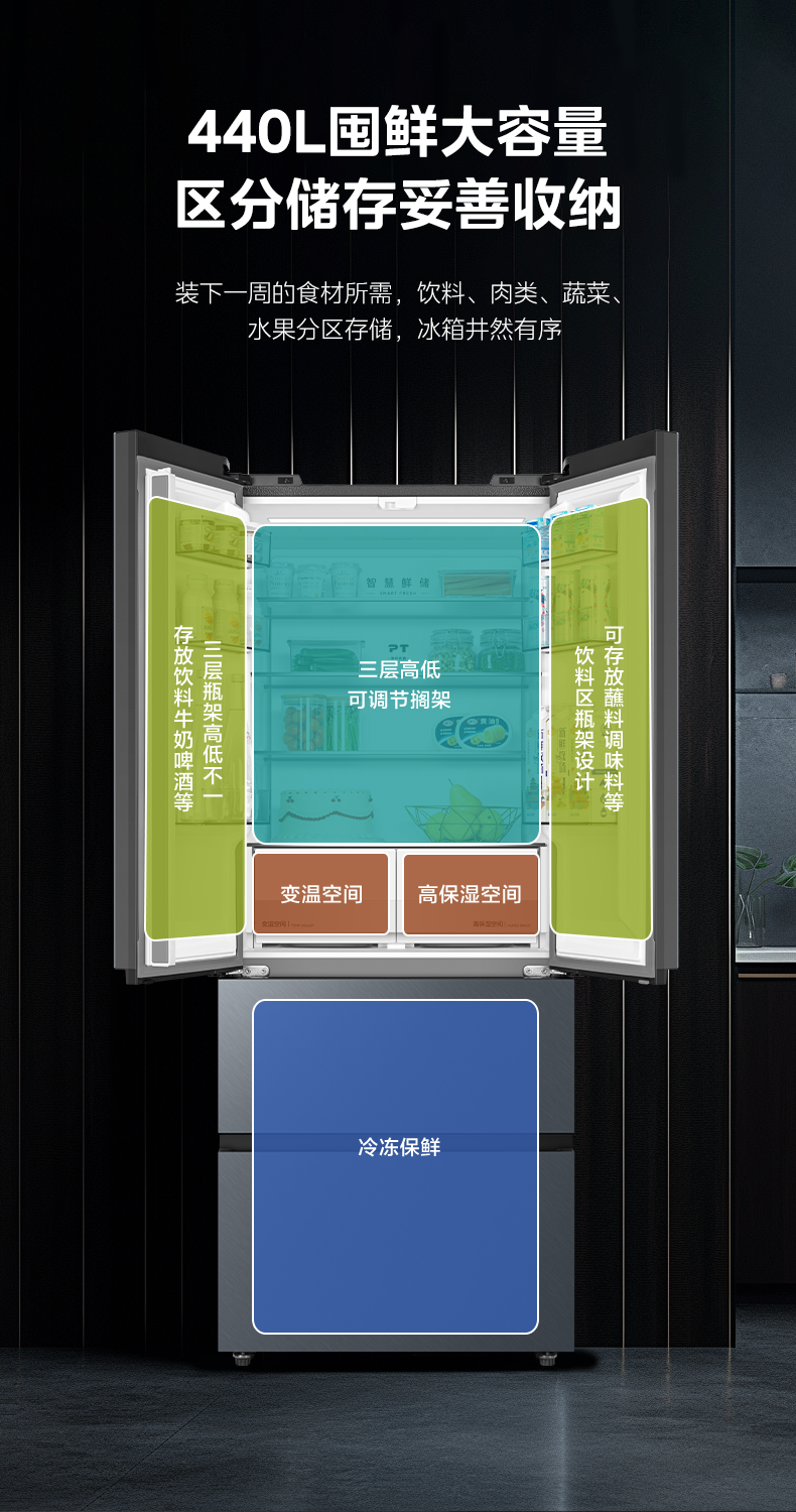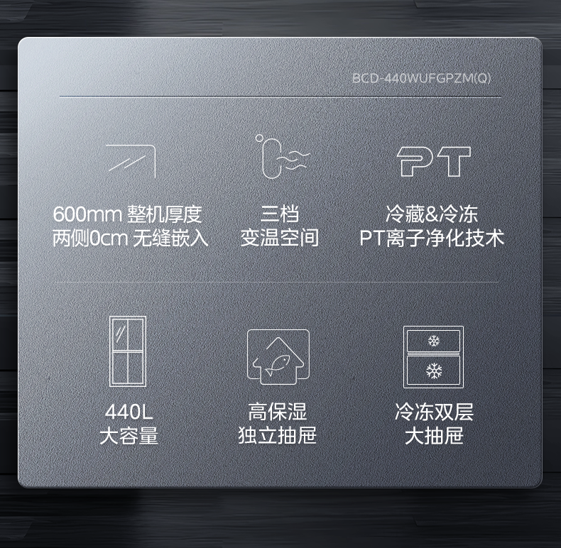 美的 冰箱 BCD-440WUFGPZM(Q) 丝雨灰