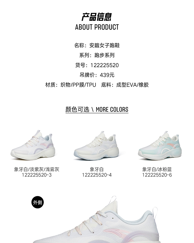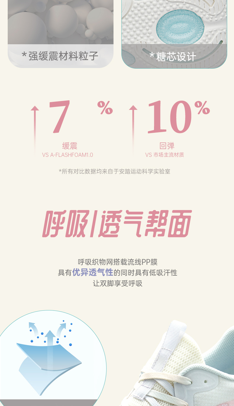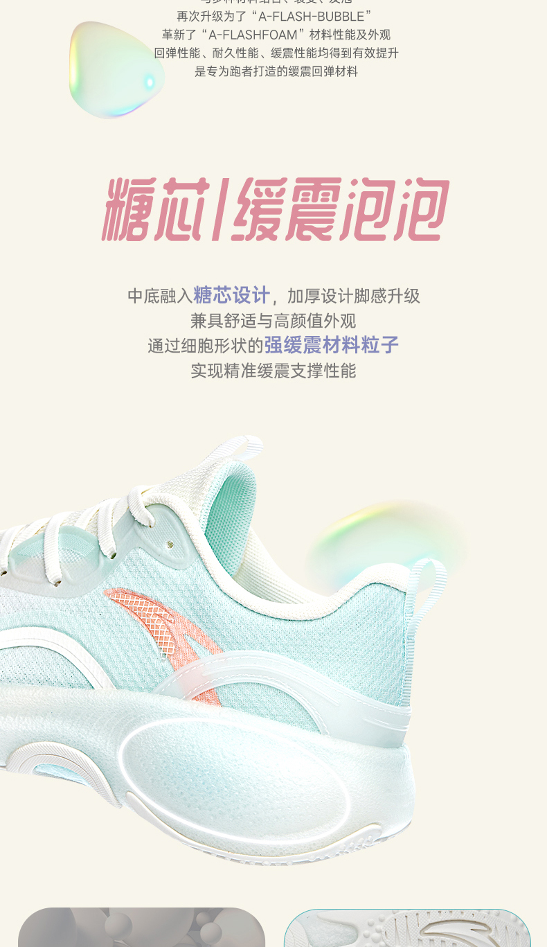 安踏糖芯泡泡丨跑步鞋女2022春季新款缓震运动鞋跳绳鞋122225520-3/4/8