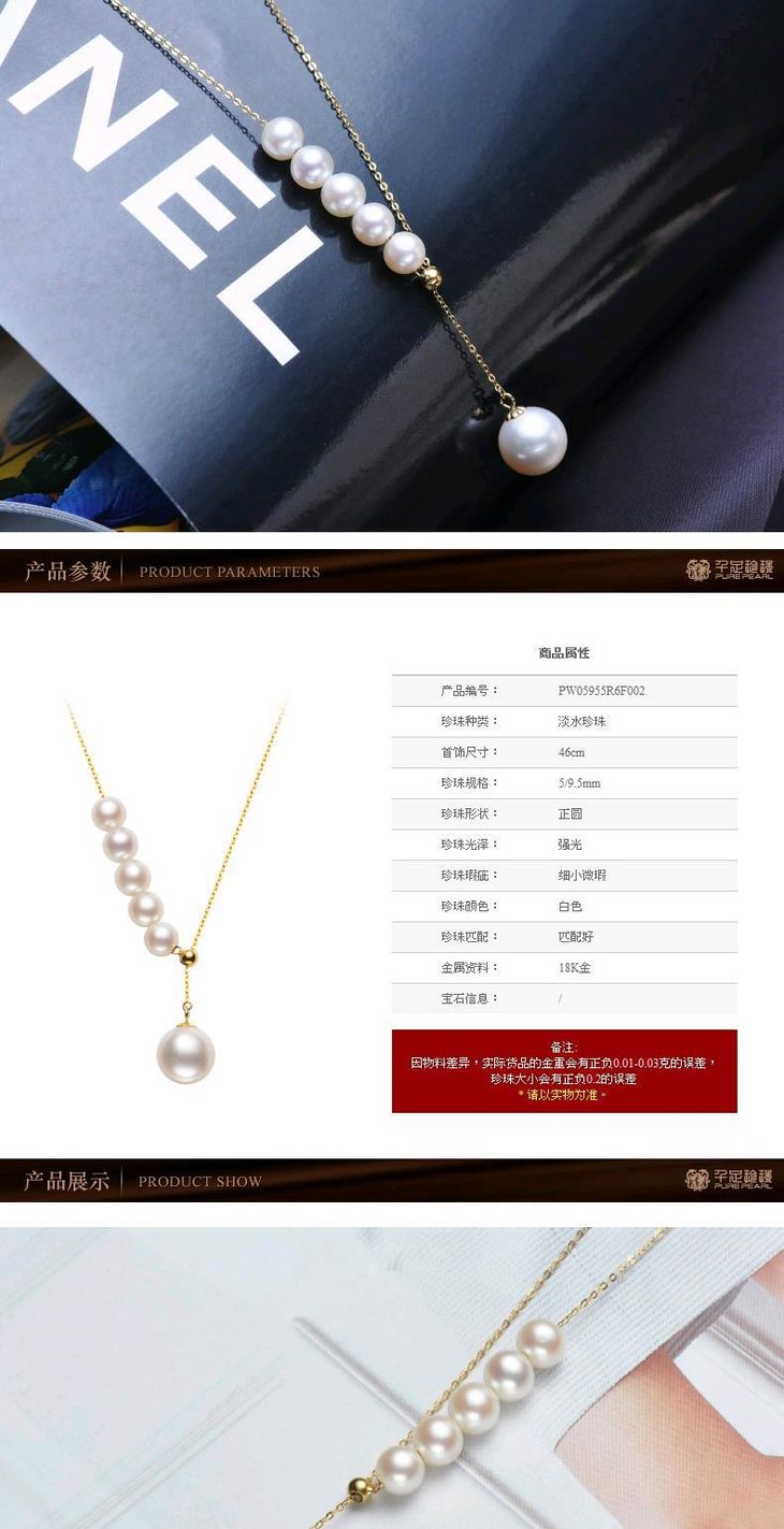 预售|5/9.5mm正圆光洁强光18K金淡水珍珠吊坠项链 .潮快闪[福利品]