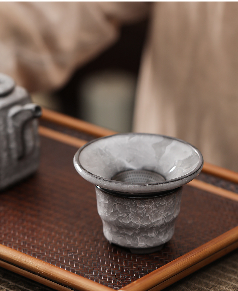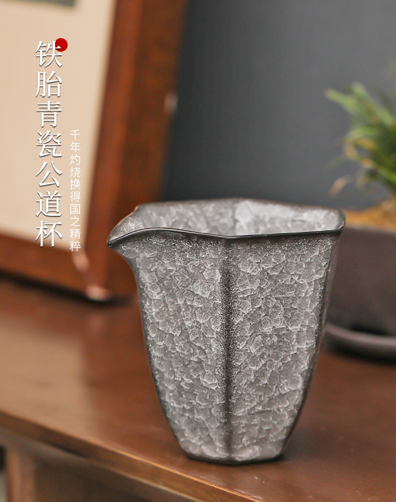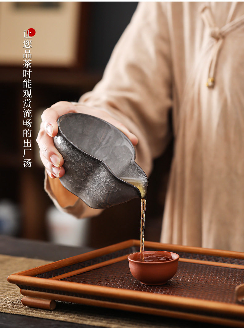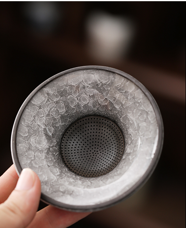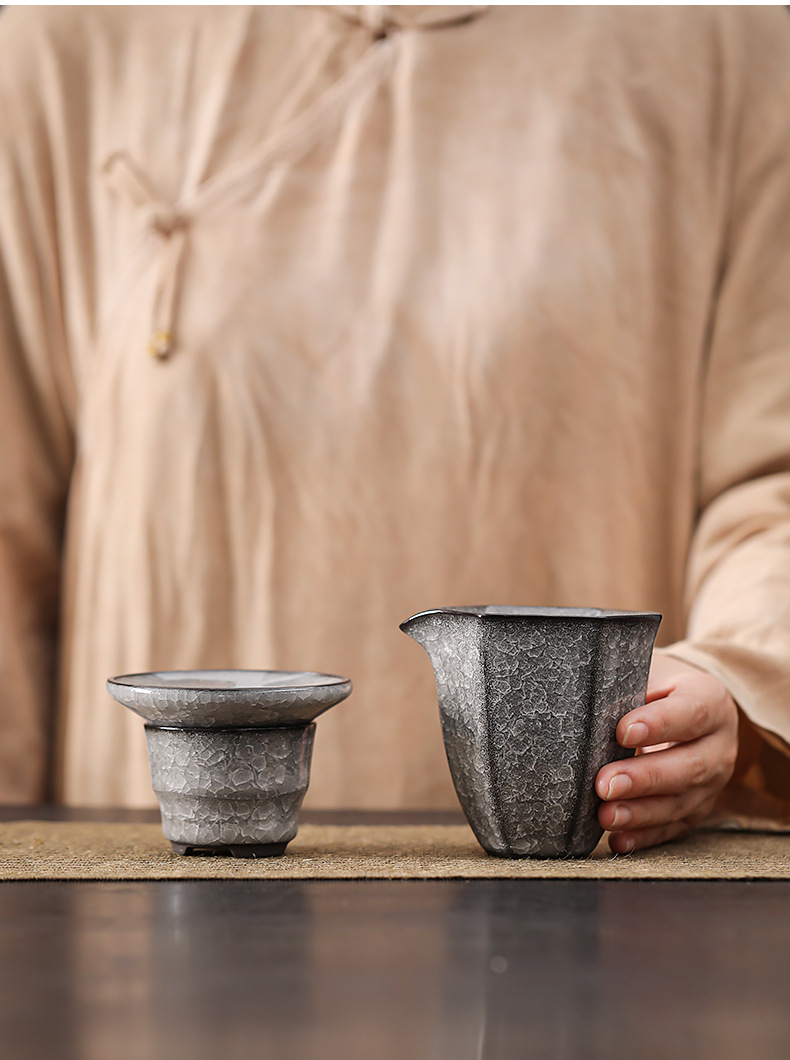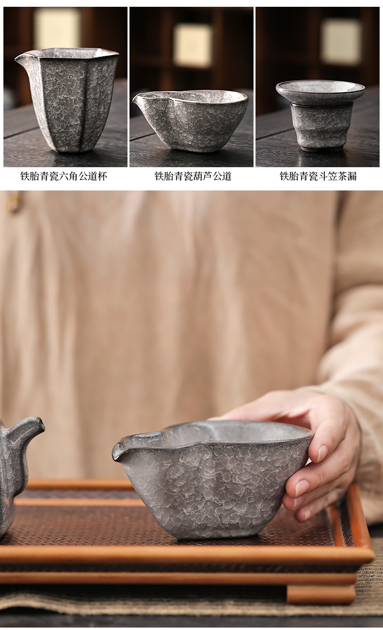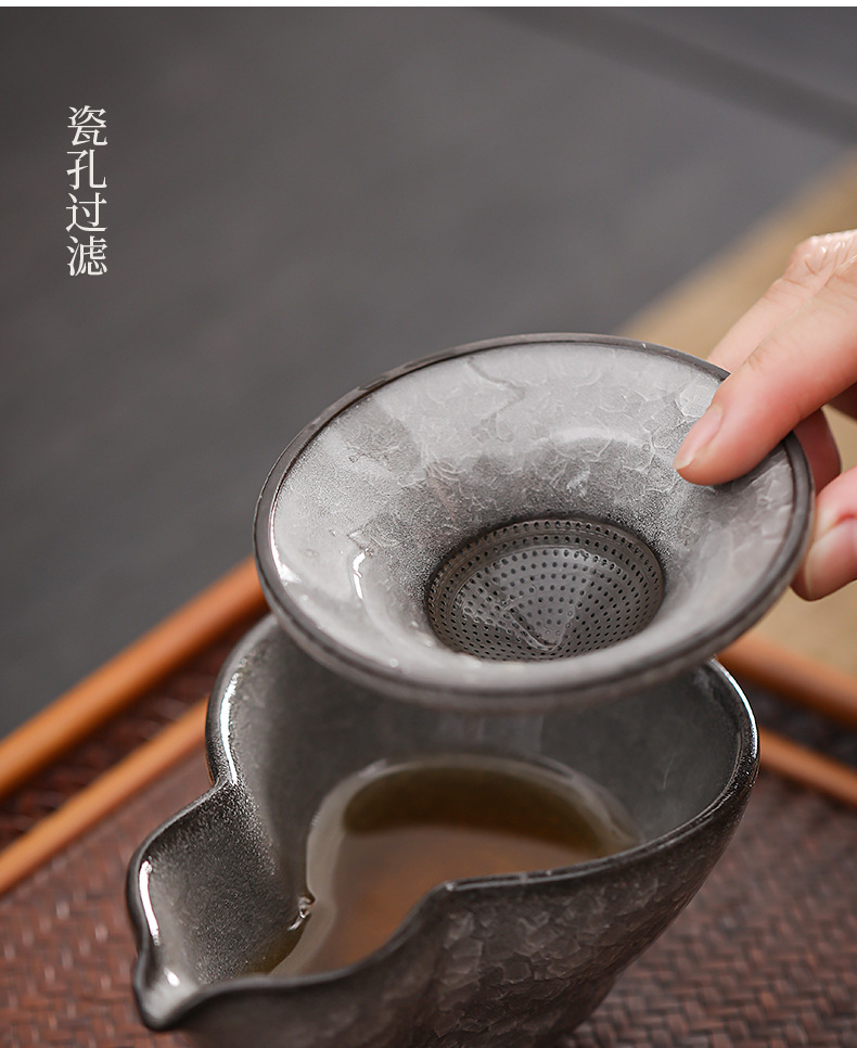 青瓷黑冰茶具公道杯茶杯茶漏手工复古铁胎冰裂纹陶瓷遇水化冰茶具