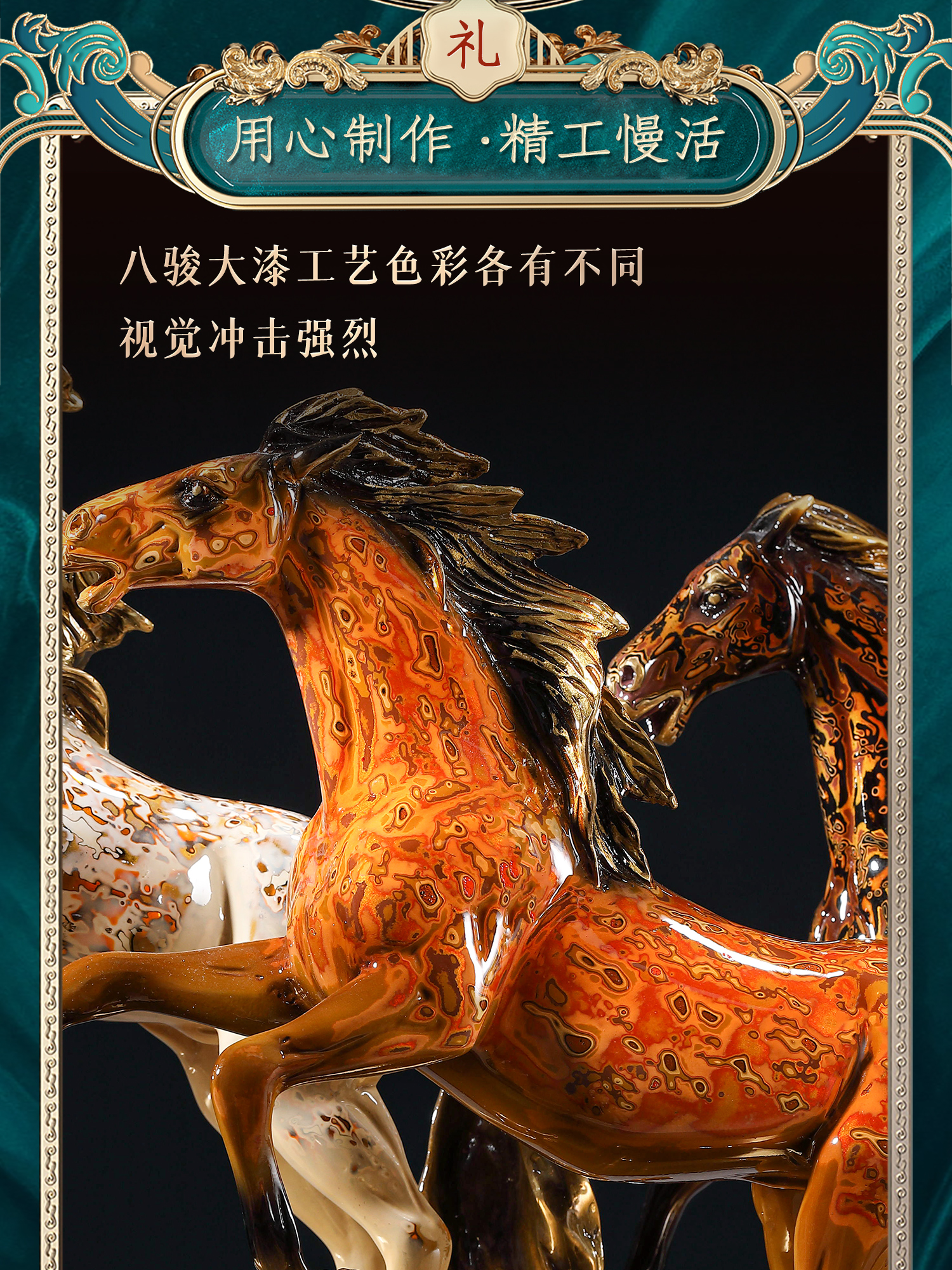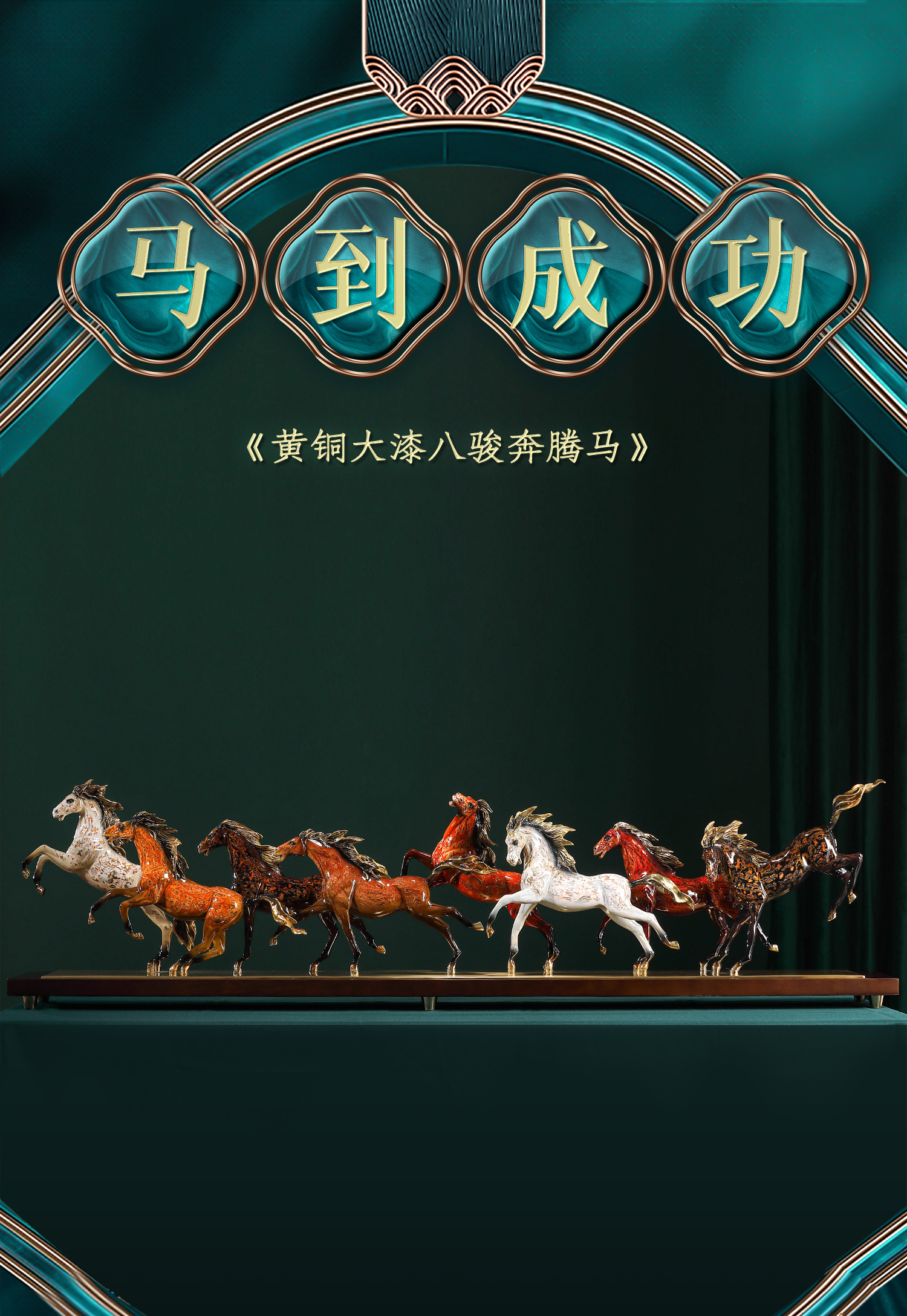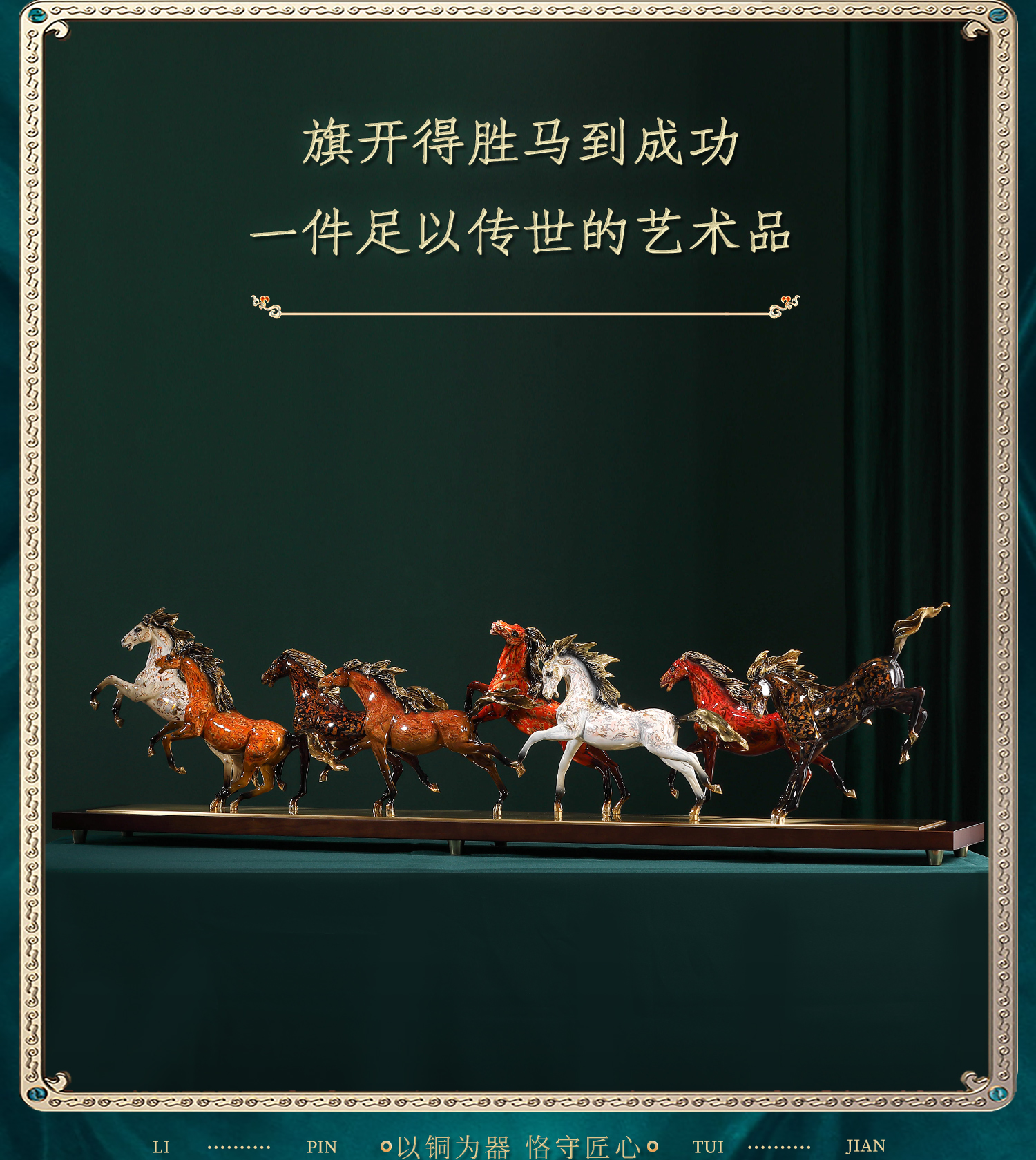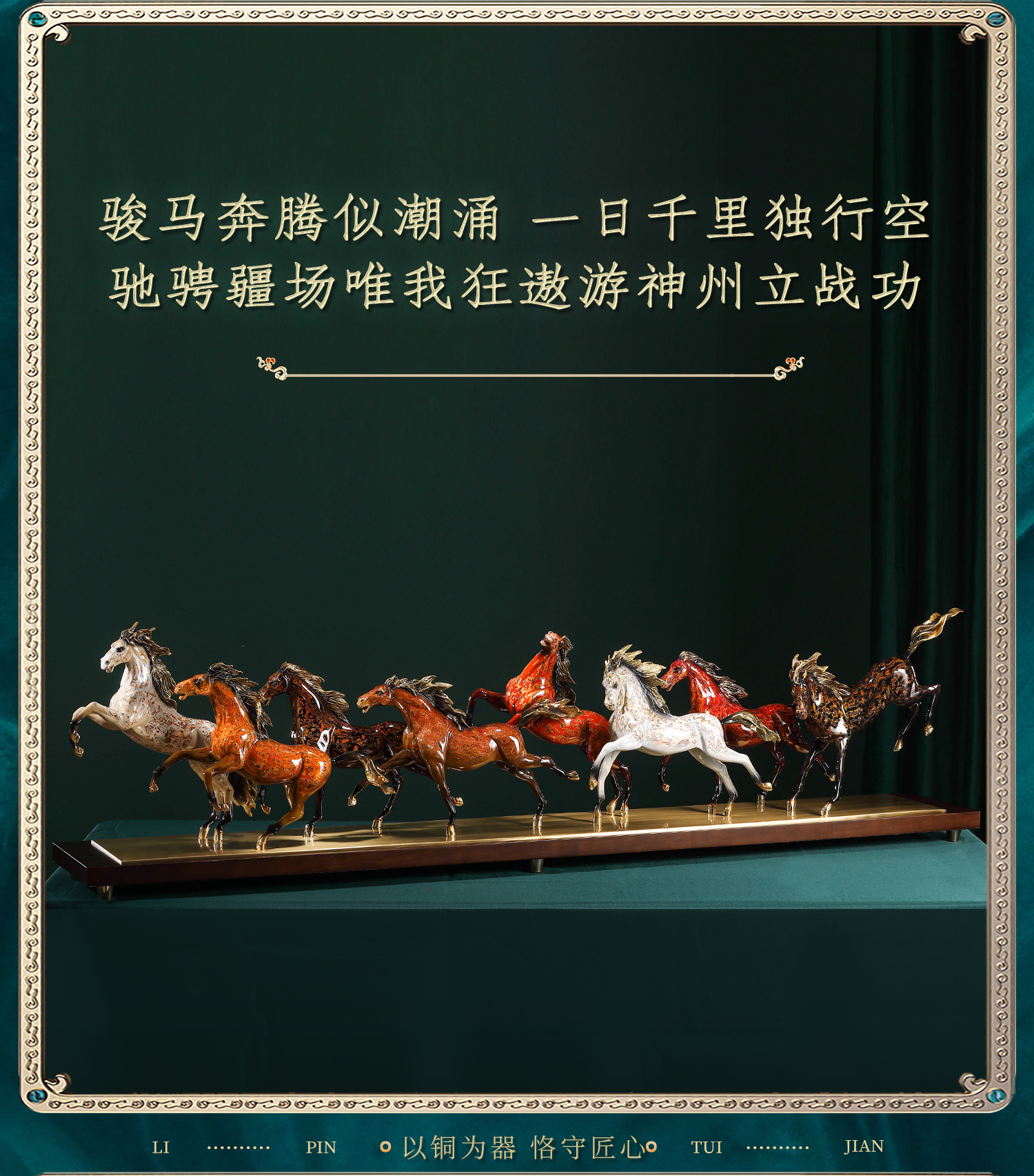 大铜世家黄铜大漆八骏奔腾马摆件老板办公室玄关工艺装饰乔迁礼品大漆/彩铜工艺 八骏马摆件 1000*140*280