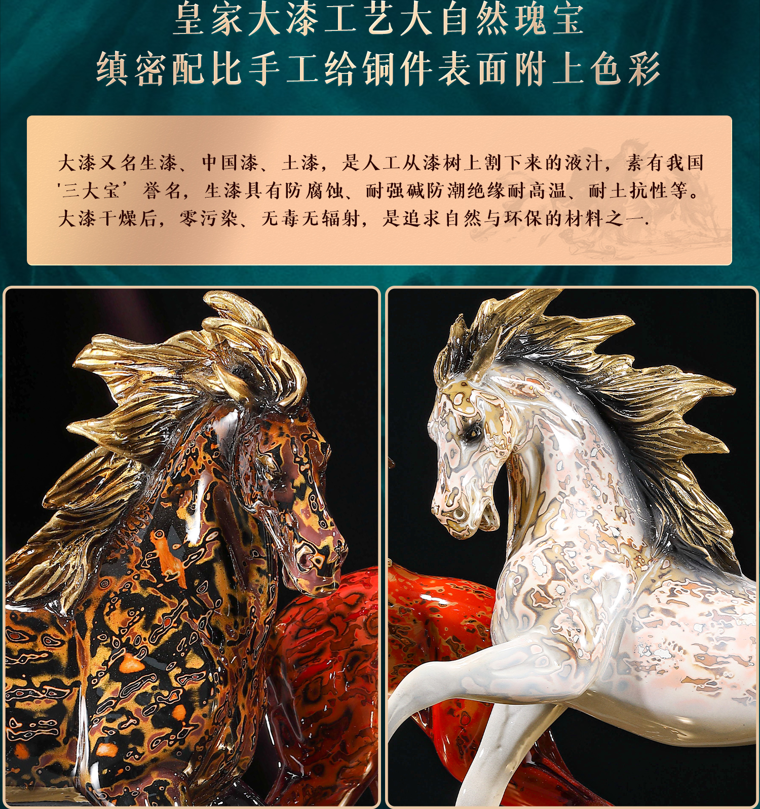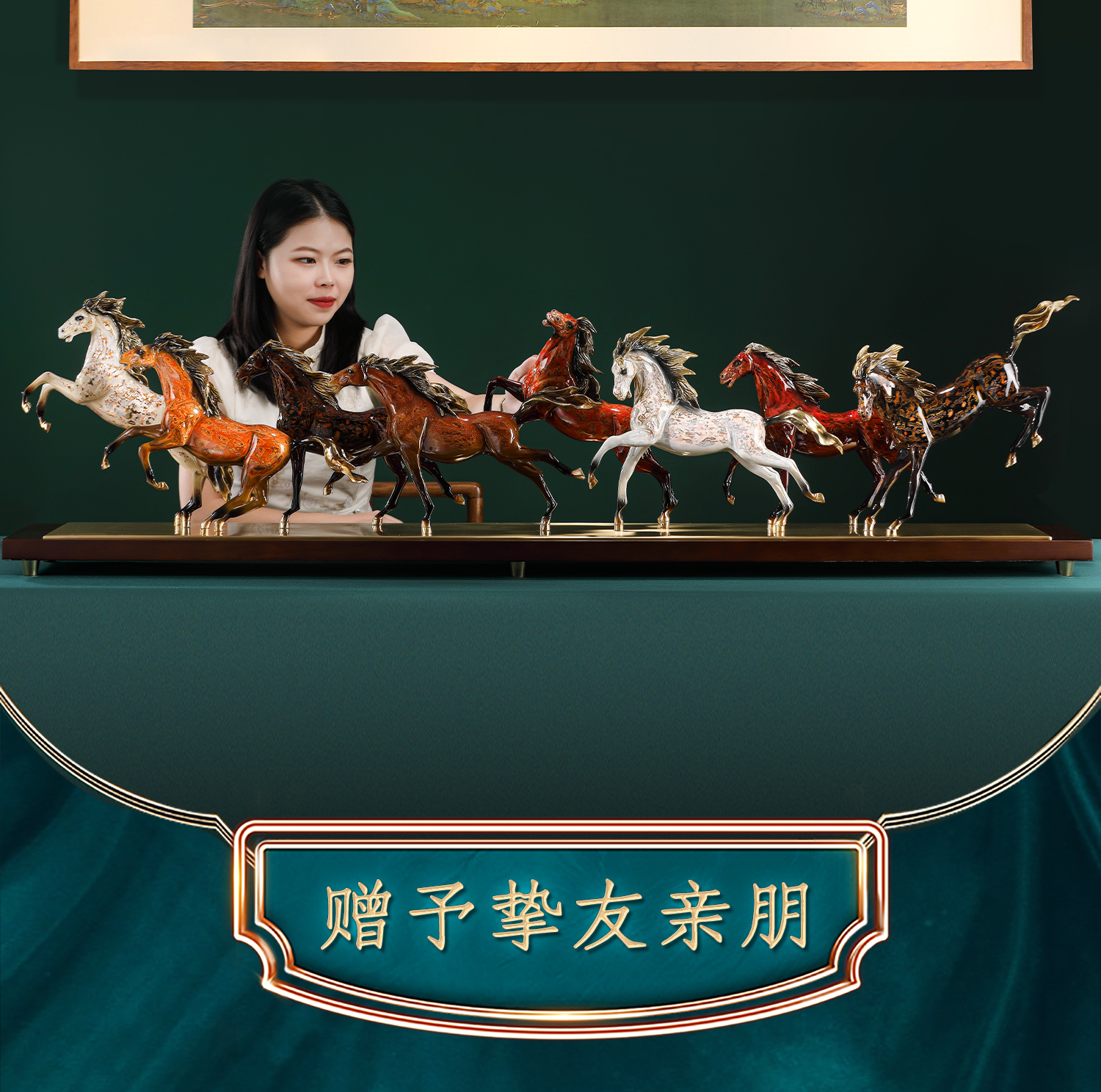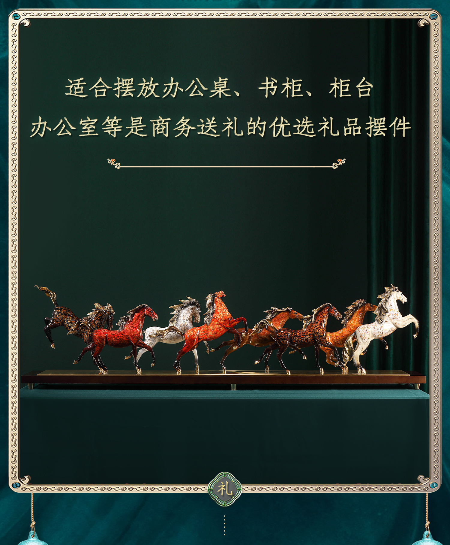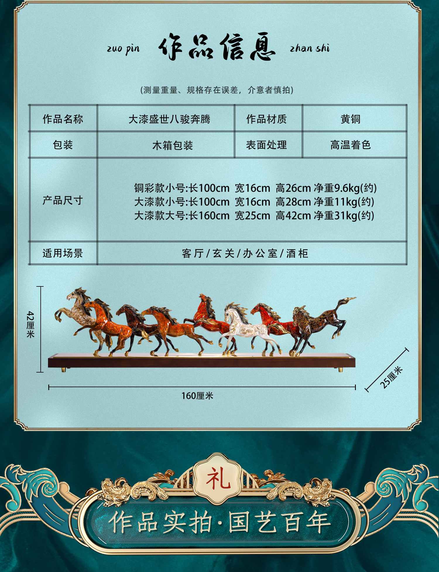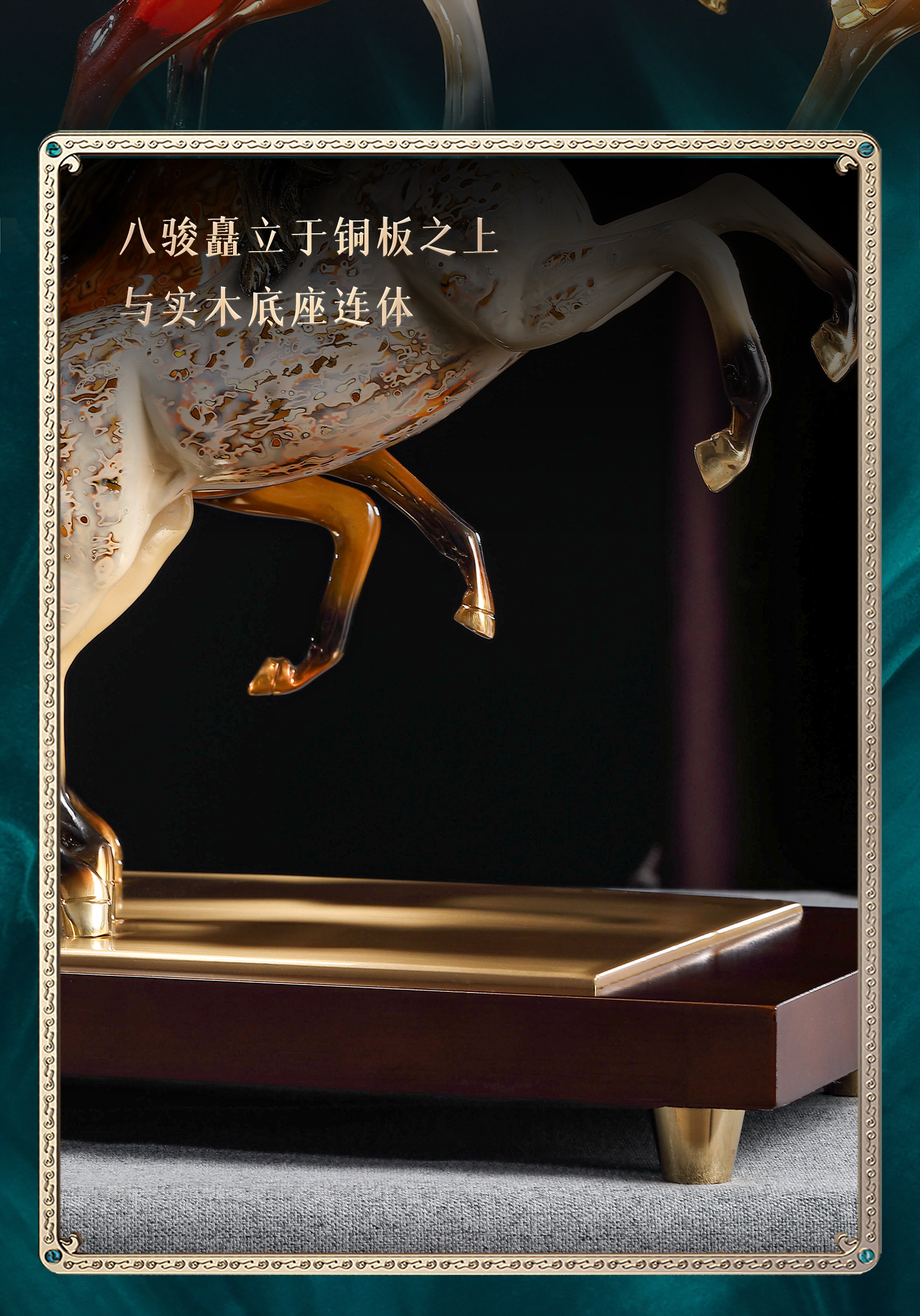 大铜世家黄铜大漆八骏奔腾马摆件老板办公室玄关工艺装饰乔迁礼品大漆/彩铜工艺 八骏马摆件 1000*140*280