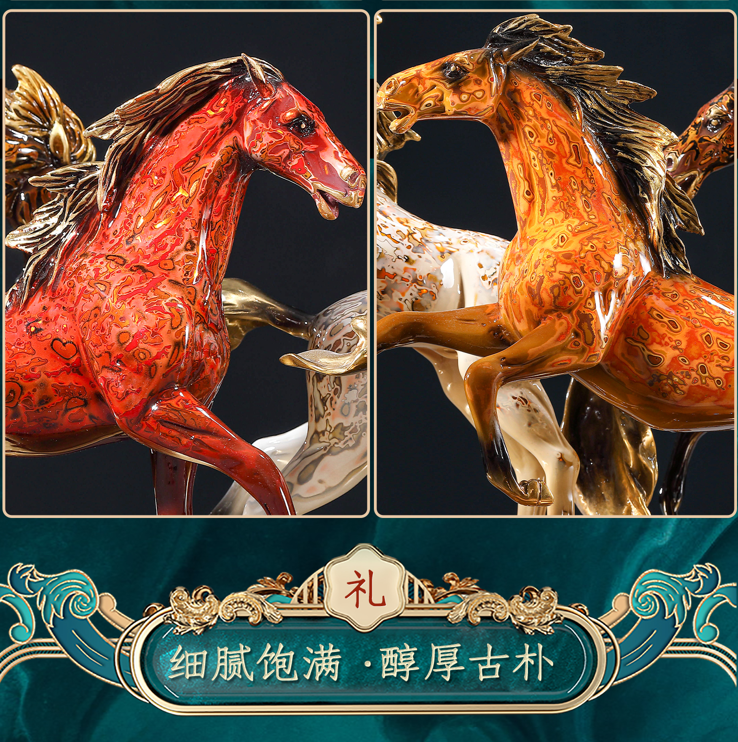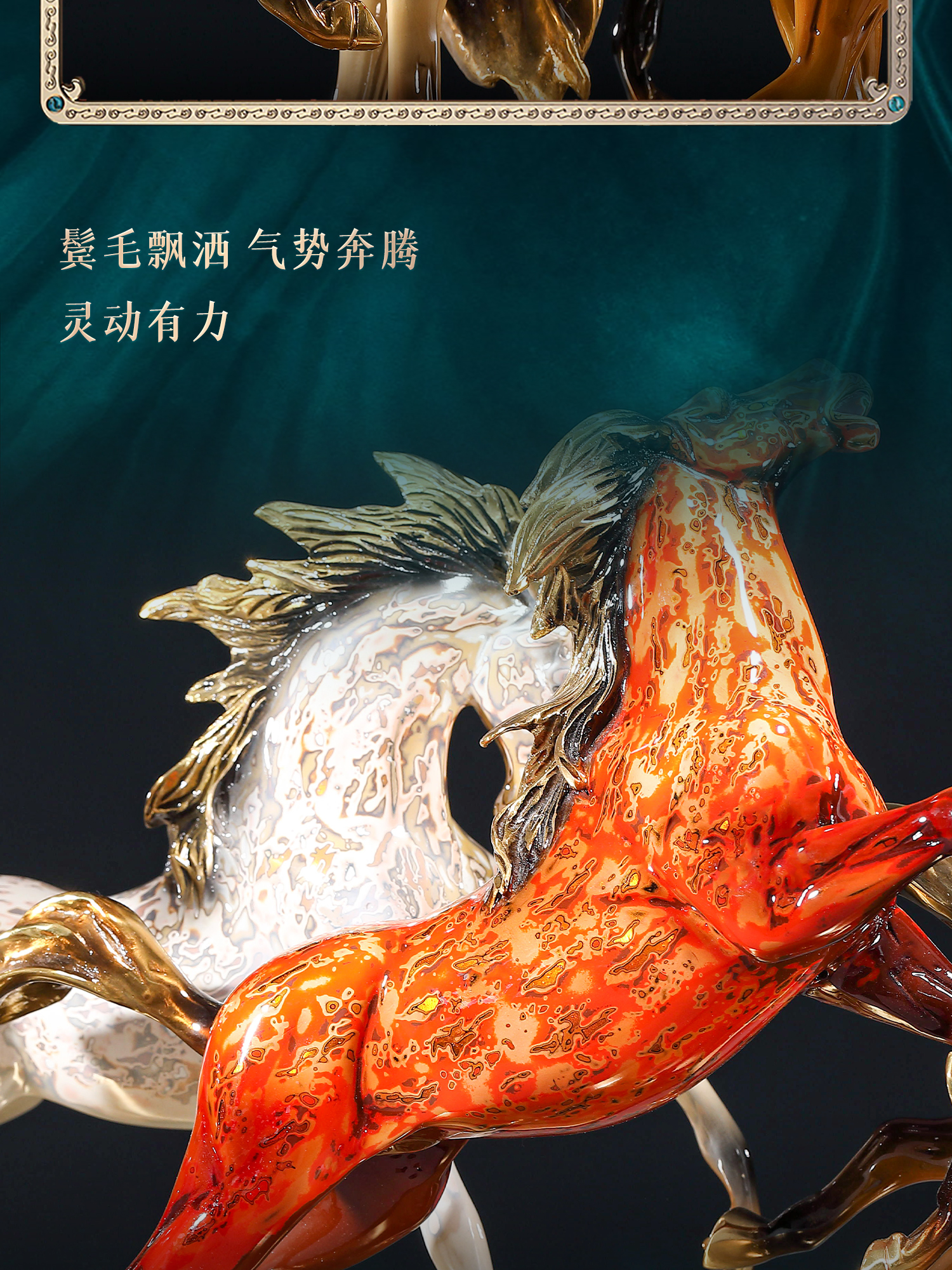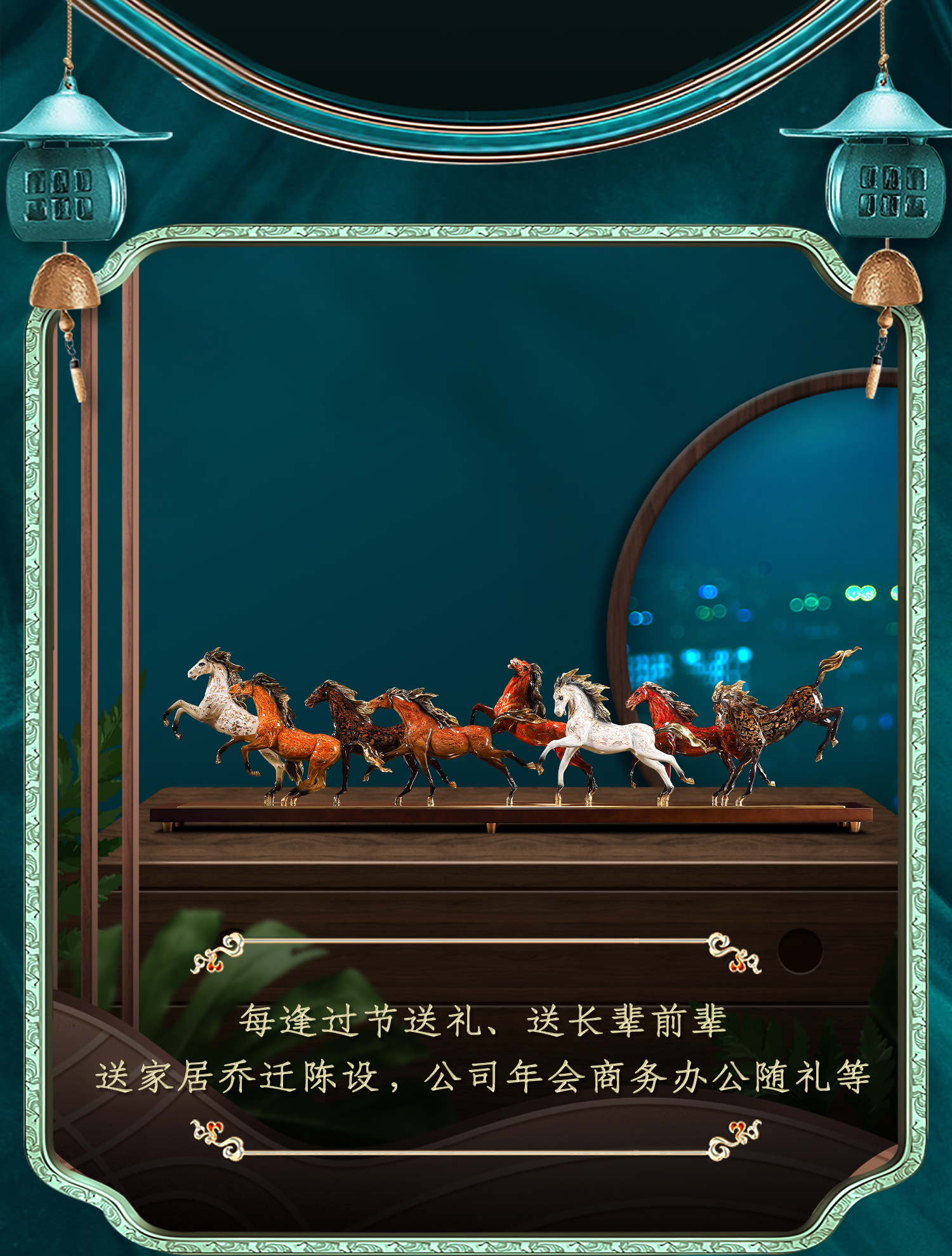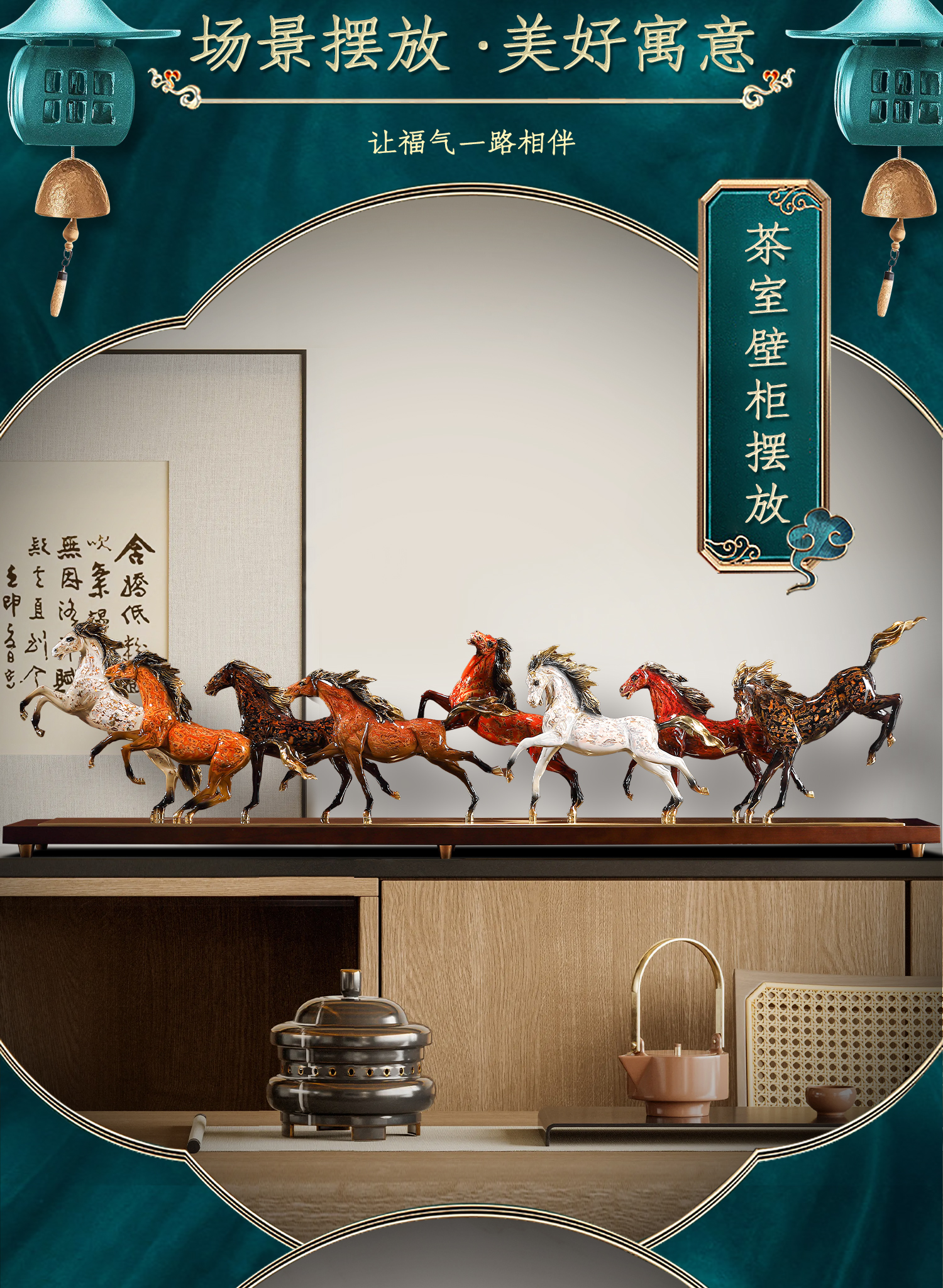 大铜世家黄铜大漆八骏奔腾马摆件老板办公室玄关工艺装饰乔迁礼品大漆/彩铜工艺 八骏马摆件 1000*140*280