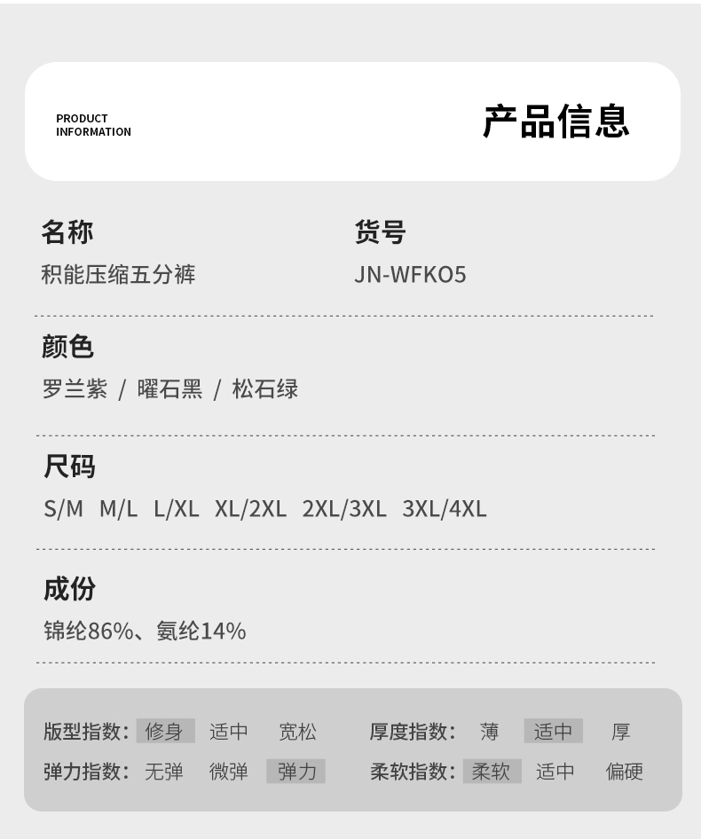 积能五分压缩裤环绕式可装手机跑步运动马拉松骑行裤子男女款夏季