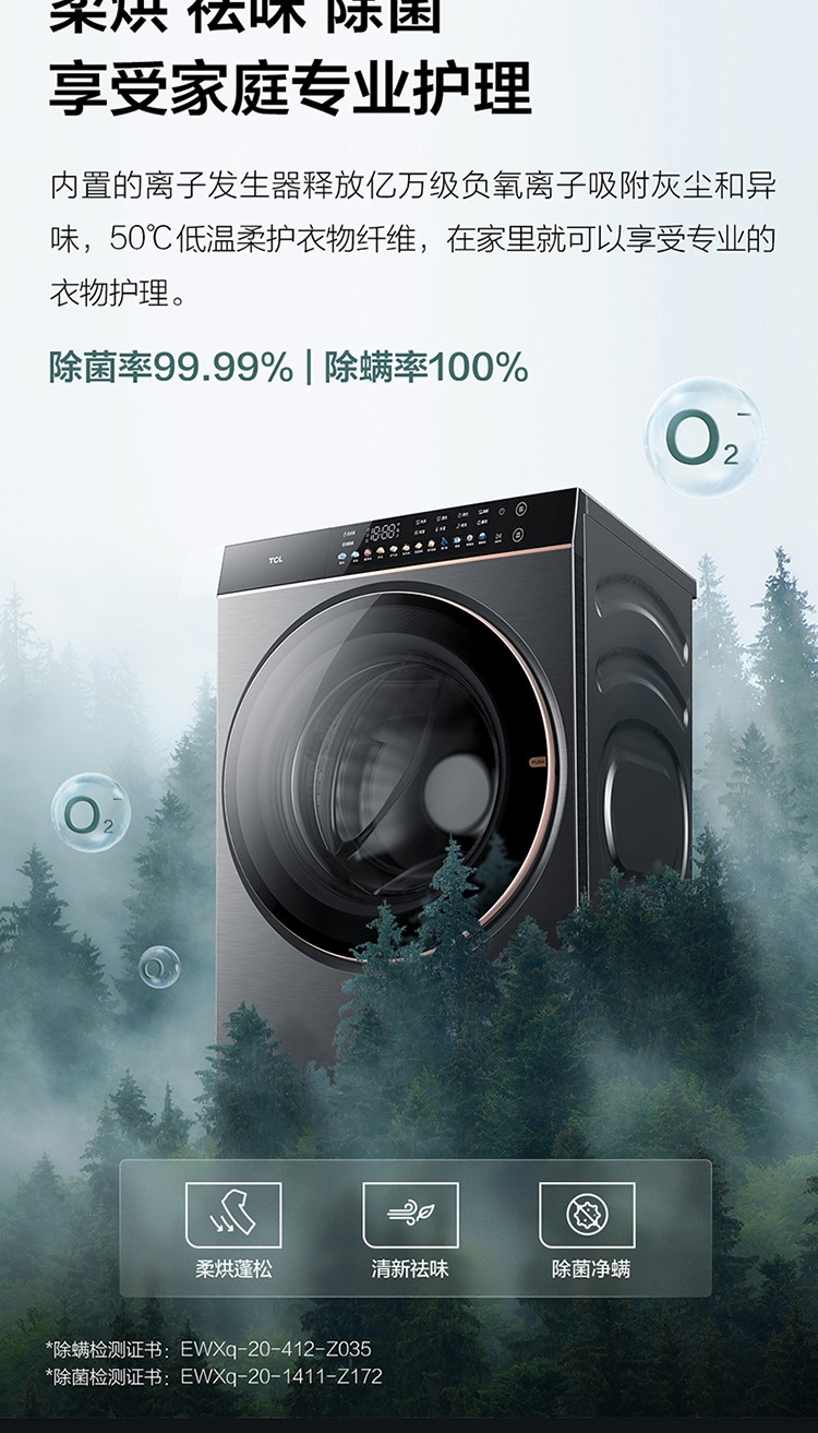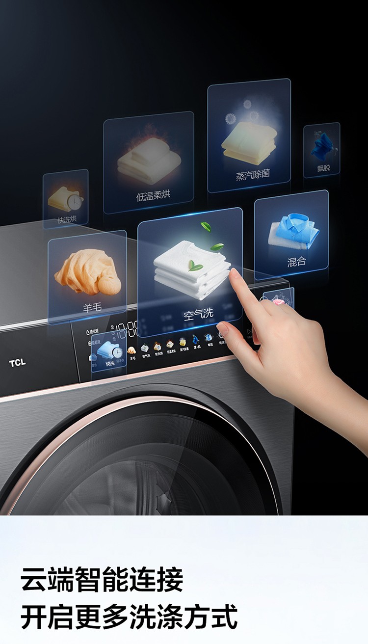 TCL10公斤离子柔护 智能投放 空气洗 DD直驱变频 洗烘一体洗衣机G100C6-HDI