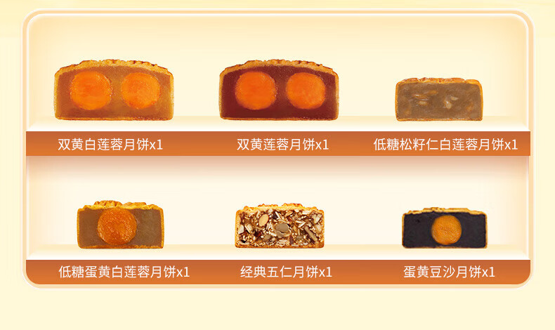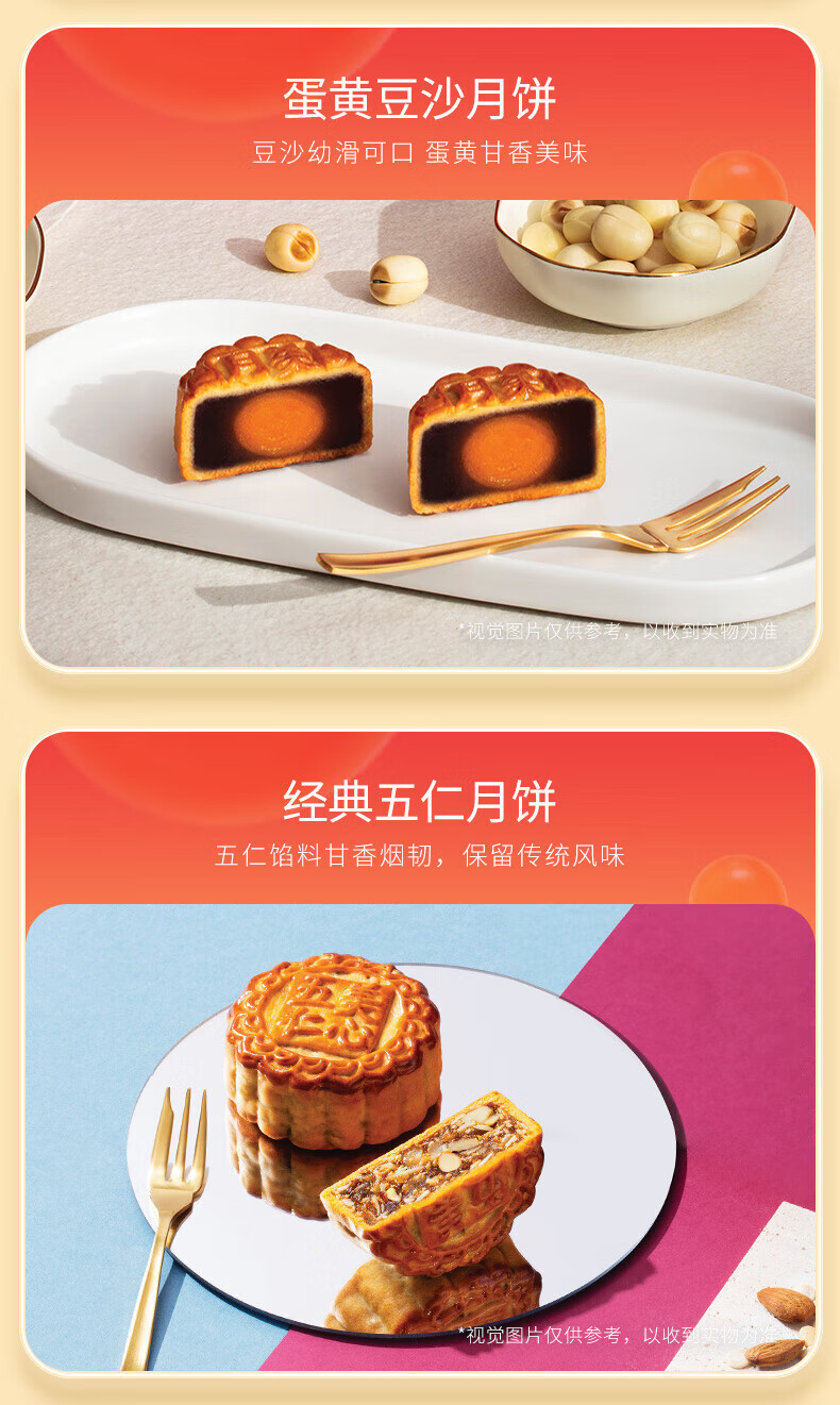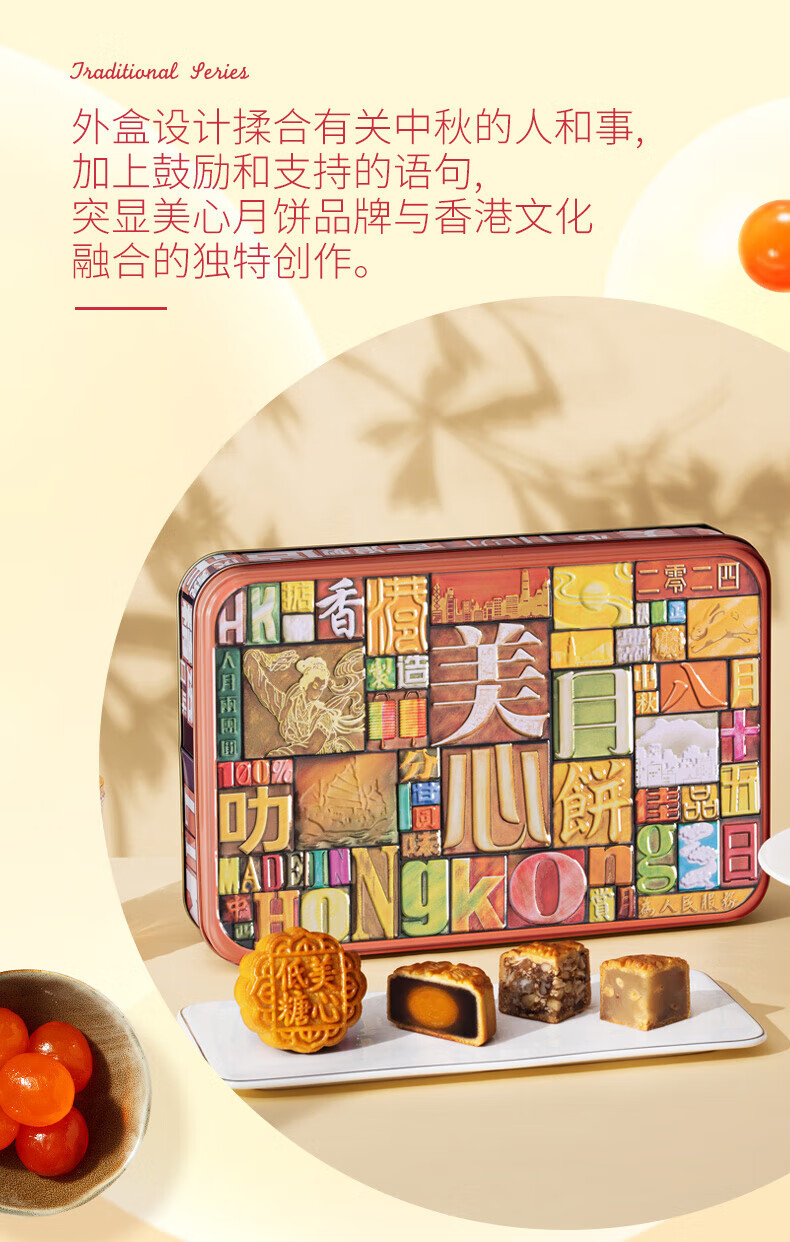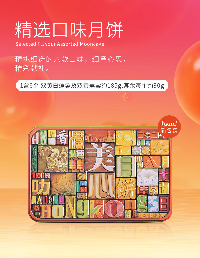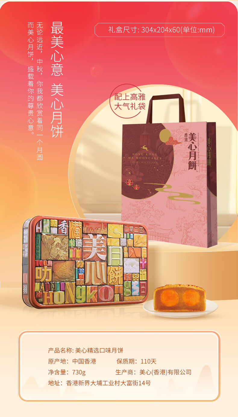 香港美心月饼 HONG KONG MX MOONCAKES美心精选口味月饼礼盒港式蛋黄莲蓉五仁多口味组合中秋节点心礼品 美心精选口味月饼 730g 6个装