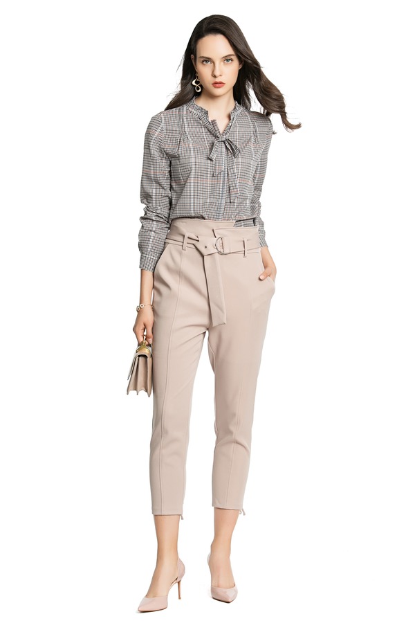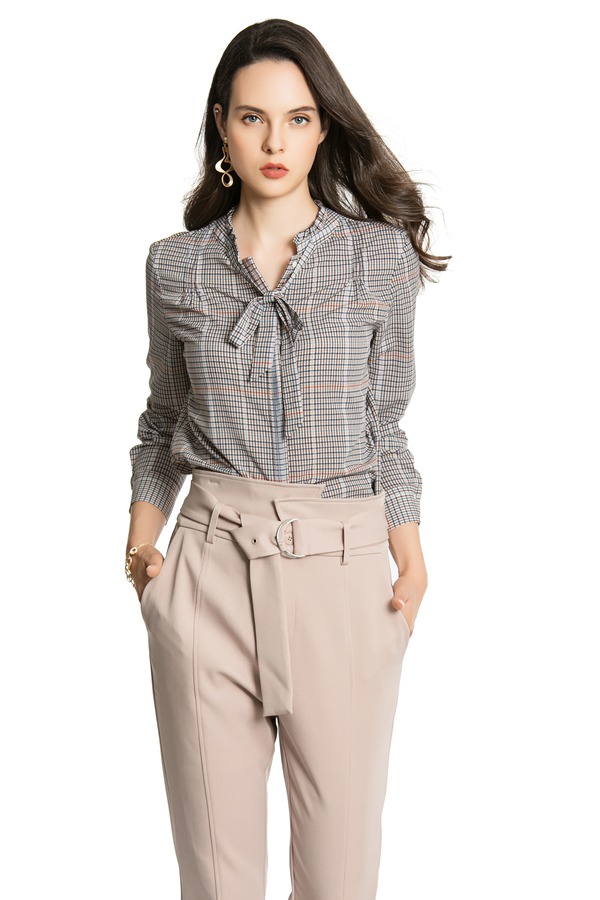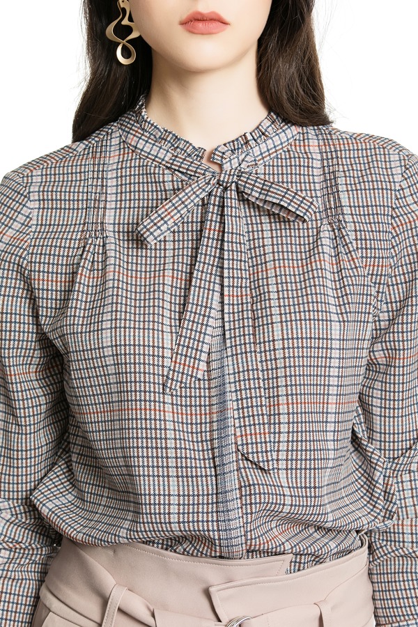 ONLY 复古格纹系带衬衣 4257