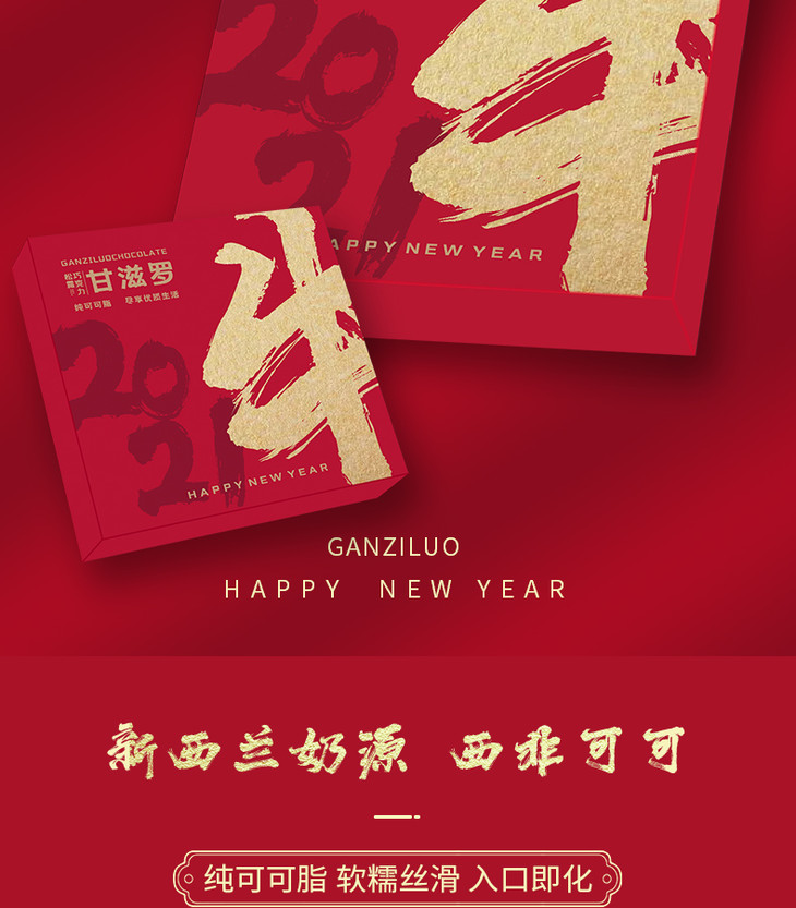 新年好物礼盒丨甘滋罗纯可可脂松露形巧克力—牛牛烫金礼盒 节日送礼品 礼盒310g/盒 混合口味约55-65颗