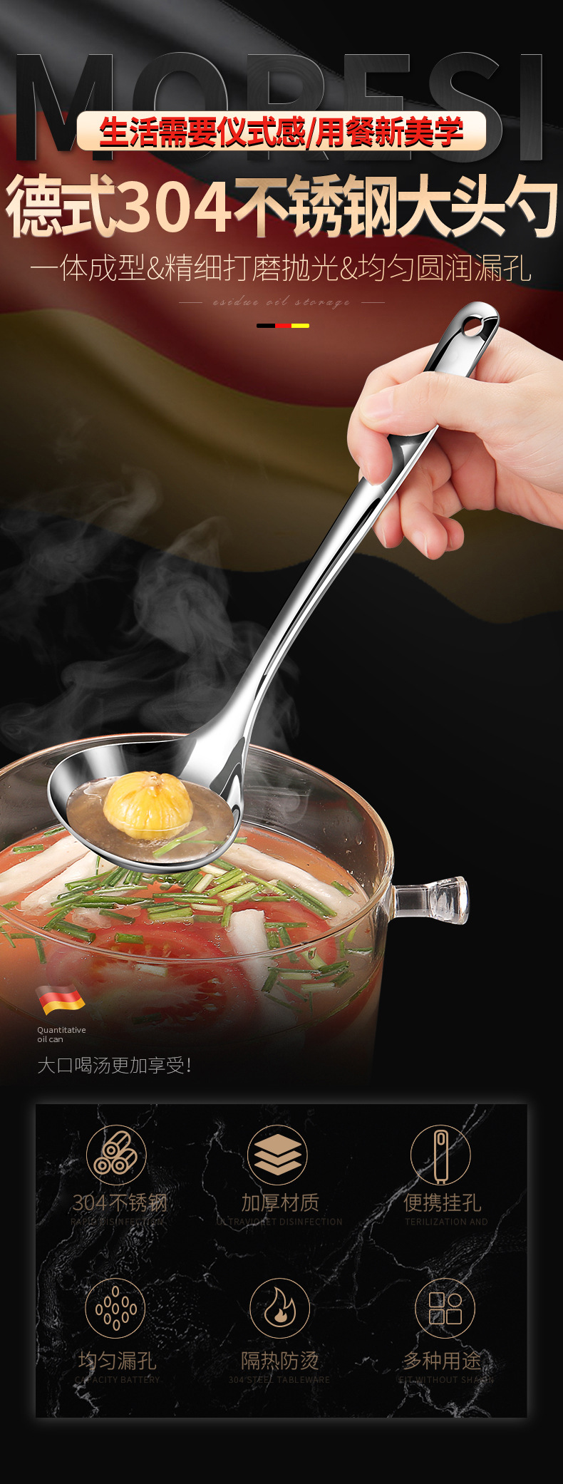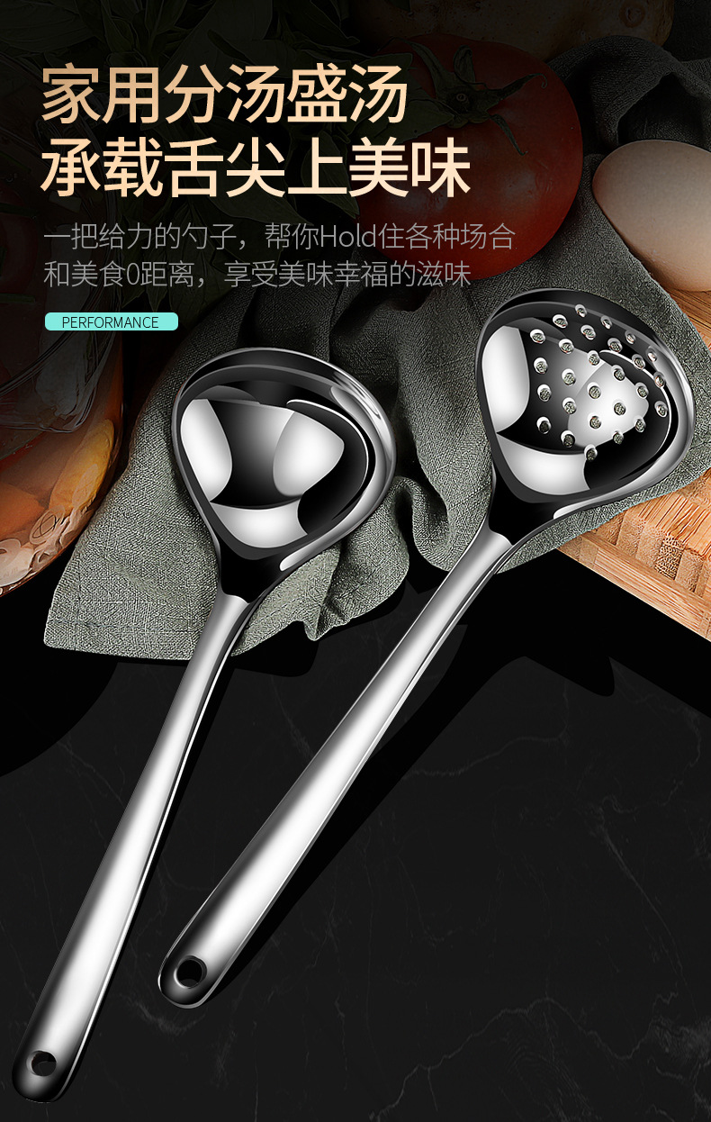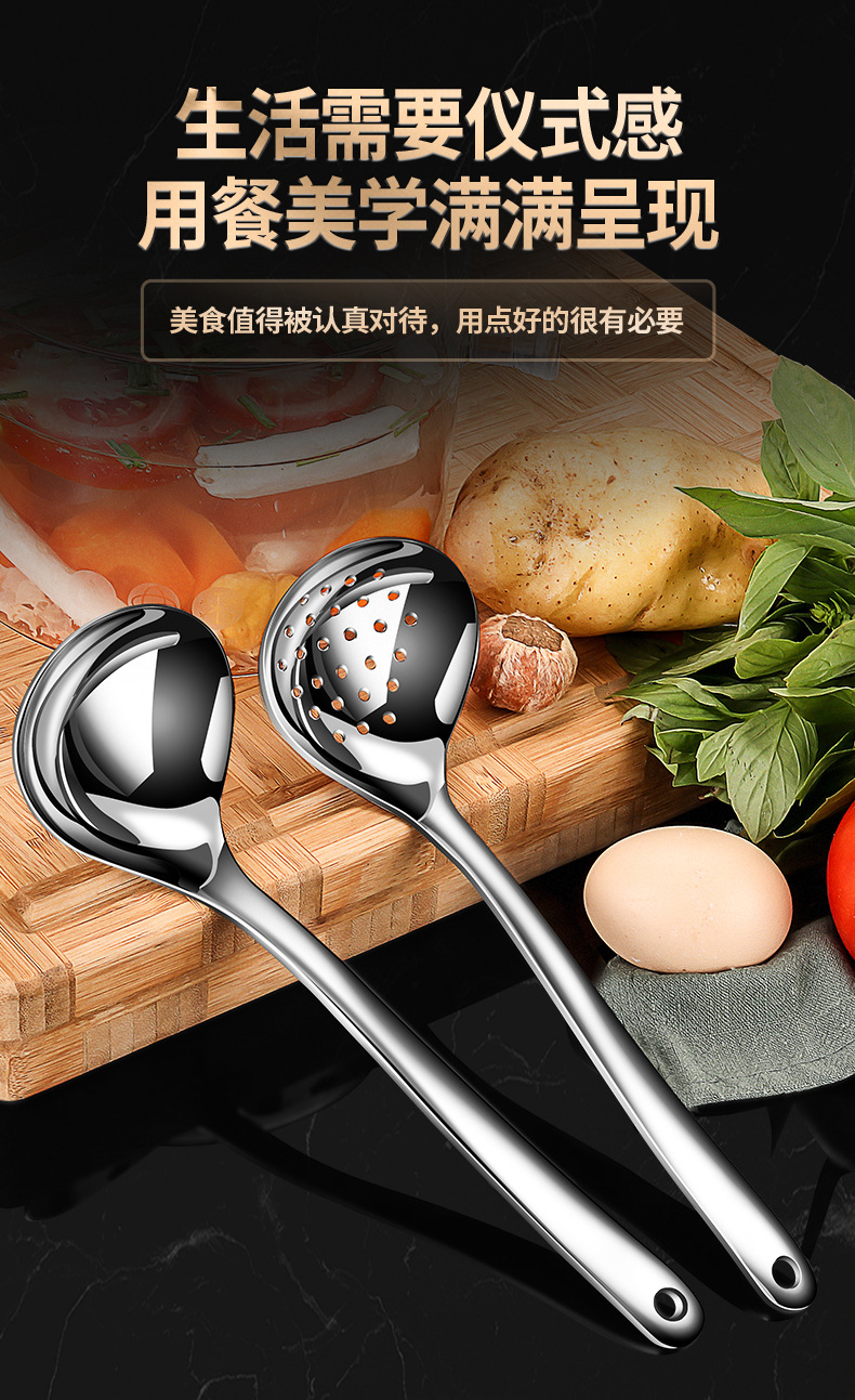 【跨境出口大汤勺】304不锈钢汤勺家用漏勺厨房大号盛汤勺子加厚加深火锅勺厨具批发