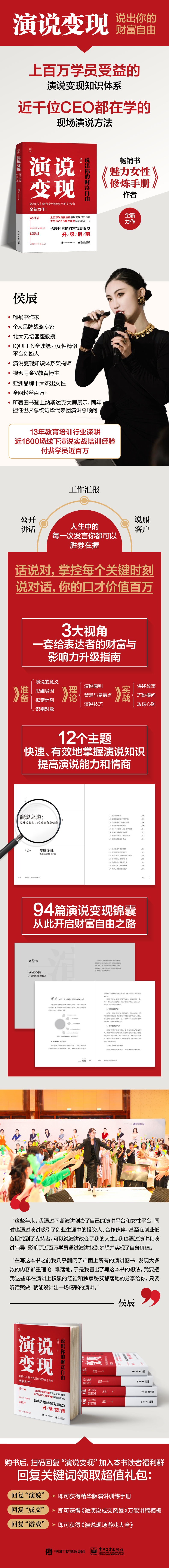 如果你是职场人士、演说小白,要读这本书如果你是销售、主播、演说讲师,更要读这本书一套给表达者的财富与影响力升级指南,近1600场线下演说实战经验,从准备、理论、实战三大角度一次内化。让你的每一次发言都掷地有声,每一场演说都是高光时刻,实现人生与财富的双重自由!
