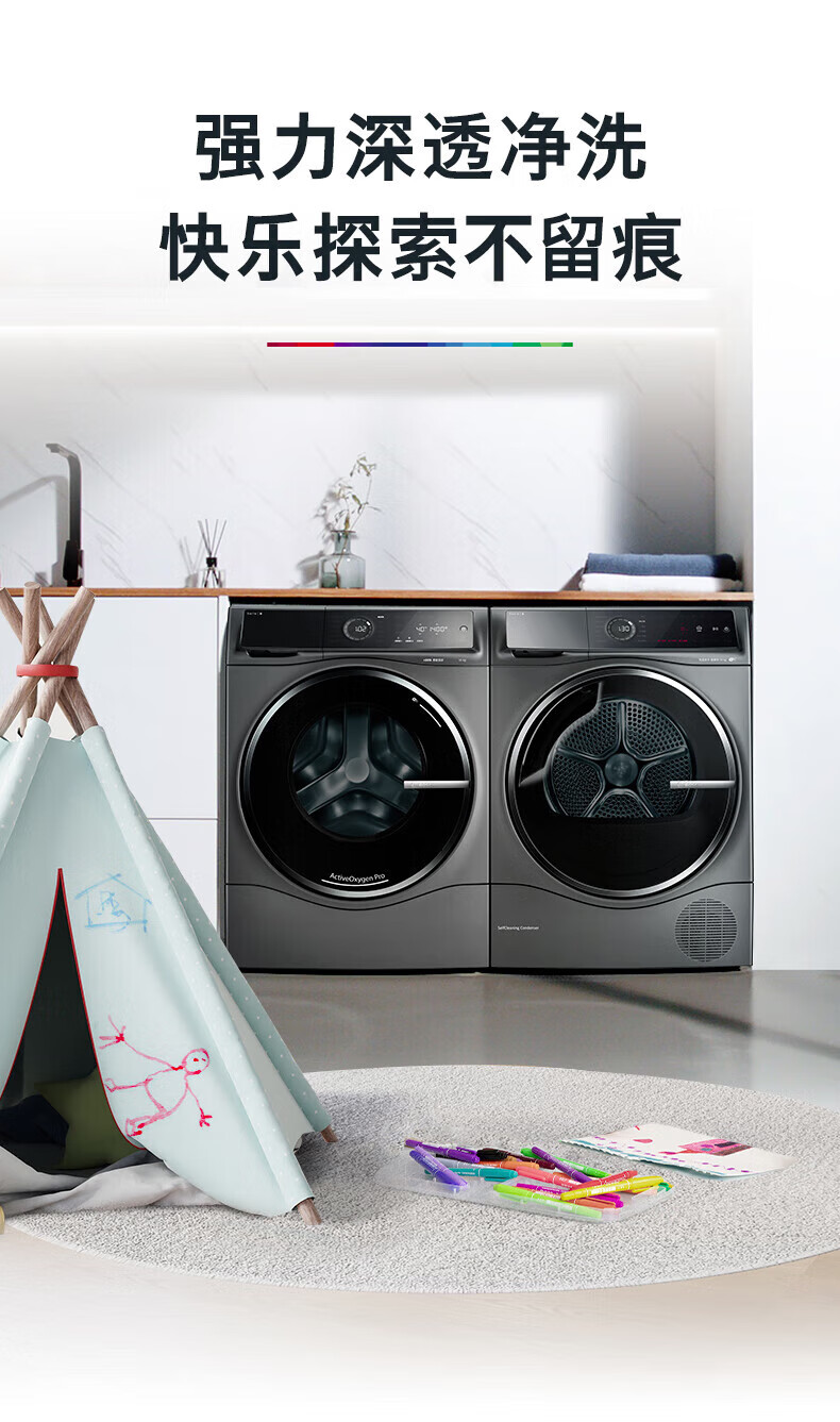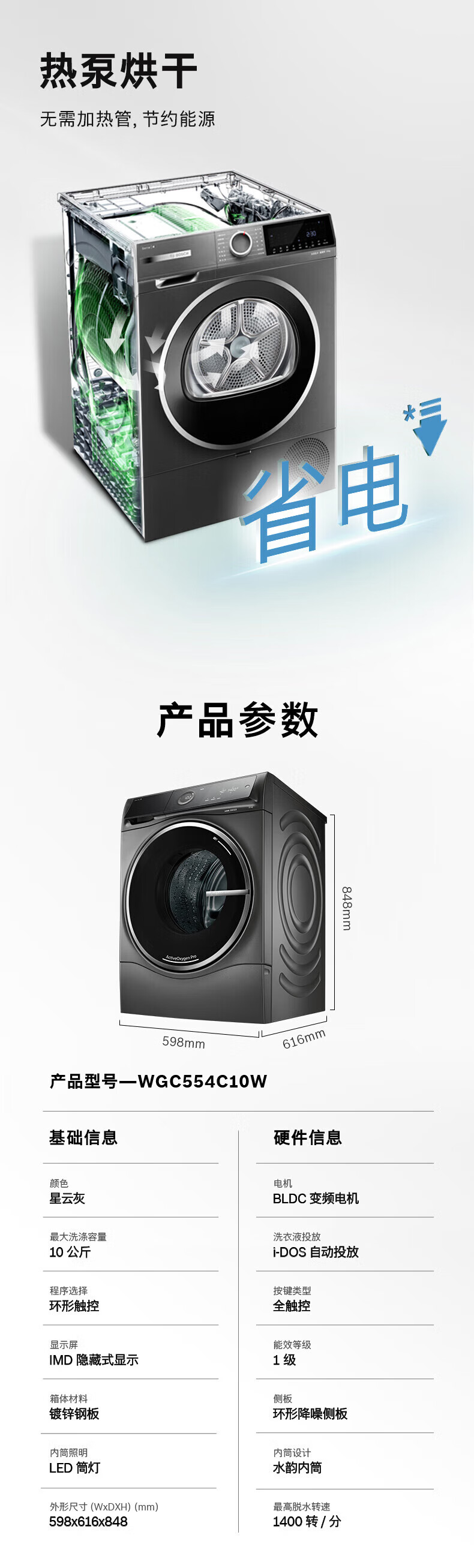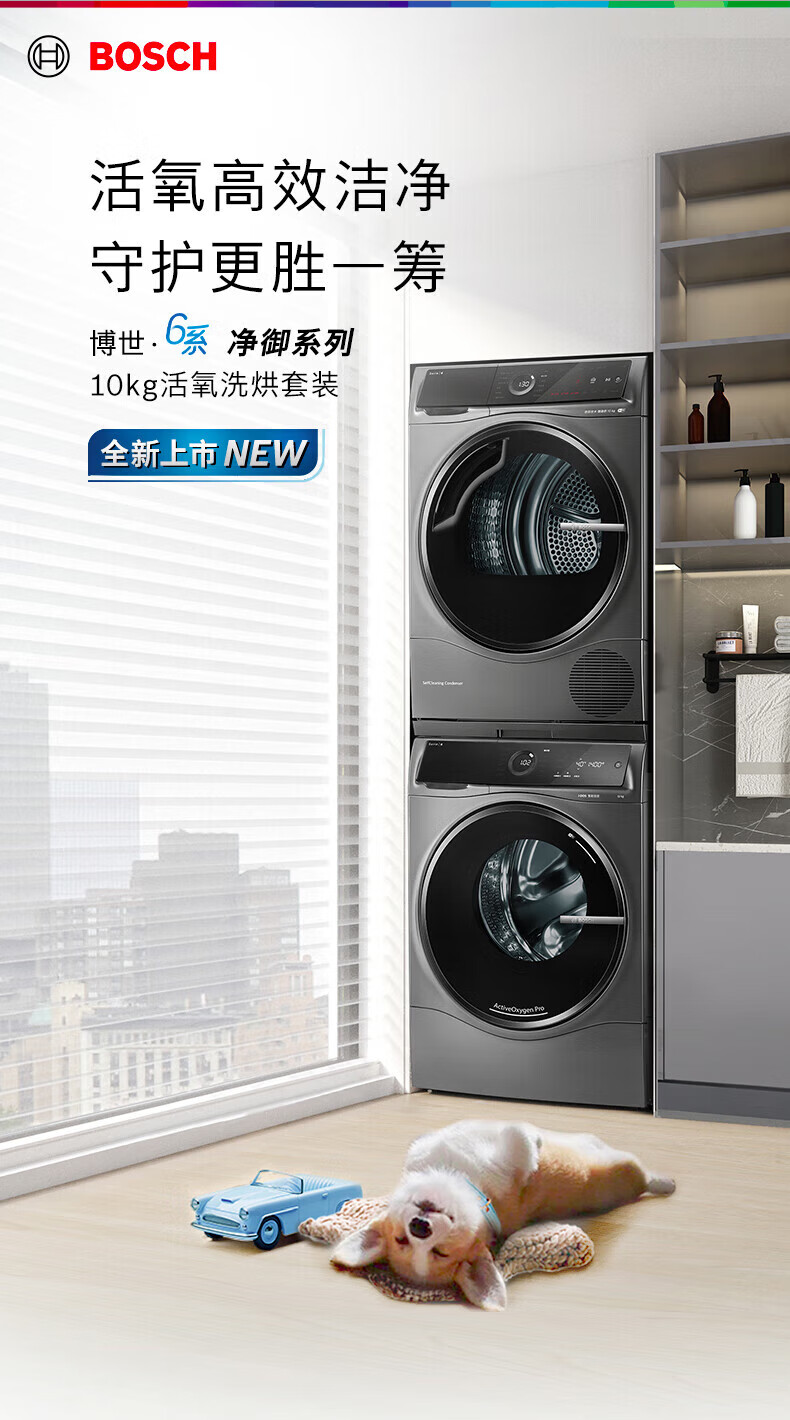 博世(BOSCH)新6系净御活氧洗烘套装10+10KG活氧空气洗除皱祛味热泵低温烘冷凝器自清洁 WGC554C10W+WQC355D10W