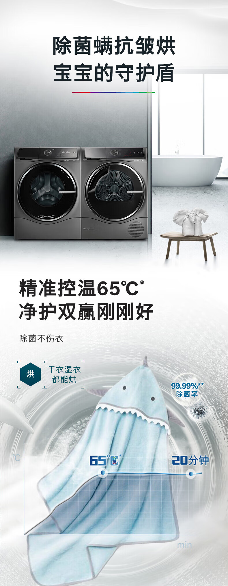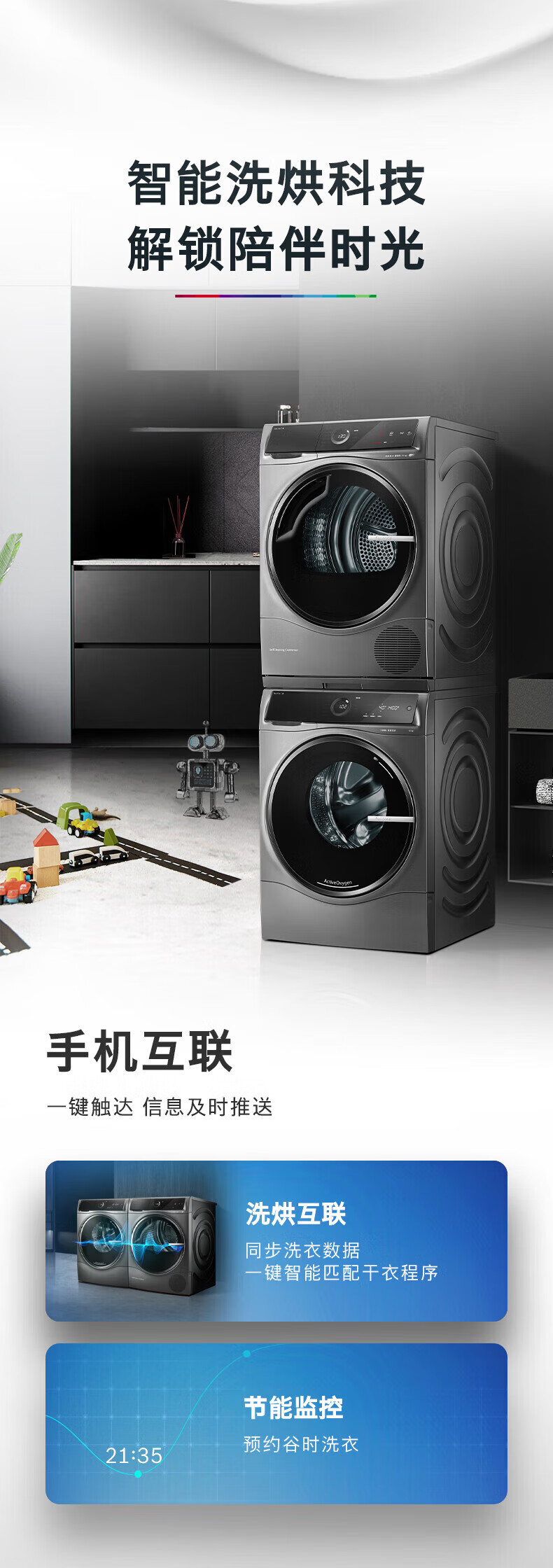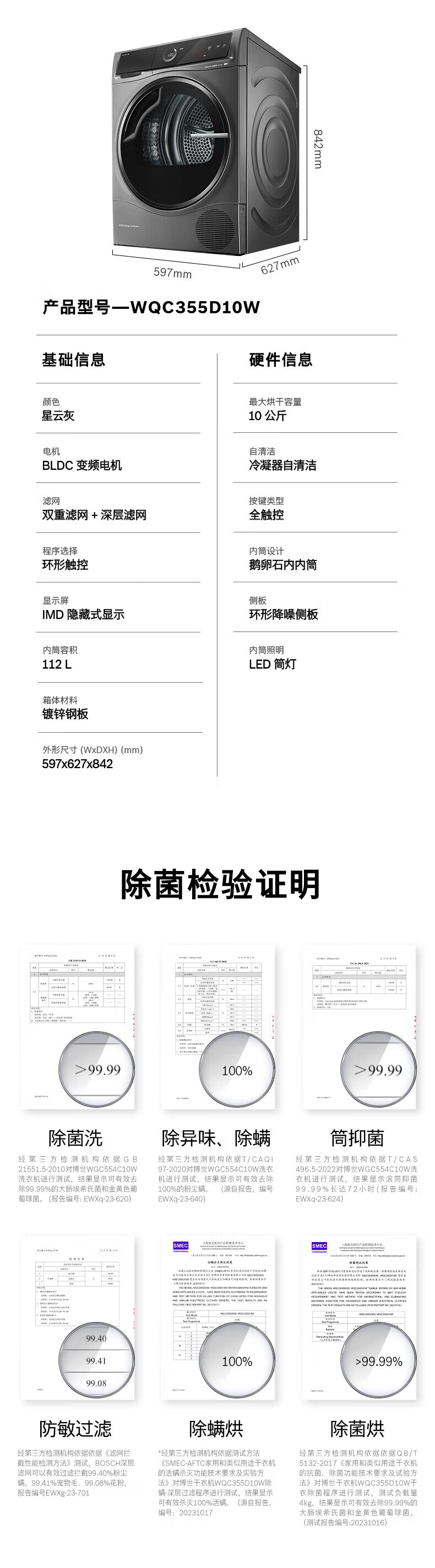 博世(BOSCH)新6系净御活氧洗烘套装10+10KG活氧空气洗除皱祛味热泵低温烘冷凝器自清洁 WGC554C10W+WQC355D10W