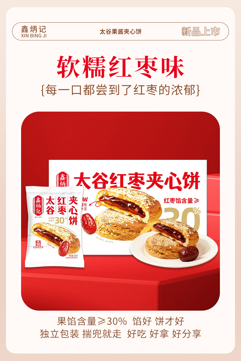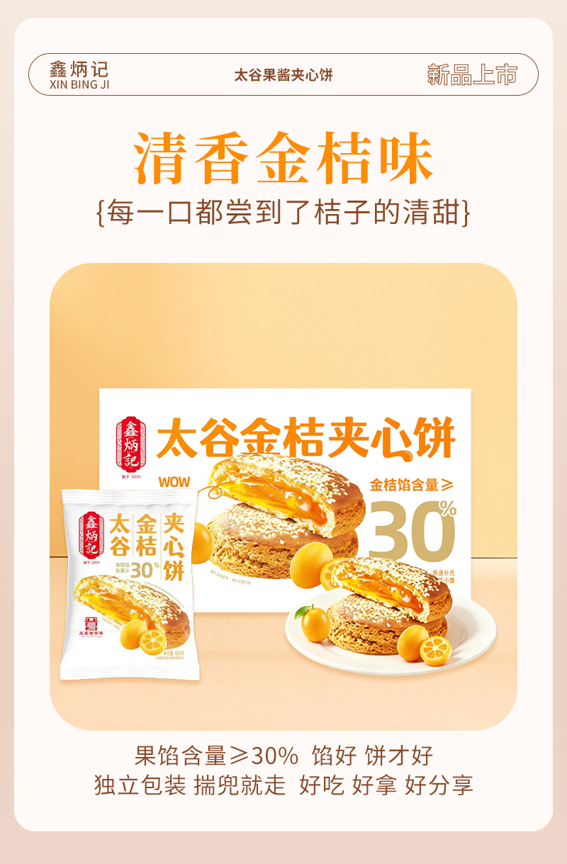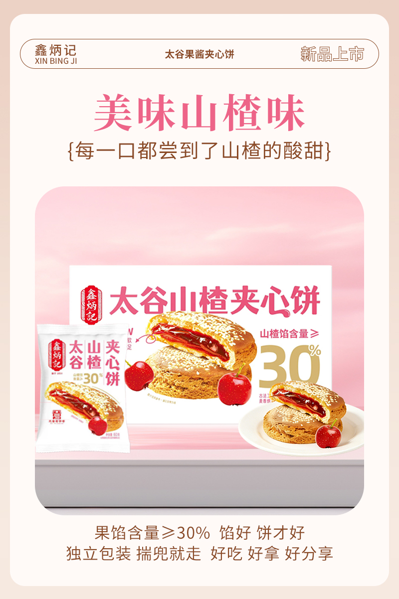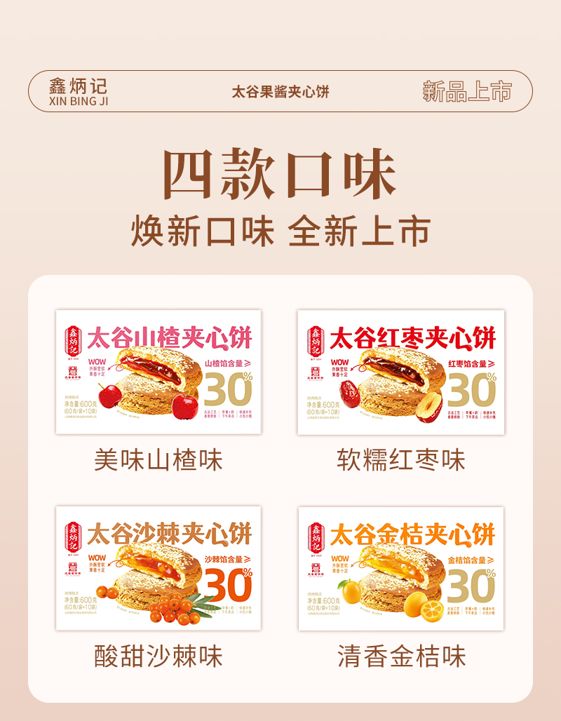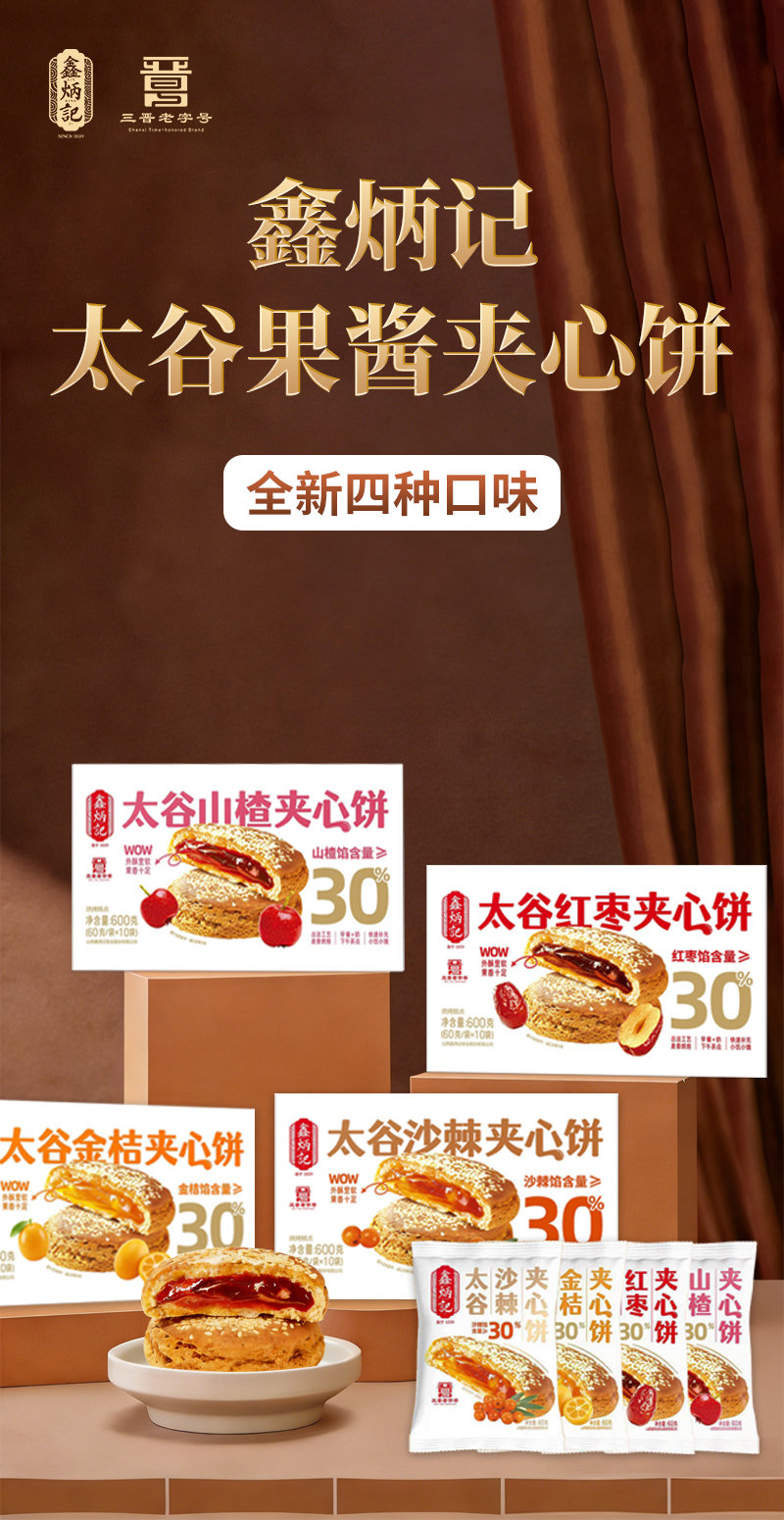 鑫炳记多口味夹心饼山楂/红枣/金桔/沙棘传统糕点美食山西特产
