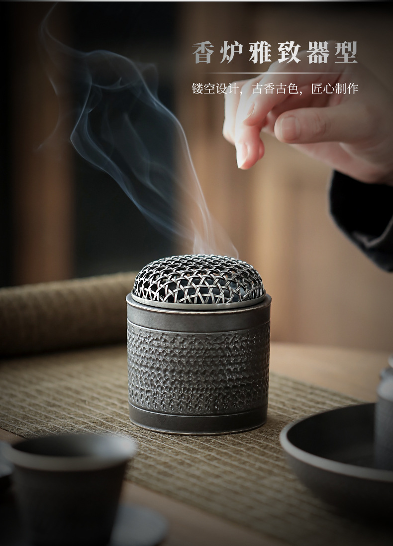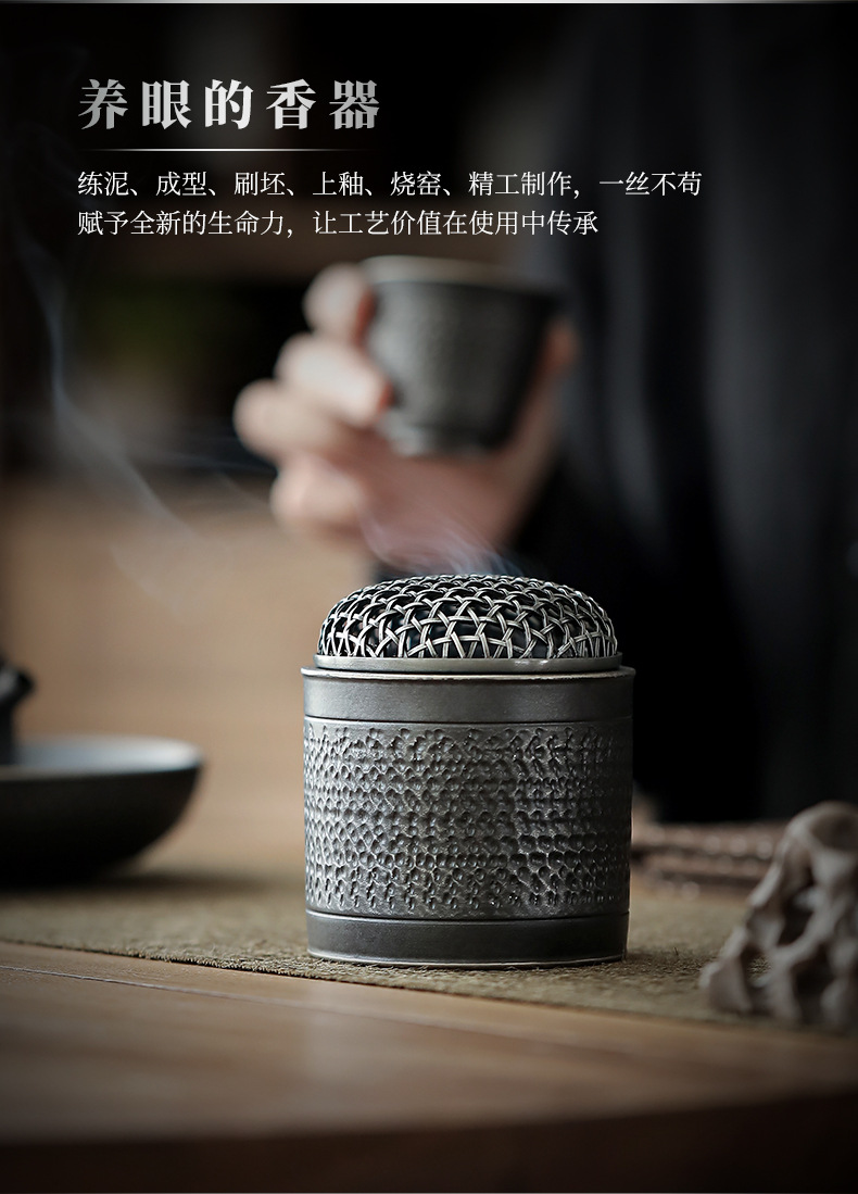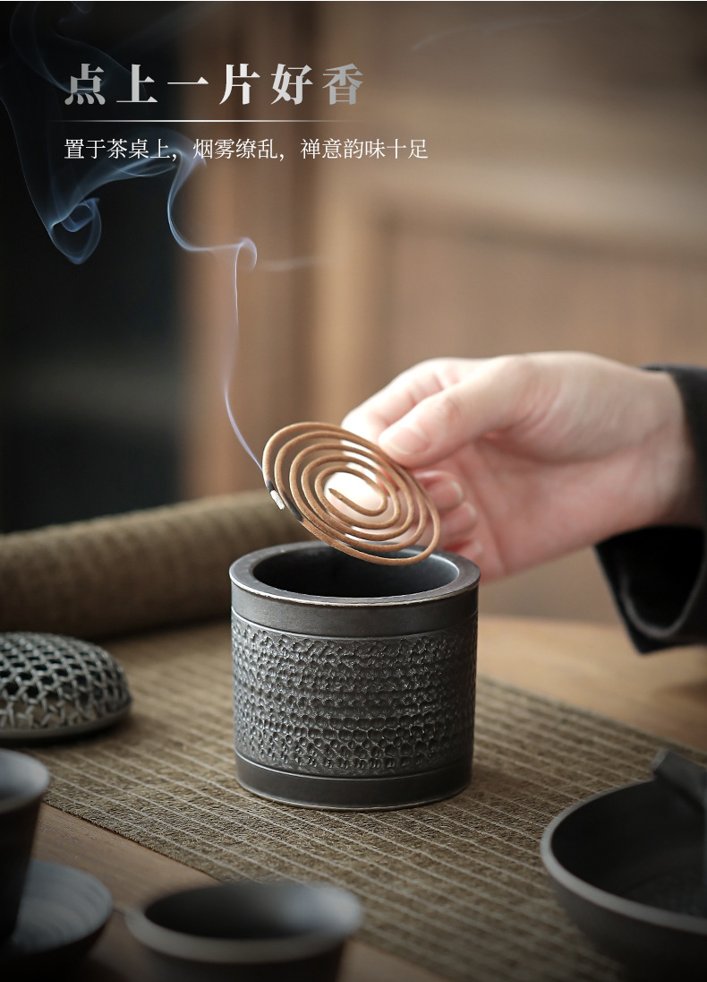 黑玄盘香炉家用室内书房茶道供佛焚陶瓷小香炉居家复古线香香薰炉