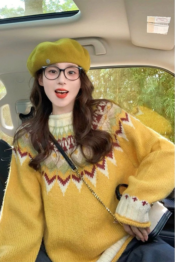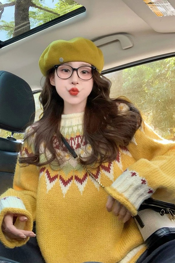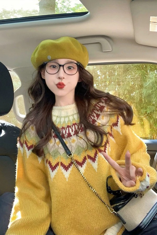 LNNNS 费尔岛提花潮流圆领针织毛衣 21801