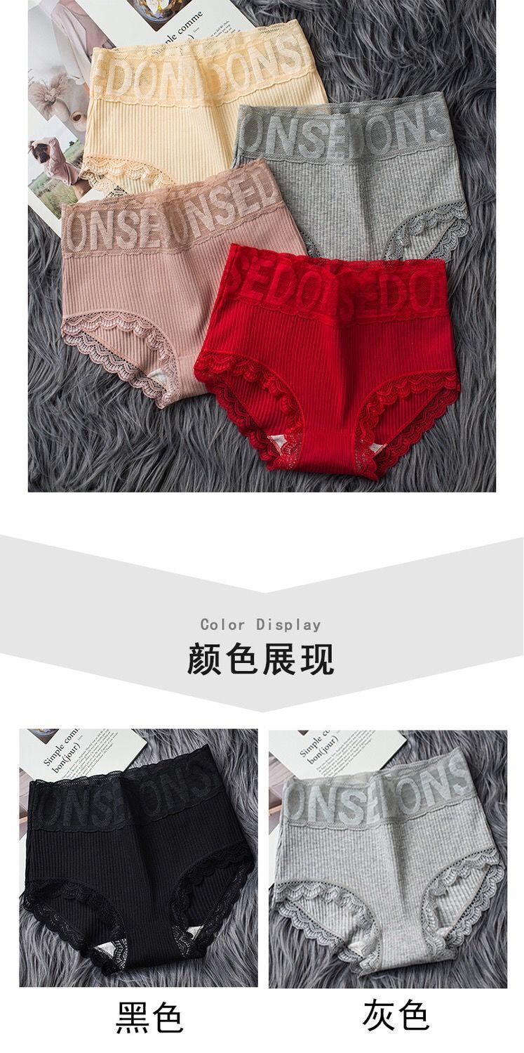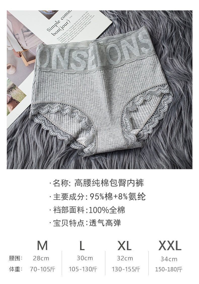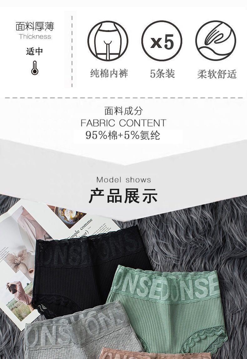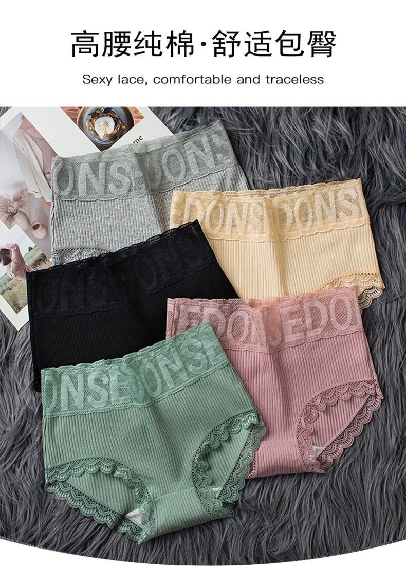 实惠5条装高腰内裤女纯棉大码收腹提臀性感蕾丝边女士三角裤头