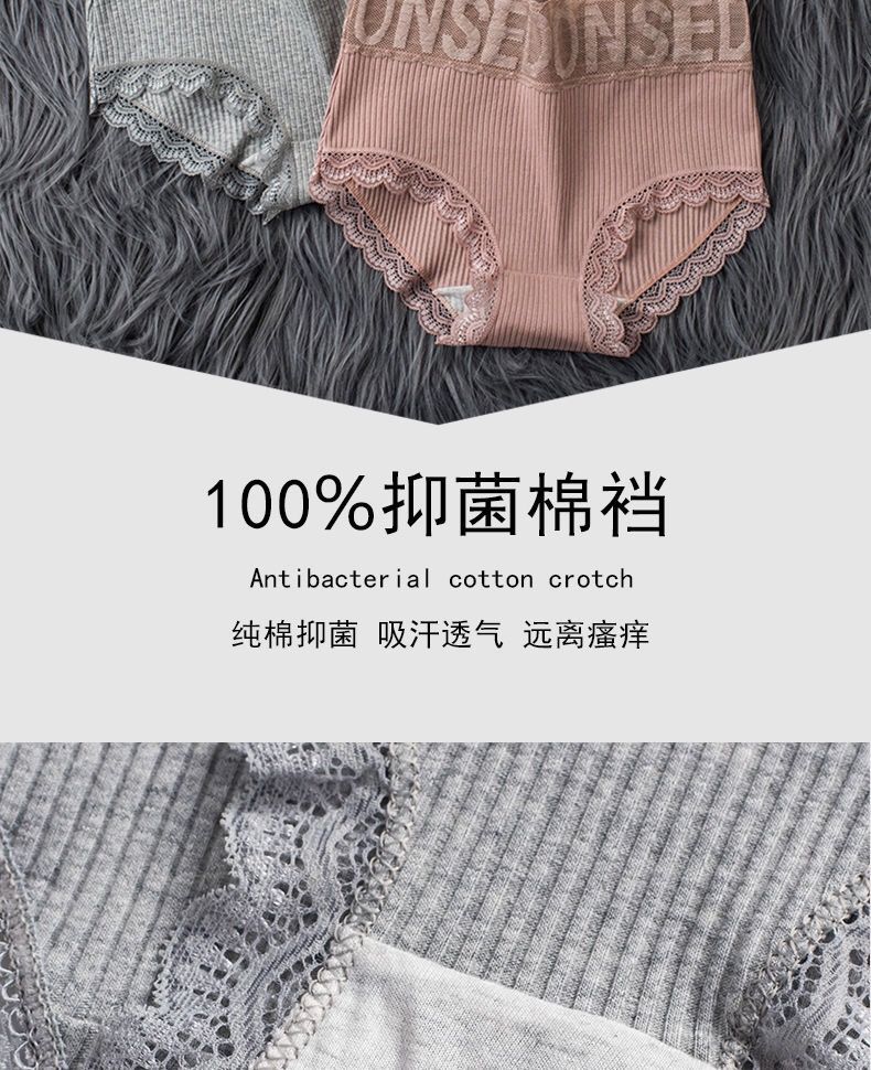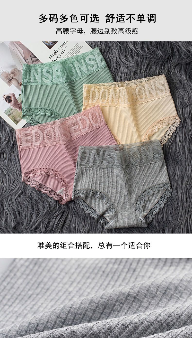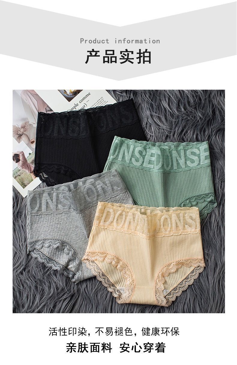 实惠5条装高腰内裤女纯棉大码收腹提臀性感蕾丝边女士三角裤头