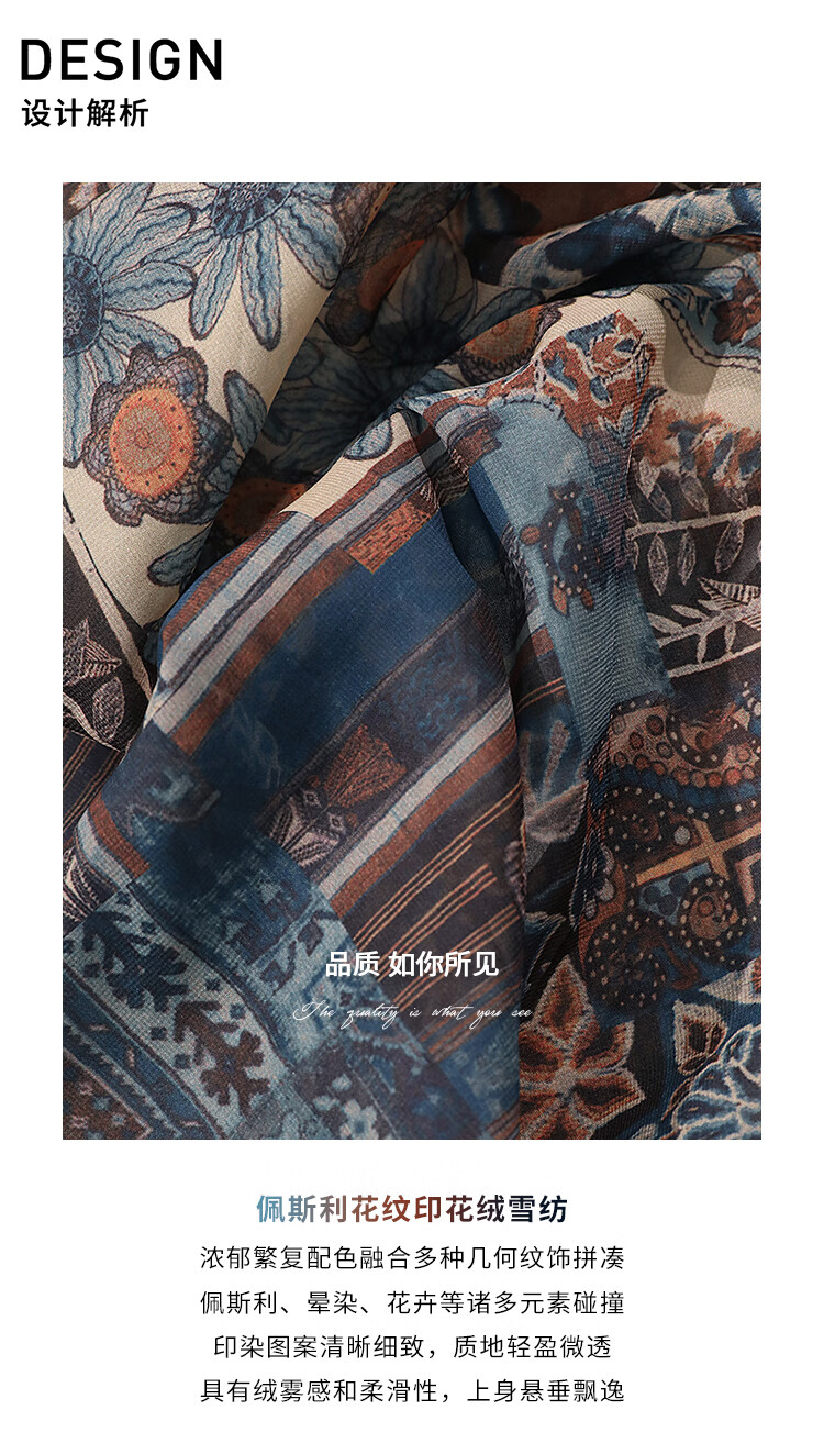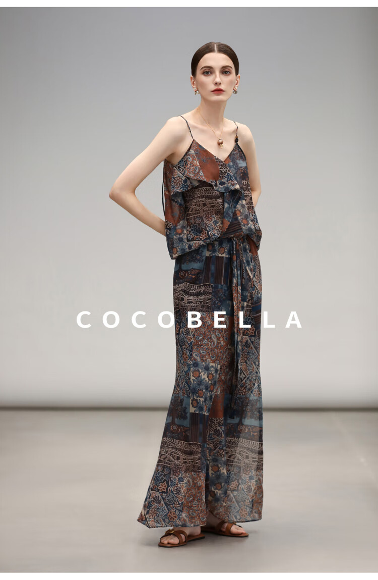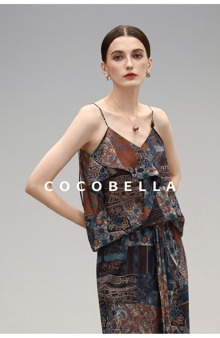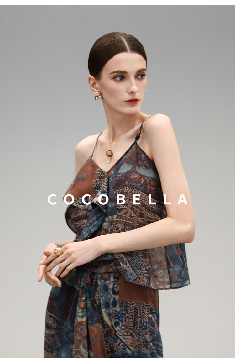 COCOBELLA度假风立体荷叶边印花吊带早秋轻盈绒雪纺背心VT7007