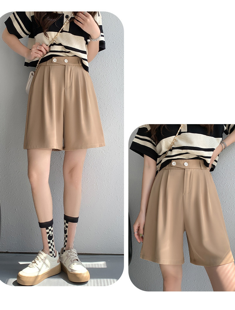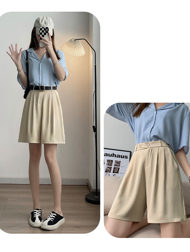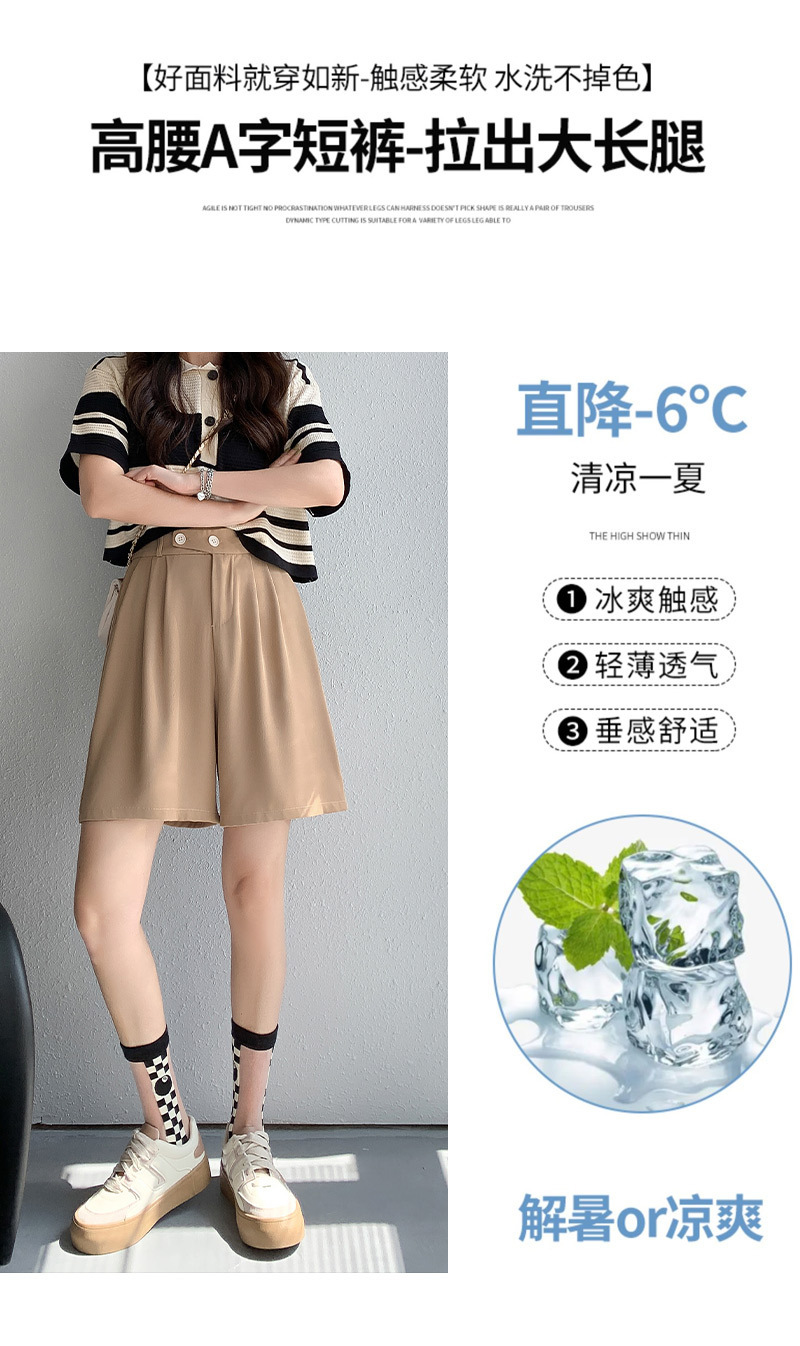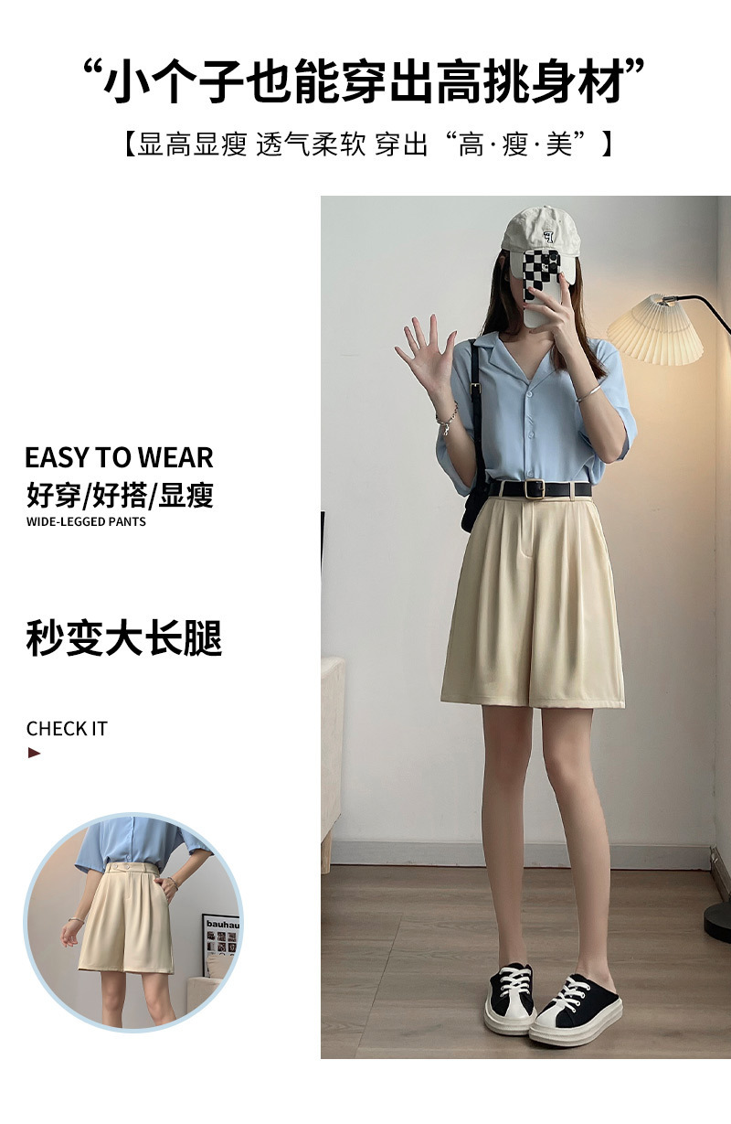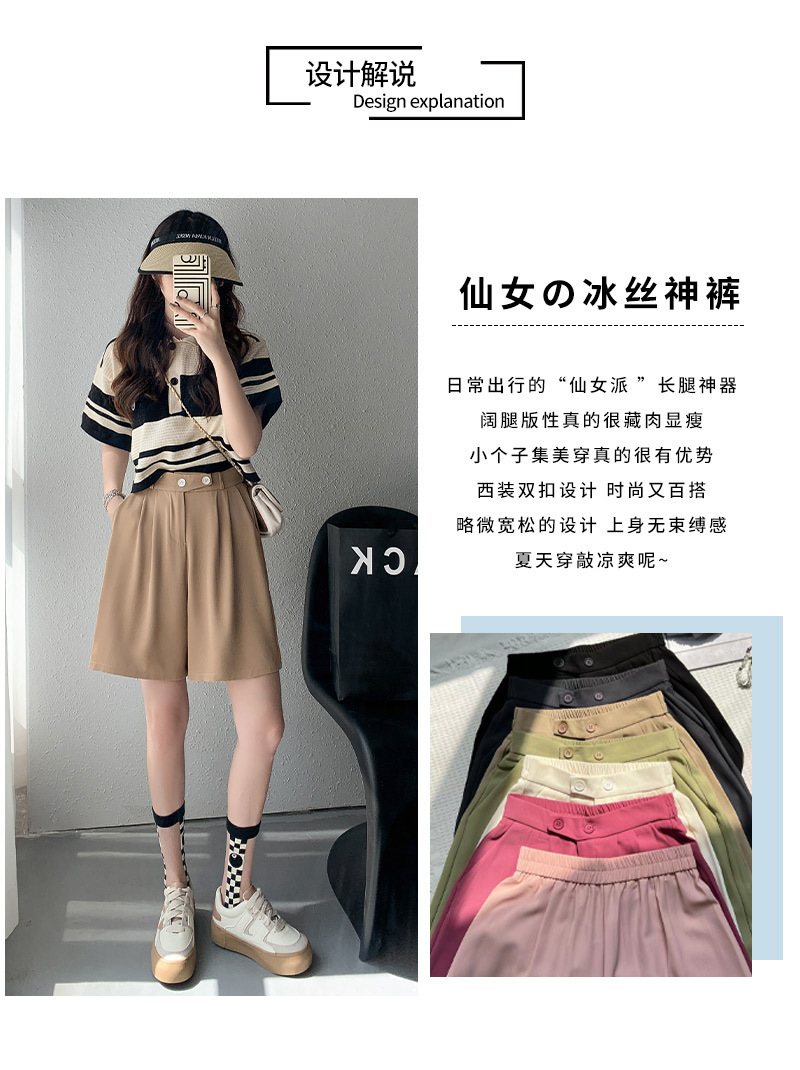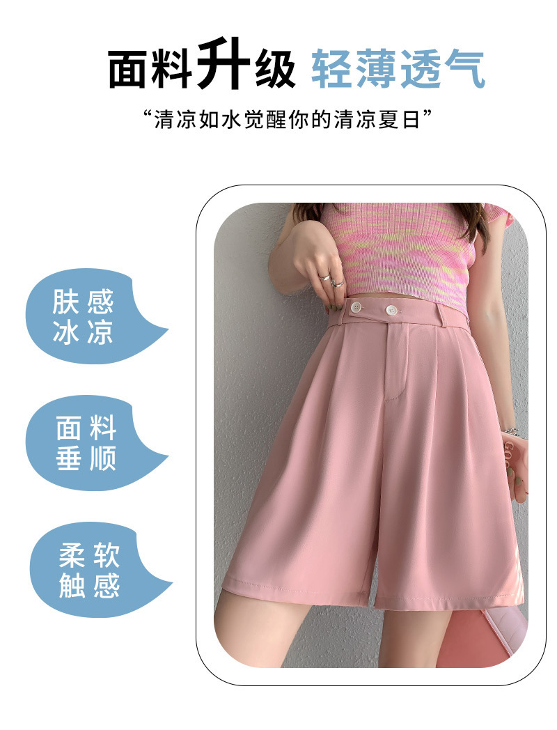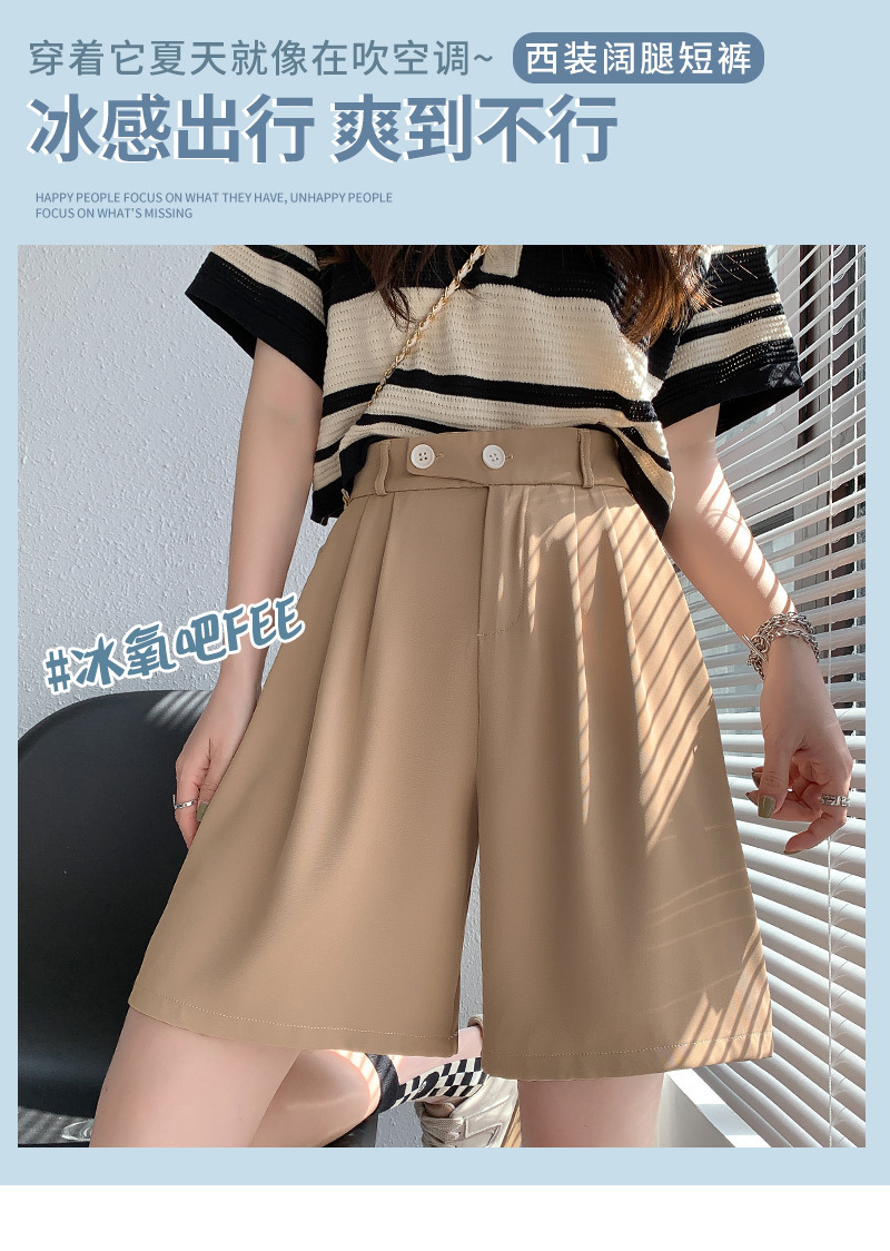 【冰感出行 爽到不行】时尚OL必备!设计感西装短裤,高腰显瘦,阔腿藏肉,秒变大长腿!冰感耐磨面料,百搭双扣,掀起休闲五分裤新风潮!
