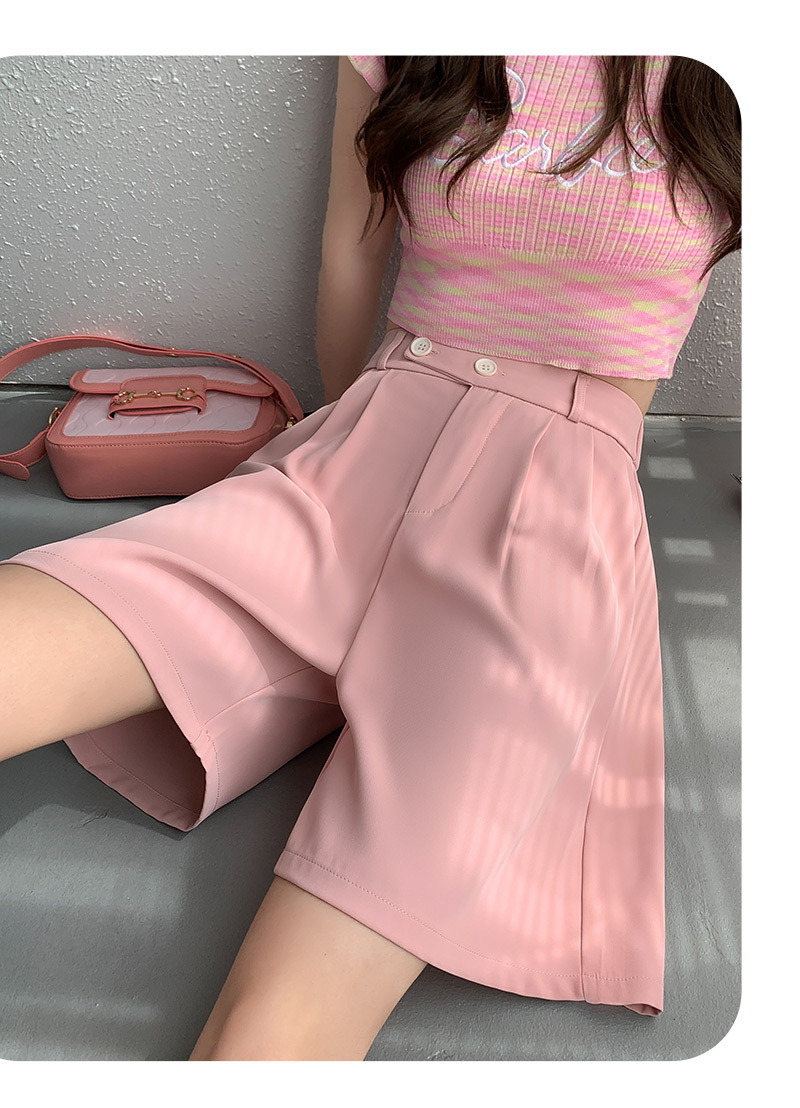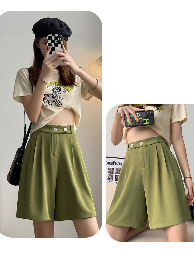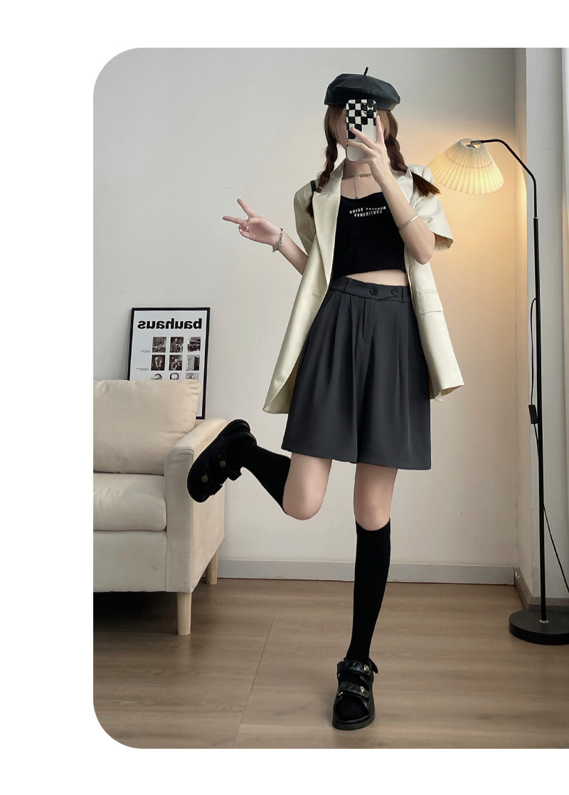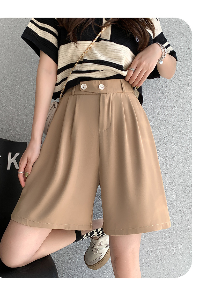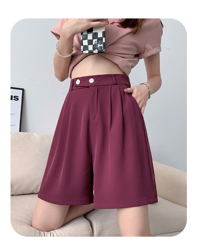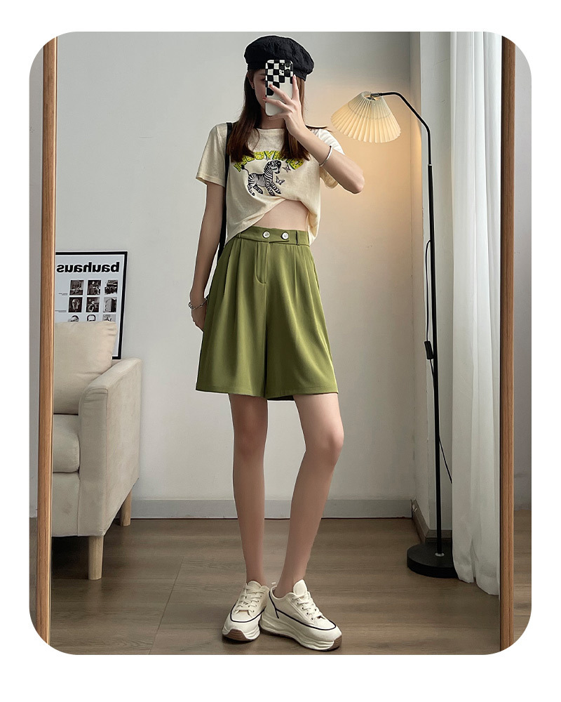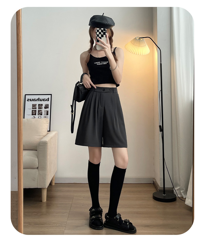 【冰感出行 爽到不行】时尚OL必备!设计感西装短裤,高腰显瘦,阔腿藏肉,秒变大长腿!冰感耐磨面料,百搭双扣,掀起休闲五分裤新风潮!