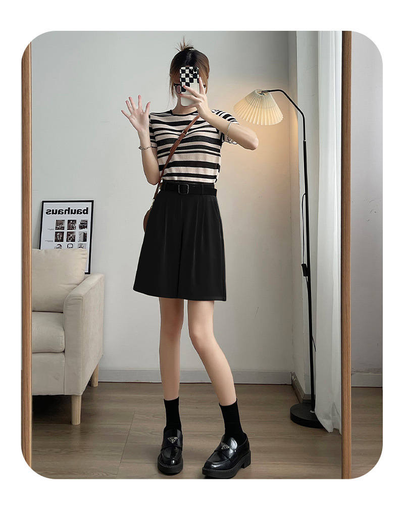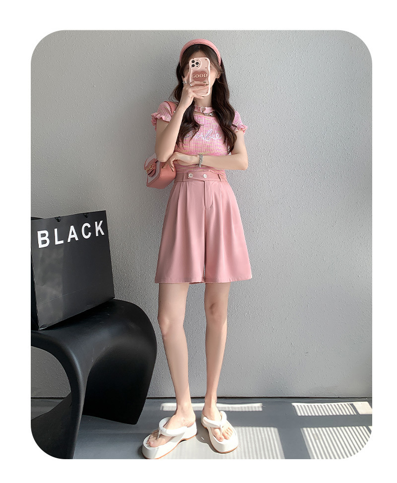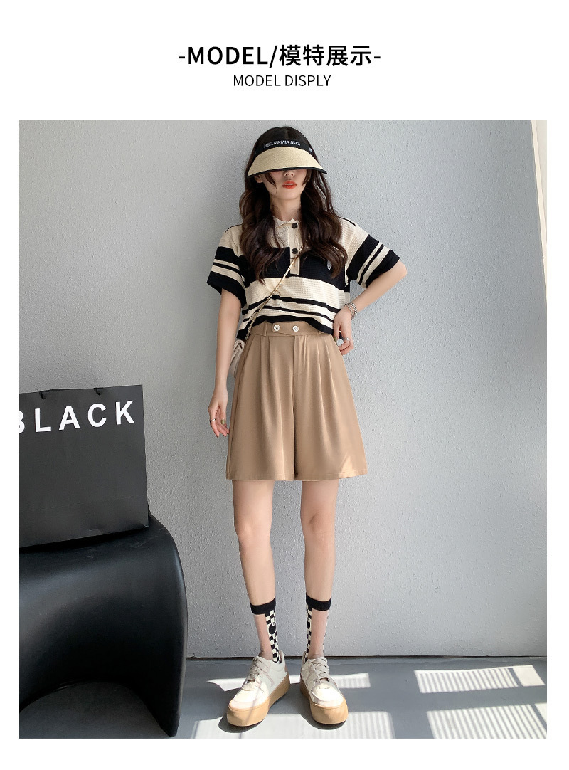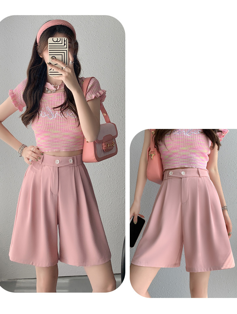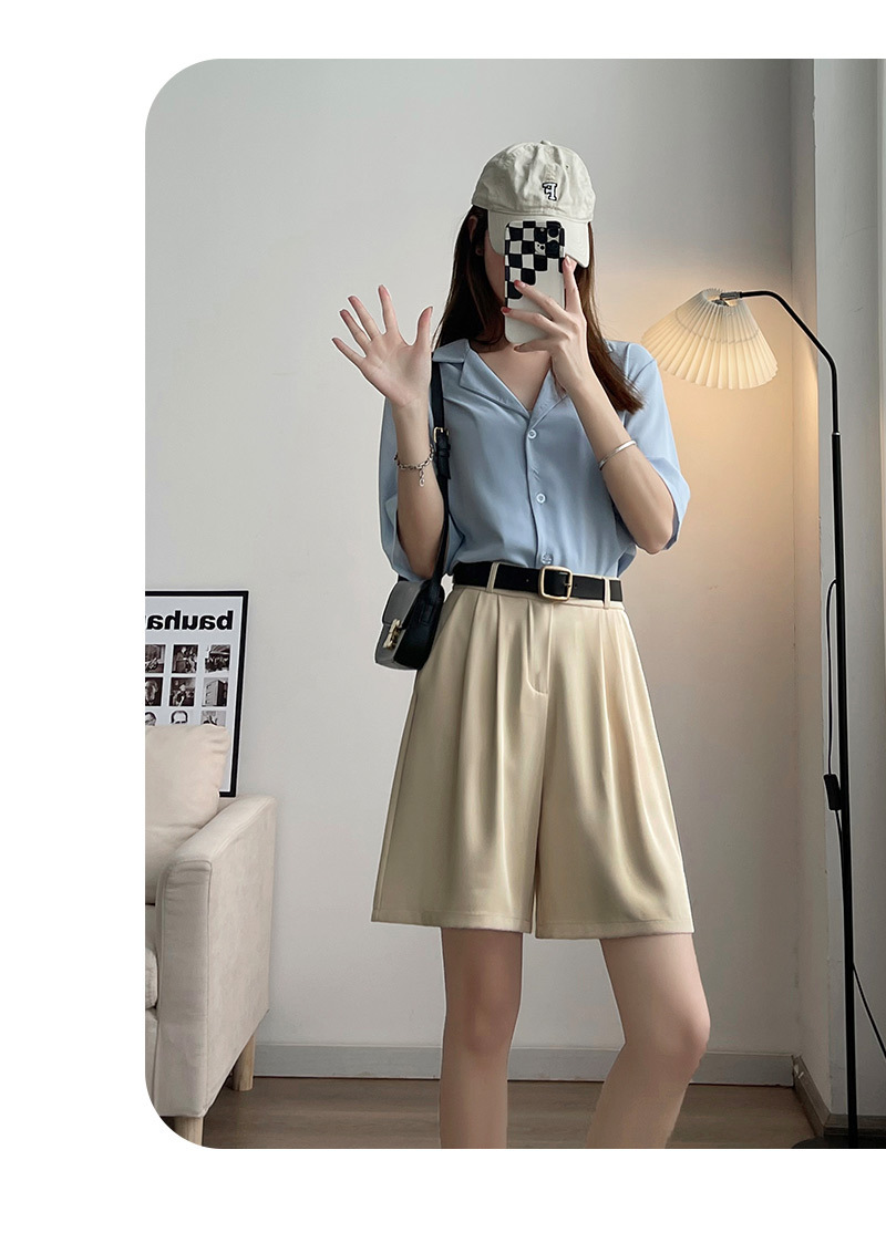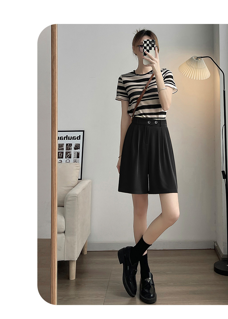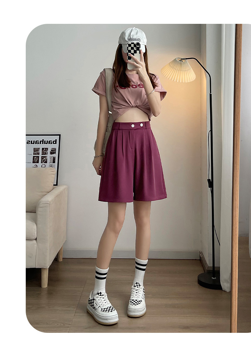【冰感出行 爽到不行】时尚OL必备!设计感西装短裤,高腰显瘦,阔腿藏肉,秒变大长腿!冰感耐磨面料,百搭双扣,掀起休闲五分裤新风潮!