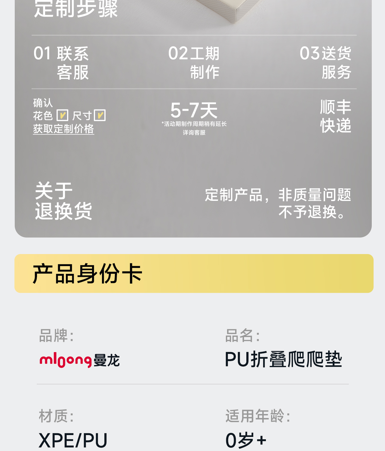 【社群限时特惠】mloong曼龙XPE婴儿爬爬垫PU加厚宝宝爬行垫客厅家用折叠