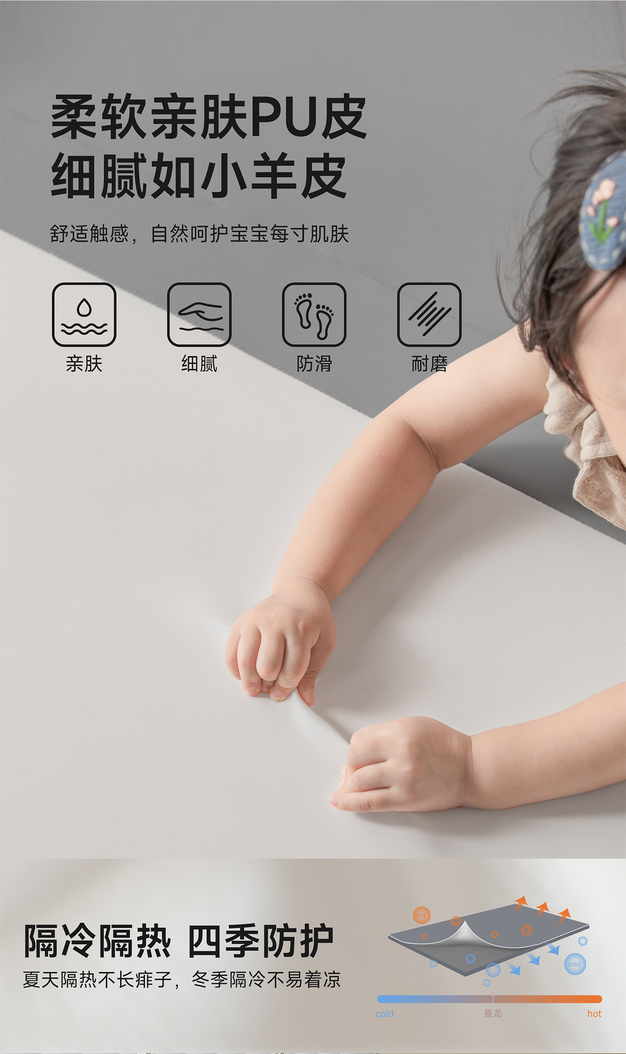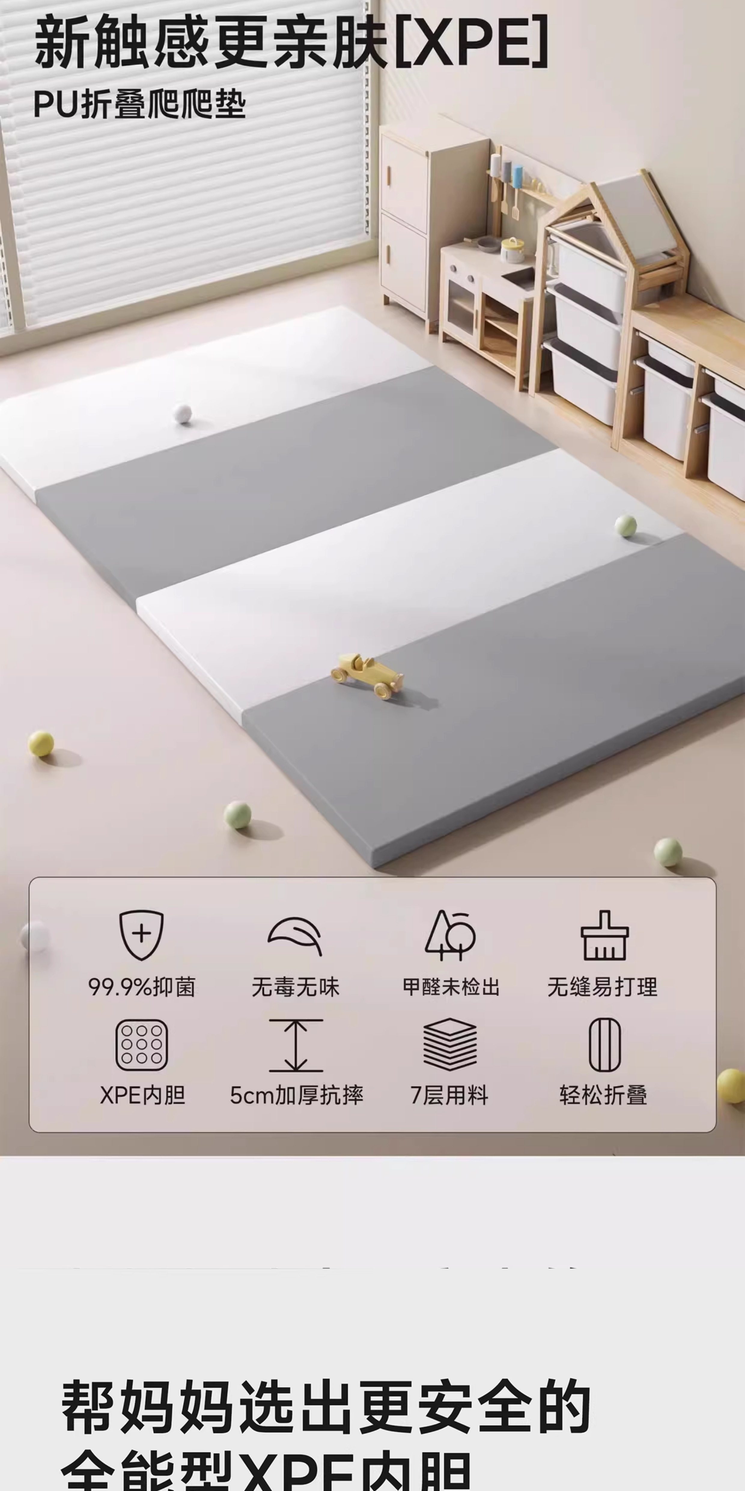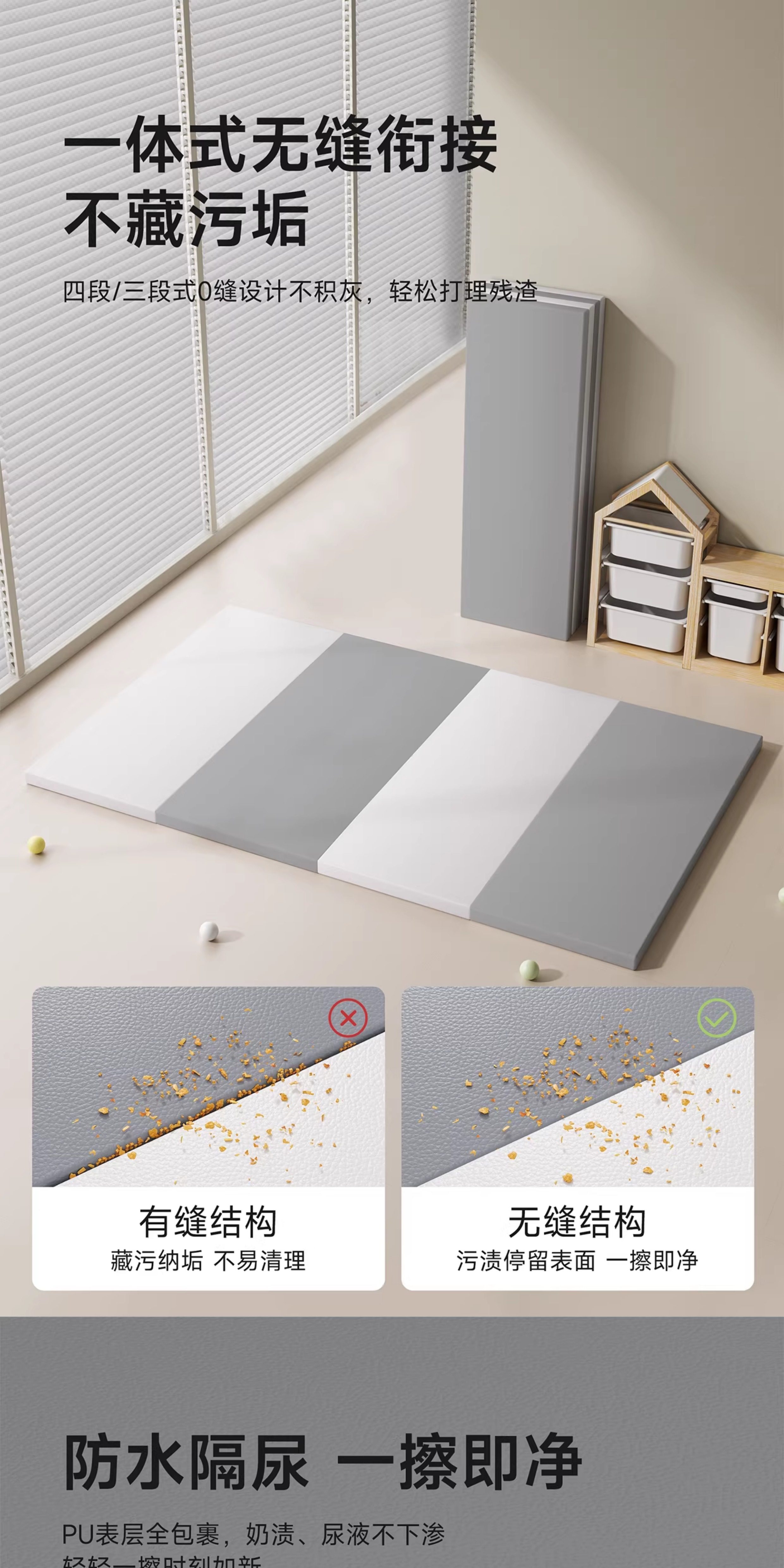 【社群限时特价】mloong曼龙XPE婴儿爬爬垫PU加厚宝宝爬行垫客厅家用折叠