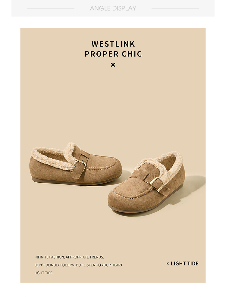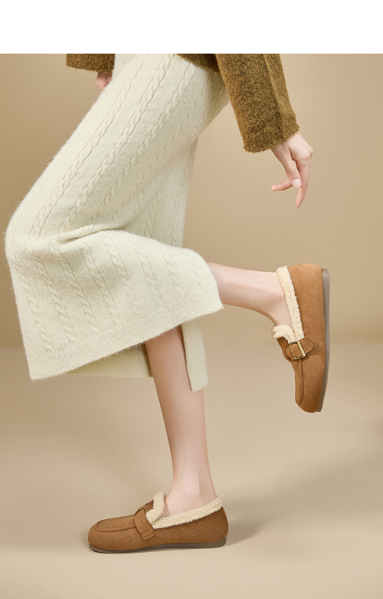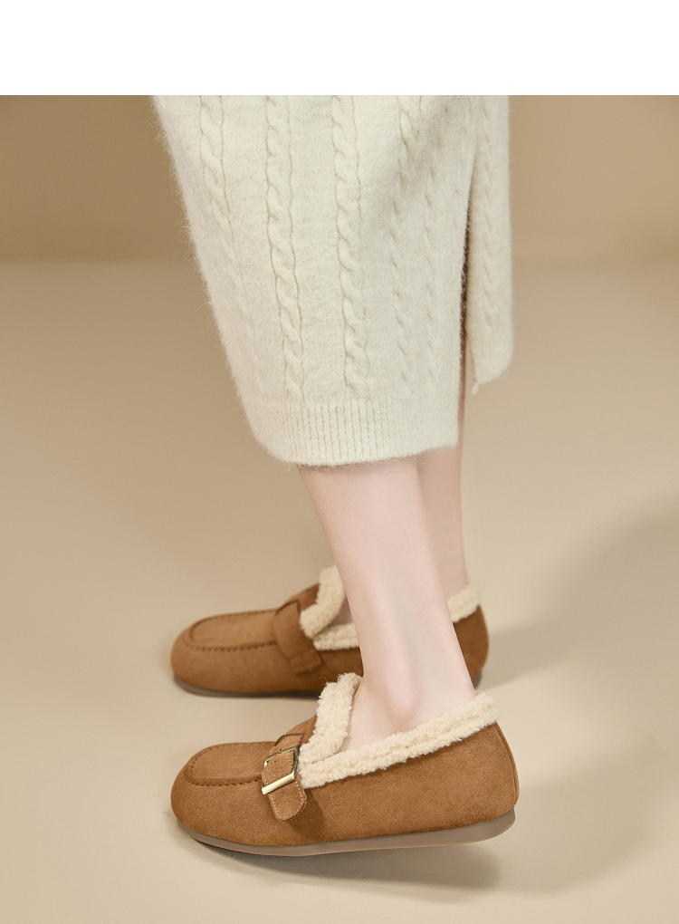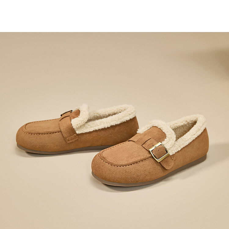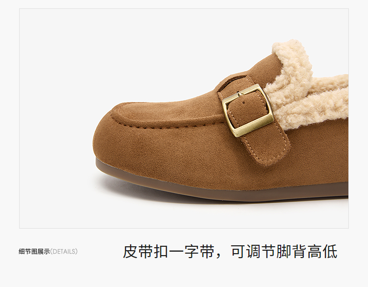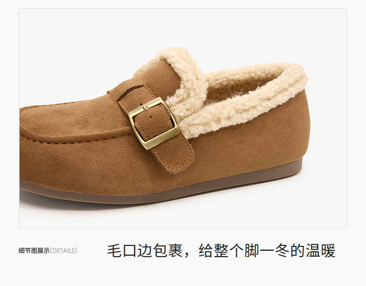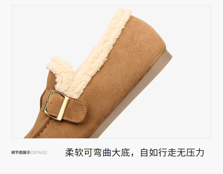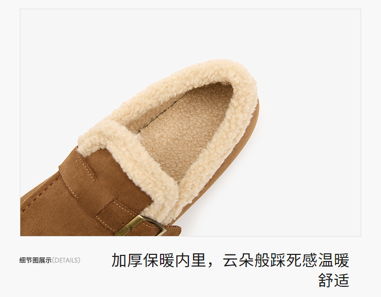 西遇毛毛勃肯鞋女新款冬季加厚保暖雪地靴棉鞋平底加绒乐福鞋V2257290