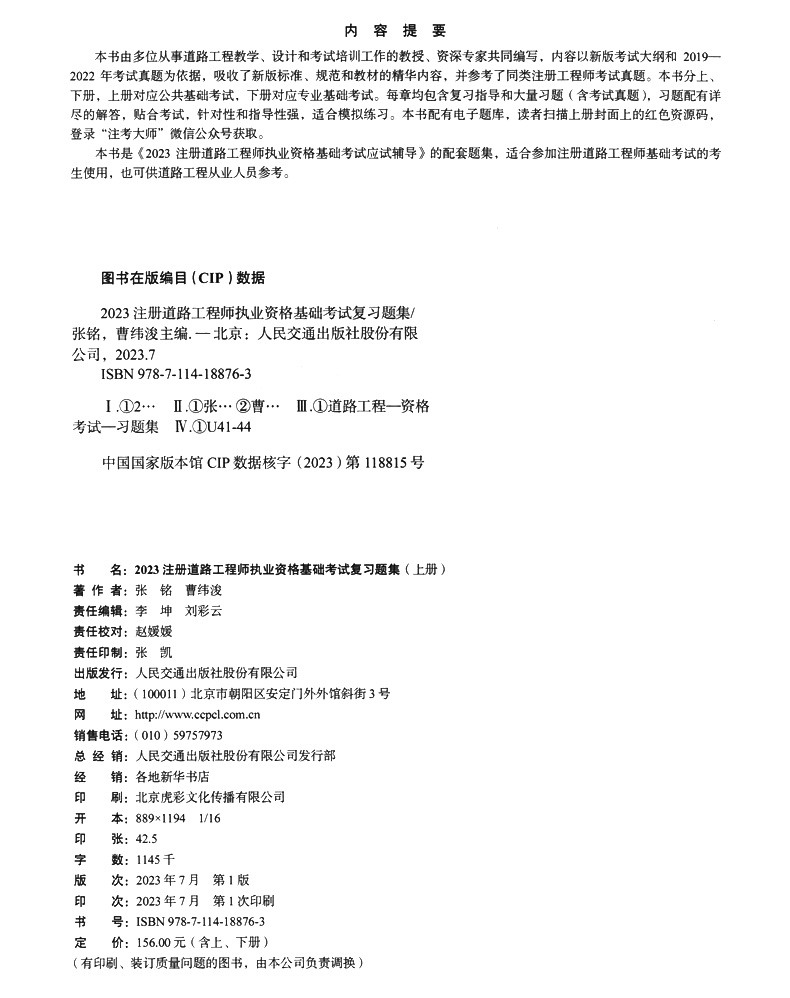 书名:2023注册道路工程师执业资格基础考试复习题集