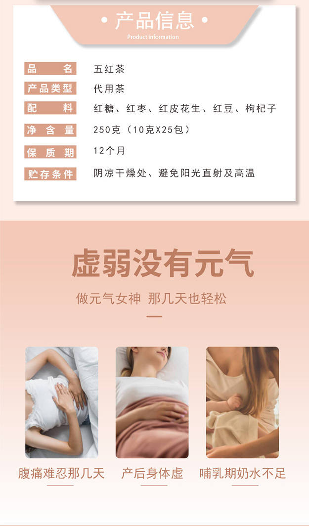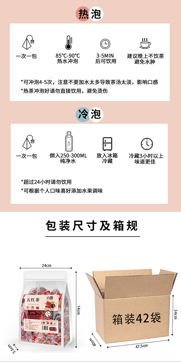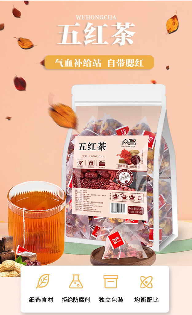 五红茶小包量贩三角包红糖枸杞红枣红皮花生红豆组合茶10g/50小包