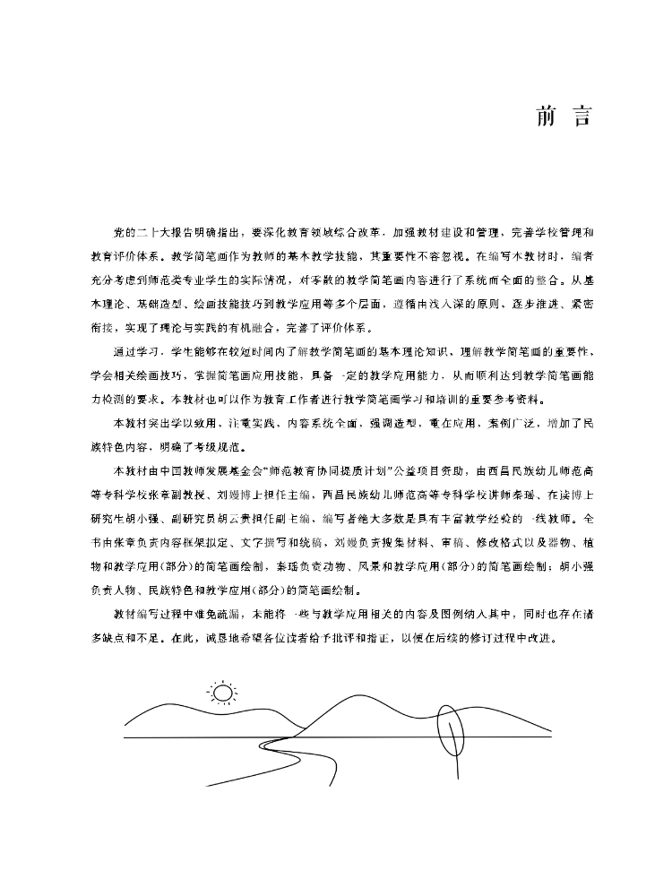 本书主要特点:实用性强,注重实践,学以致用,为教师提供适用的学习和参考资源;内容简单易懂,适合零基础以及参加等级考试的学生;融入地方特色,增强了内容的独特性和趣味性;案例丰富多样,为读者提供了丰富的参考资源,引导读者发挥创意,将简笔画应用于更广泛的场景中。