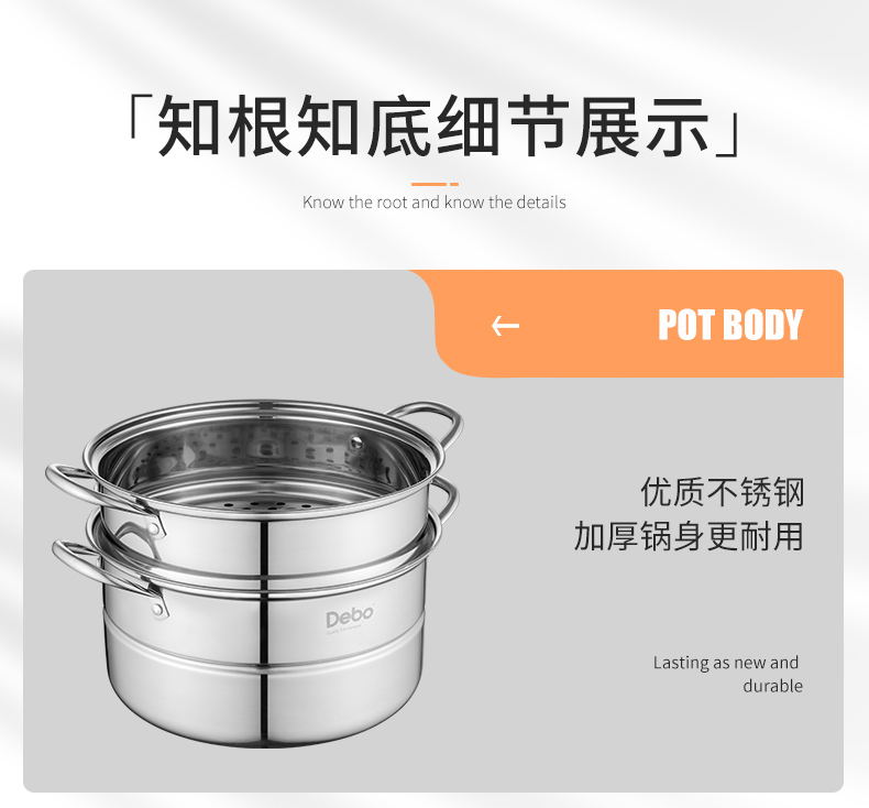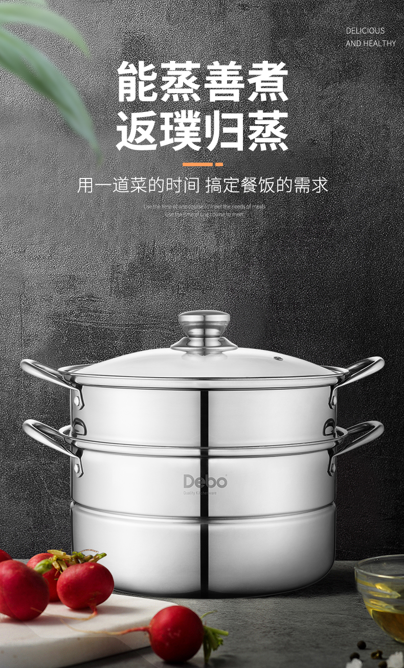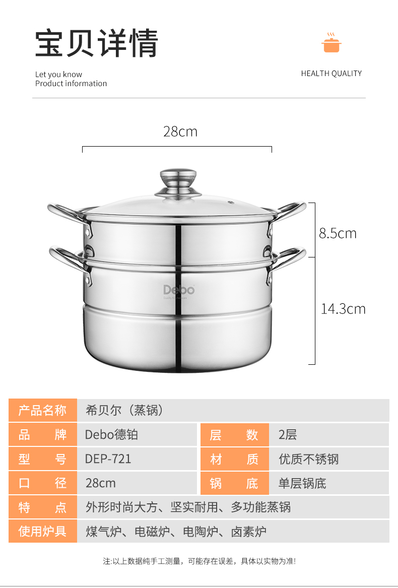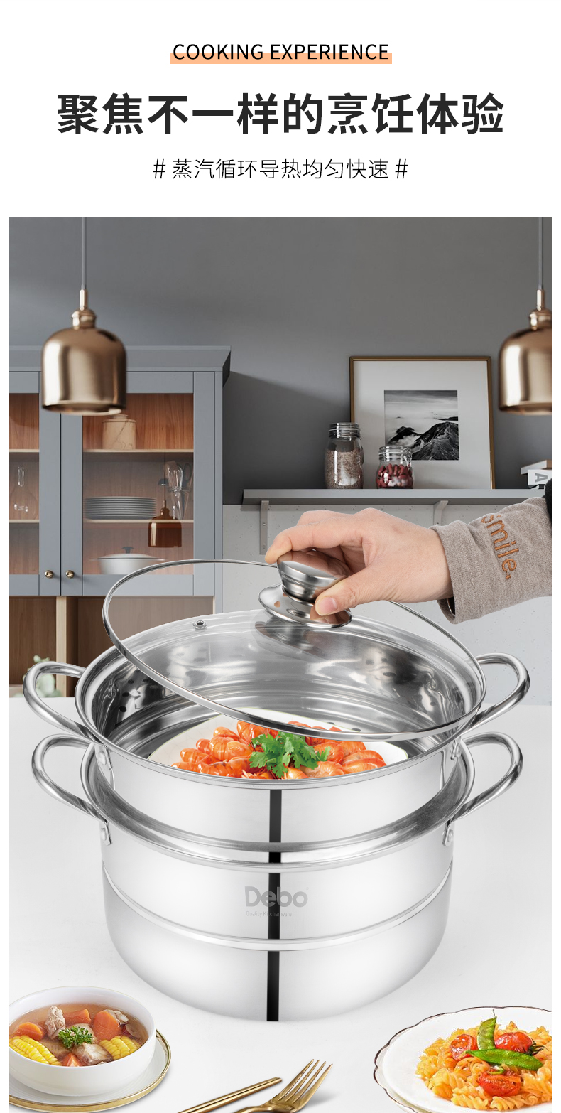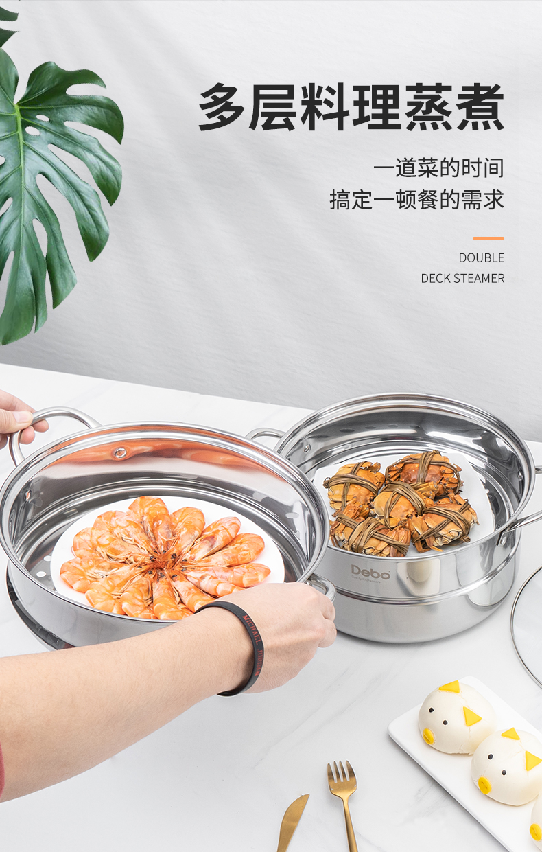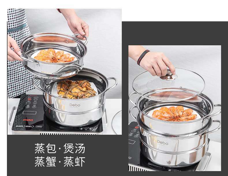Debo德铂希贝尔蒸锅不锈钢家用蒸笼多功能大容量煮炖蒸汽电磁炉锅
