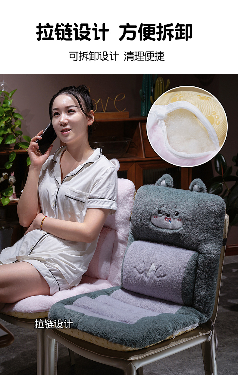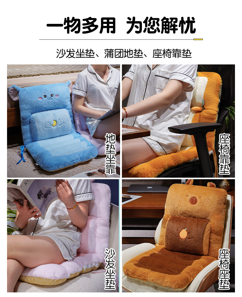 自然醒卡通兔毛护腰横条连体坐垫QYL