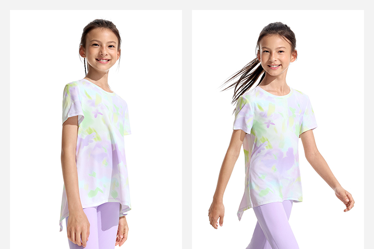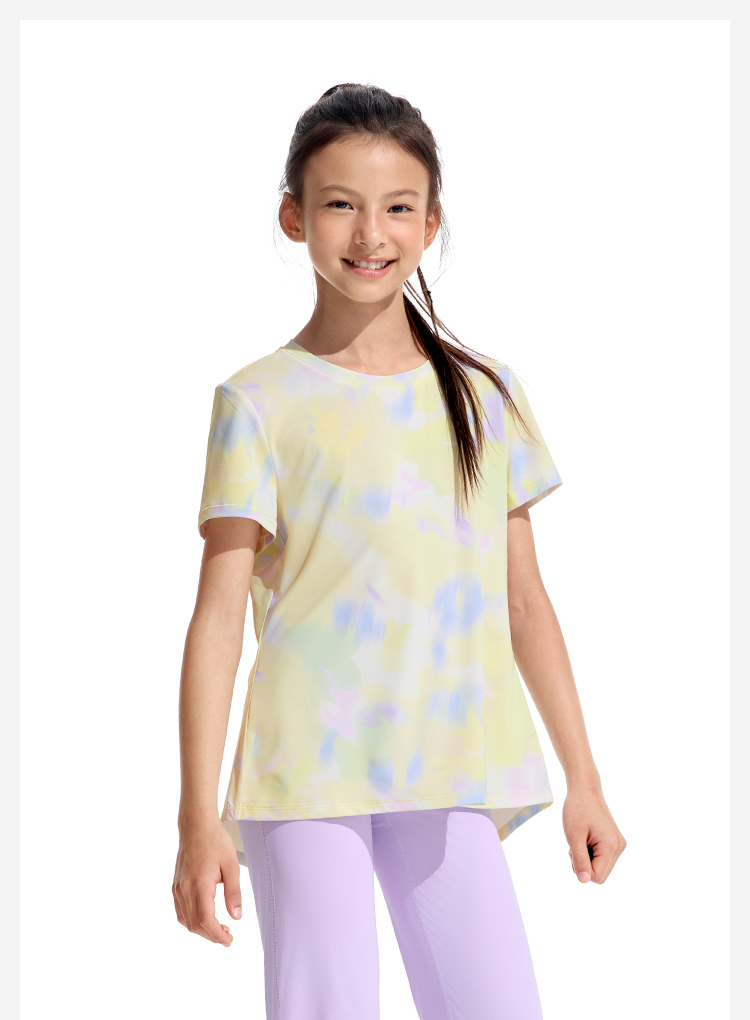 moodytiger女童夏季印花个性背开叉速干短袖T恤欧若风32210103