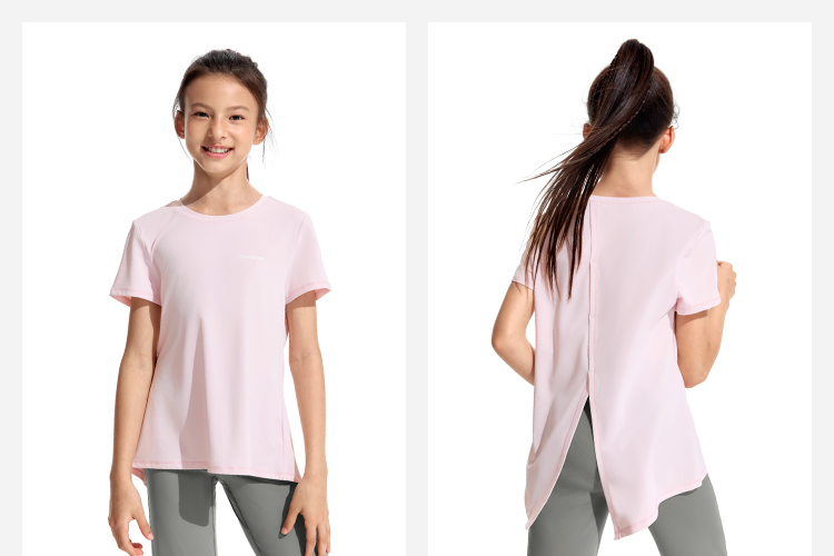 【专属】(速干)moodytiger儿童T恤24夏新款女童户外运动圆领宽松透气速干小细格短袖上衣42210122