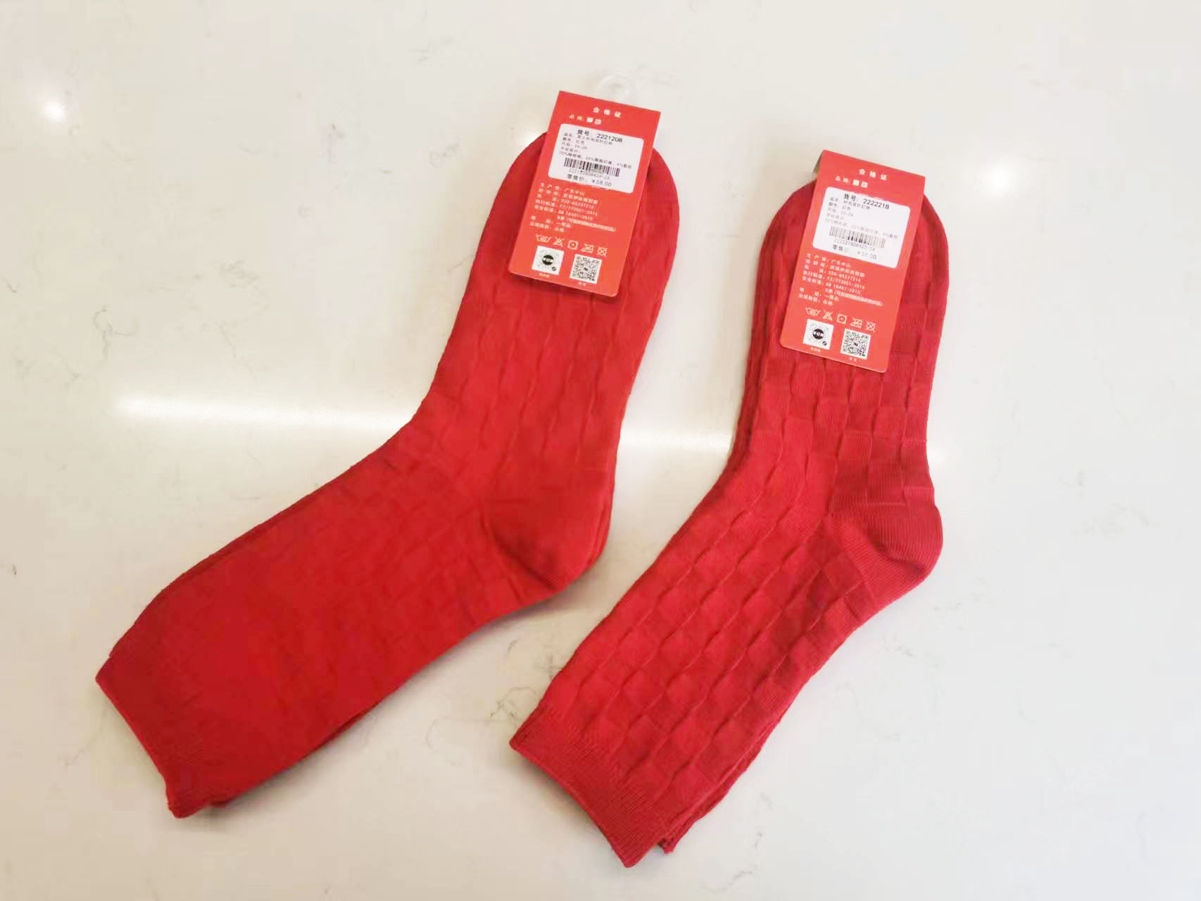 男/女丨男士女士双针鸿运袜大红色袜子[2双装 6双6折 2221208/2222218]