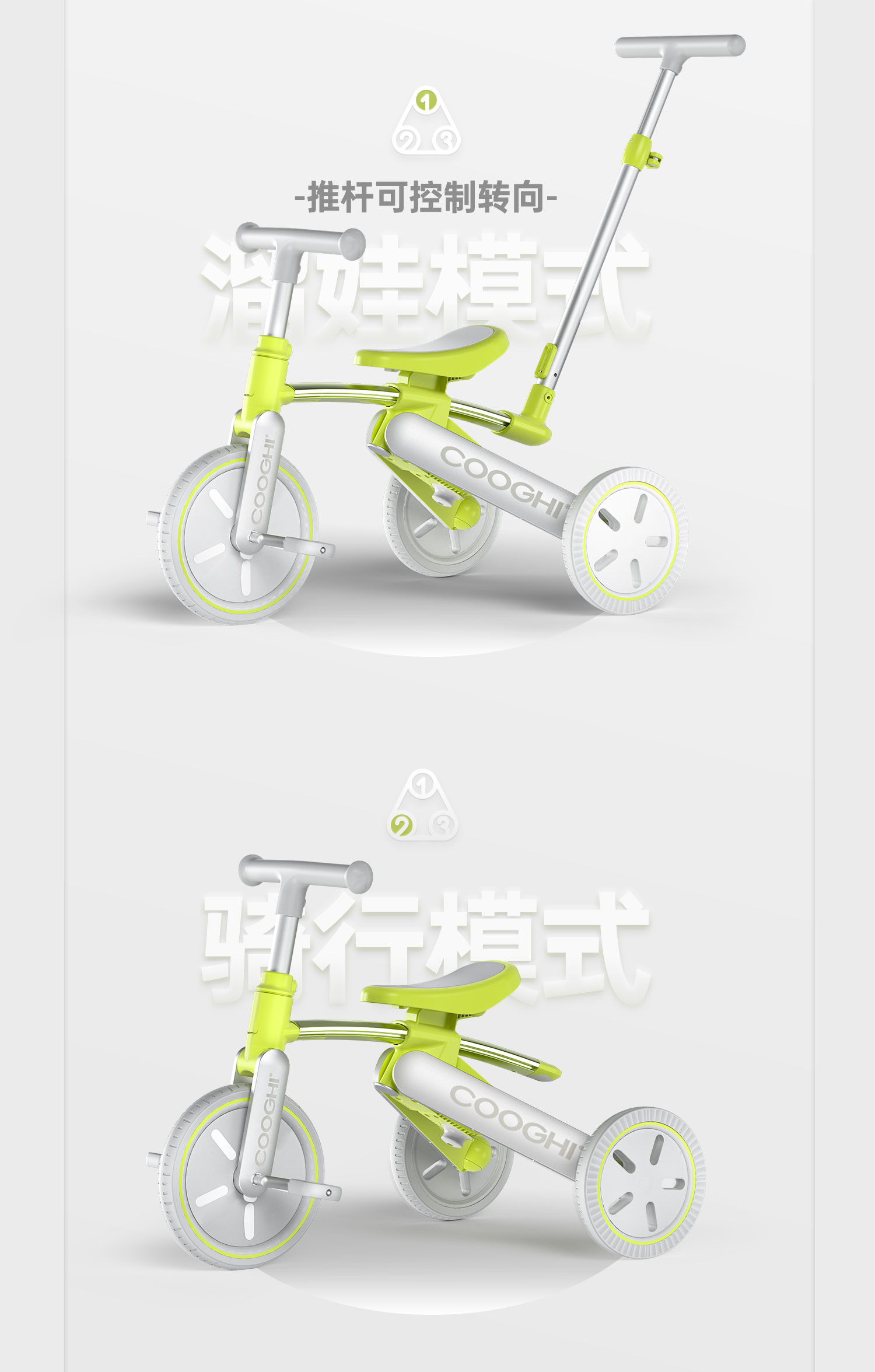 COOGHI酷骑儿童三轮车脚踏车1-5岁自行车轻便宝宝推车溜遛娃神器(厂家发货)