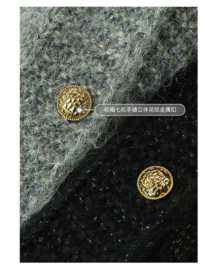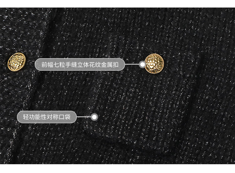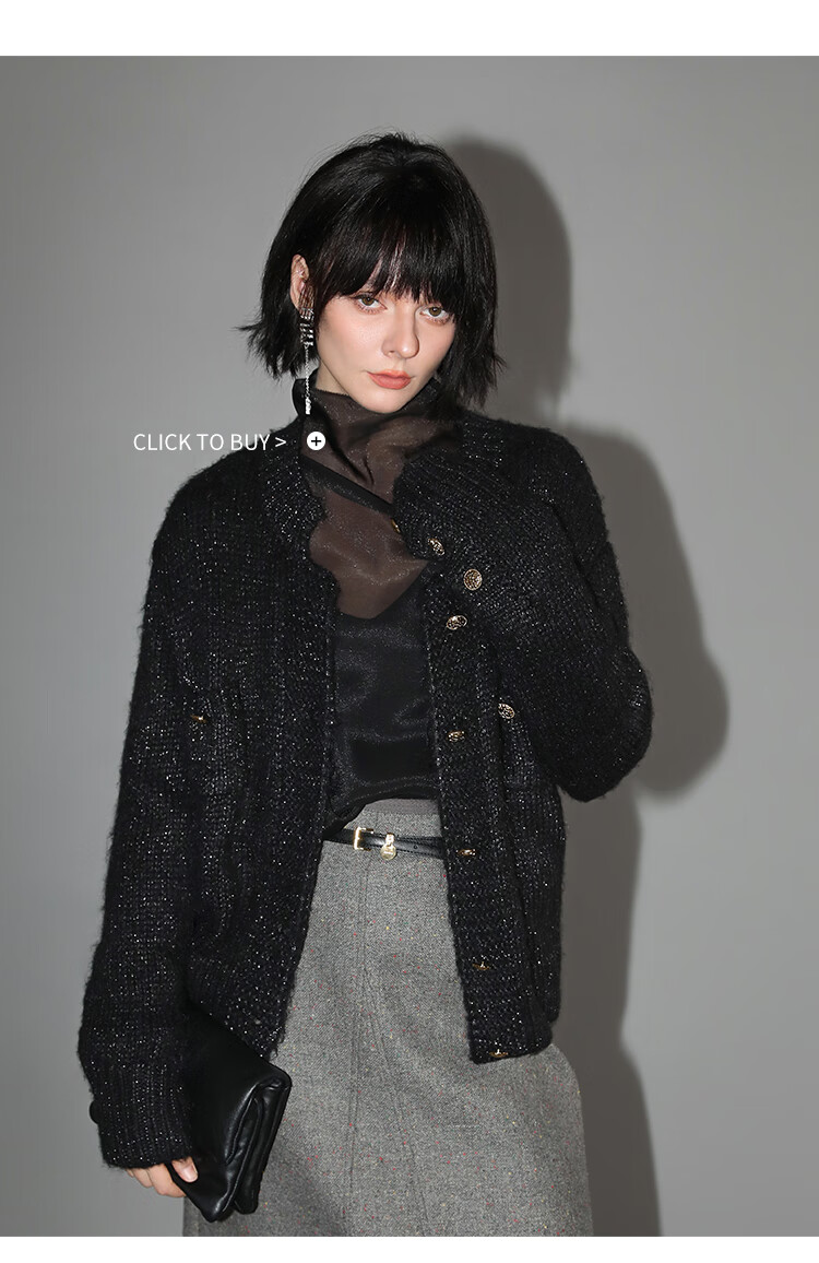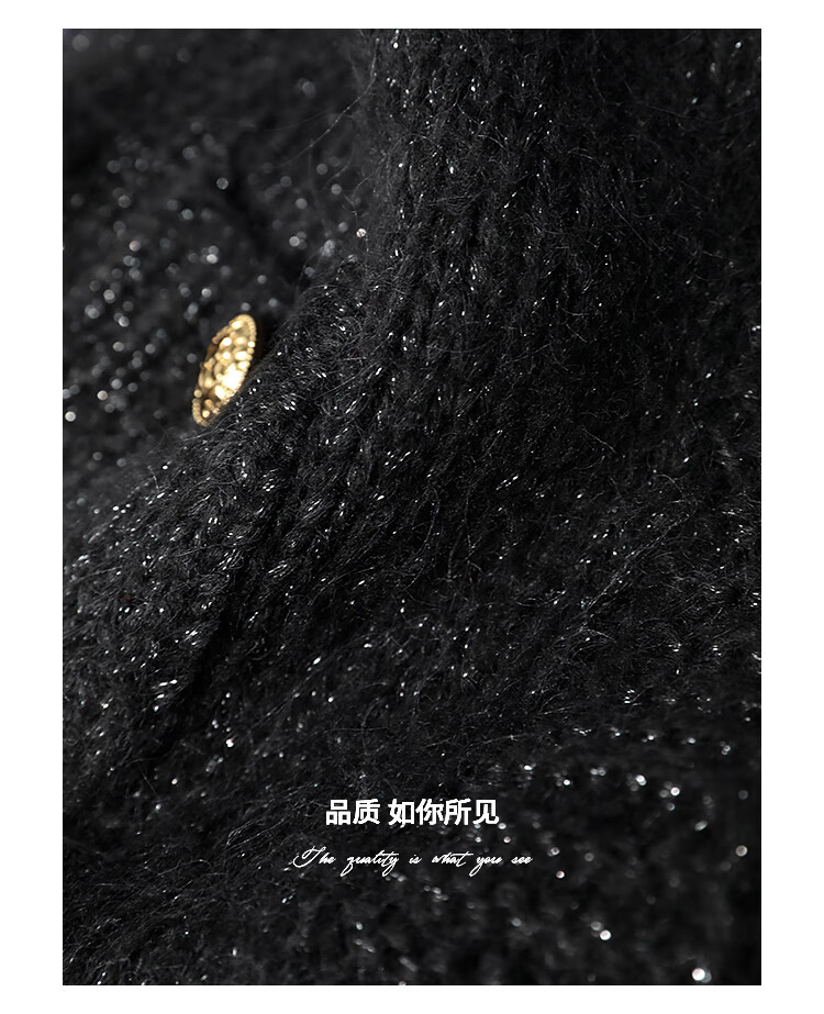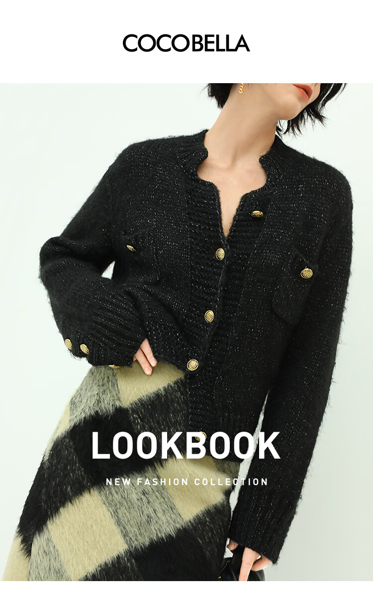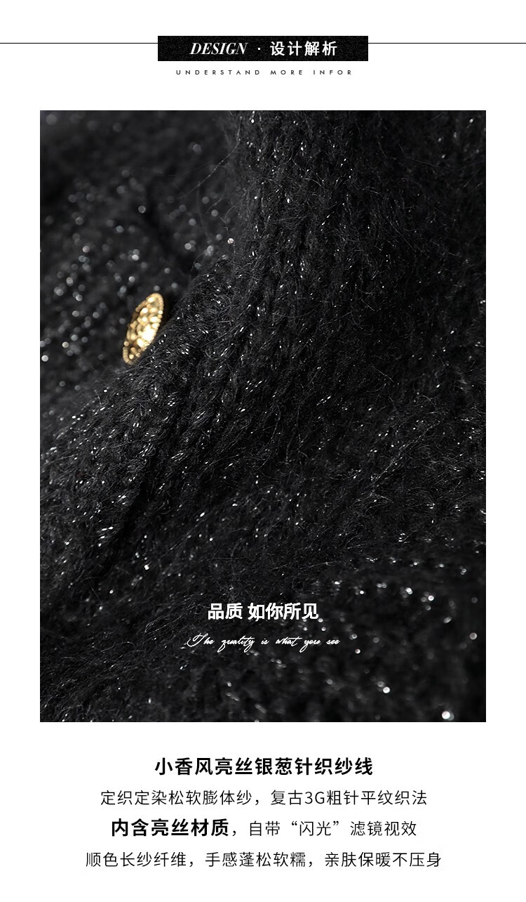 COCOBELLA小香风亮丝花纱毛衣女金属扣千金风针织外套MZ148
