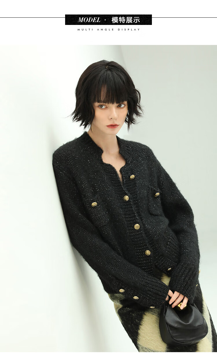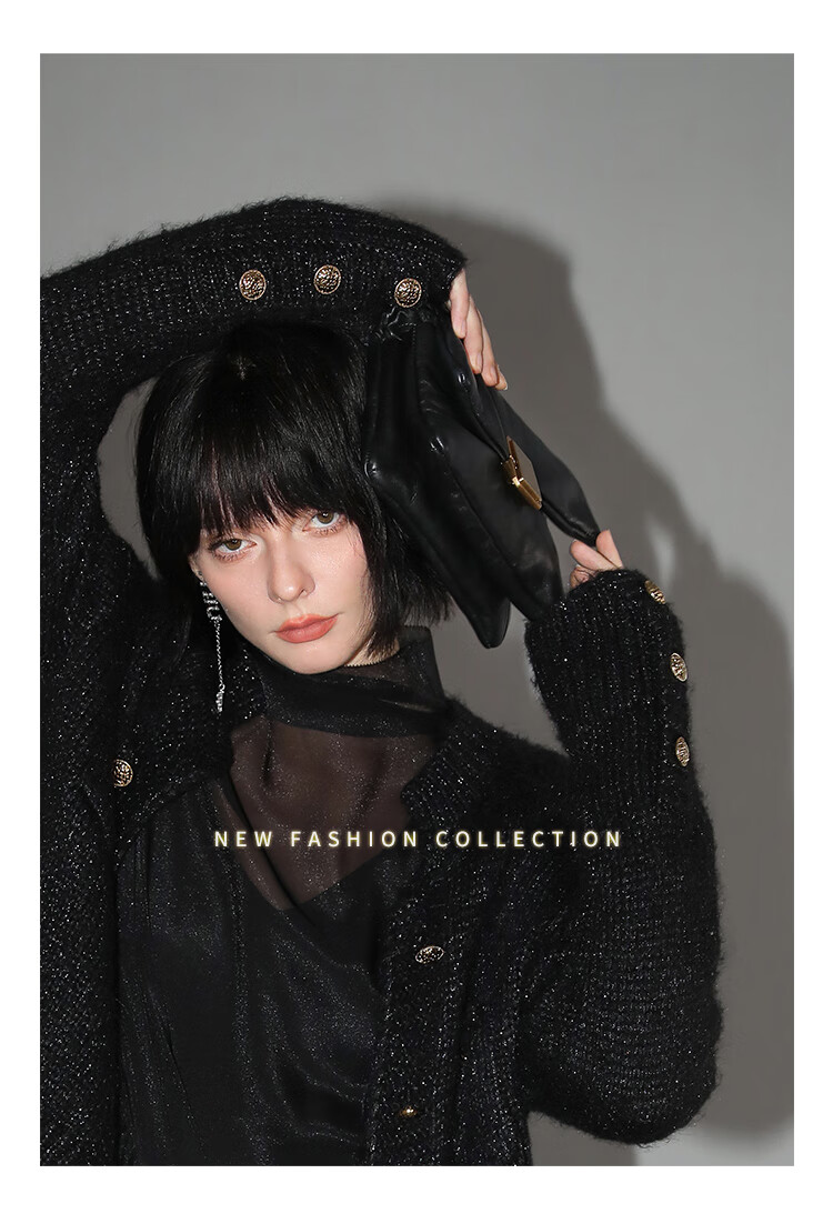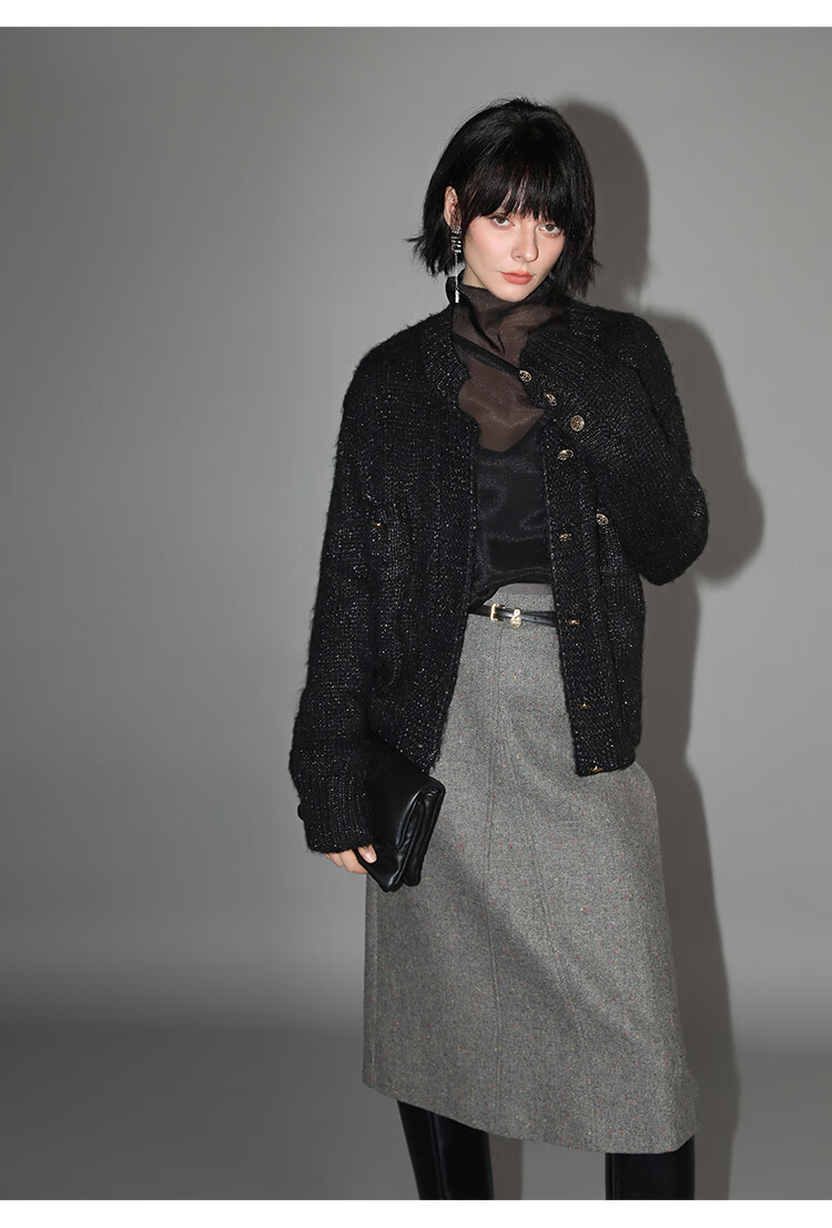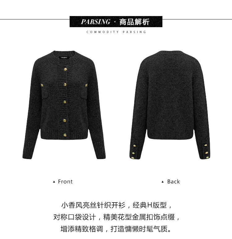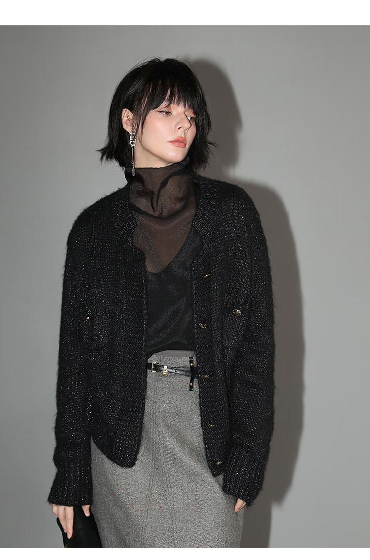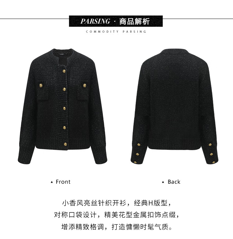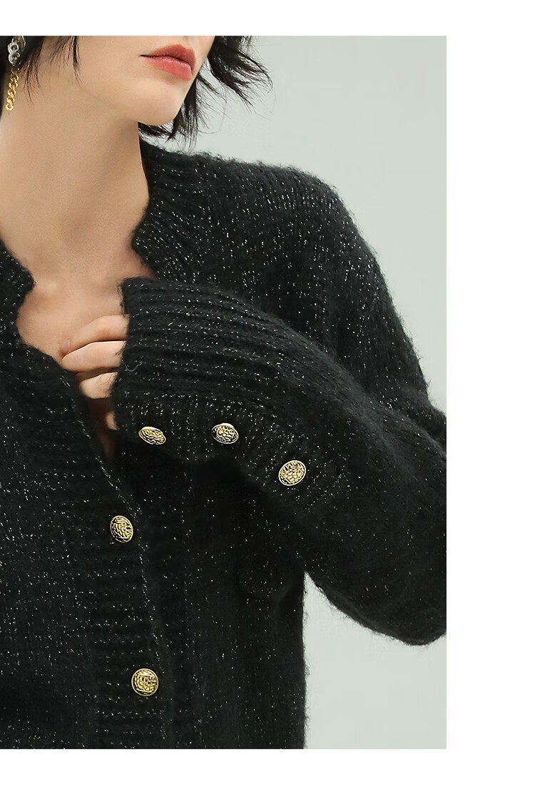 COCOBELLA小香风亮丝花纱毛衣女金属扣千金风针织外套MZ148